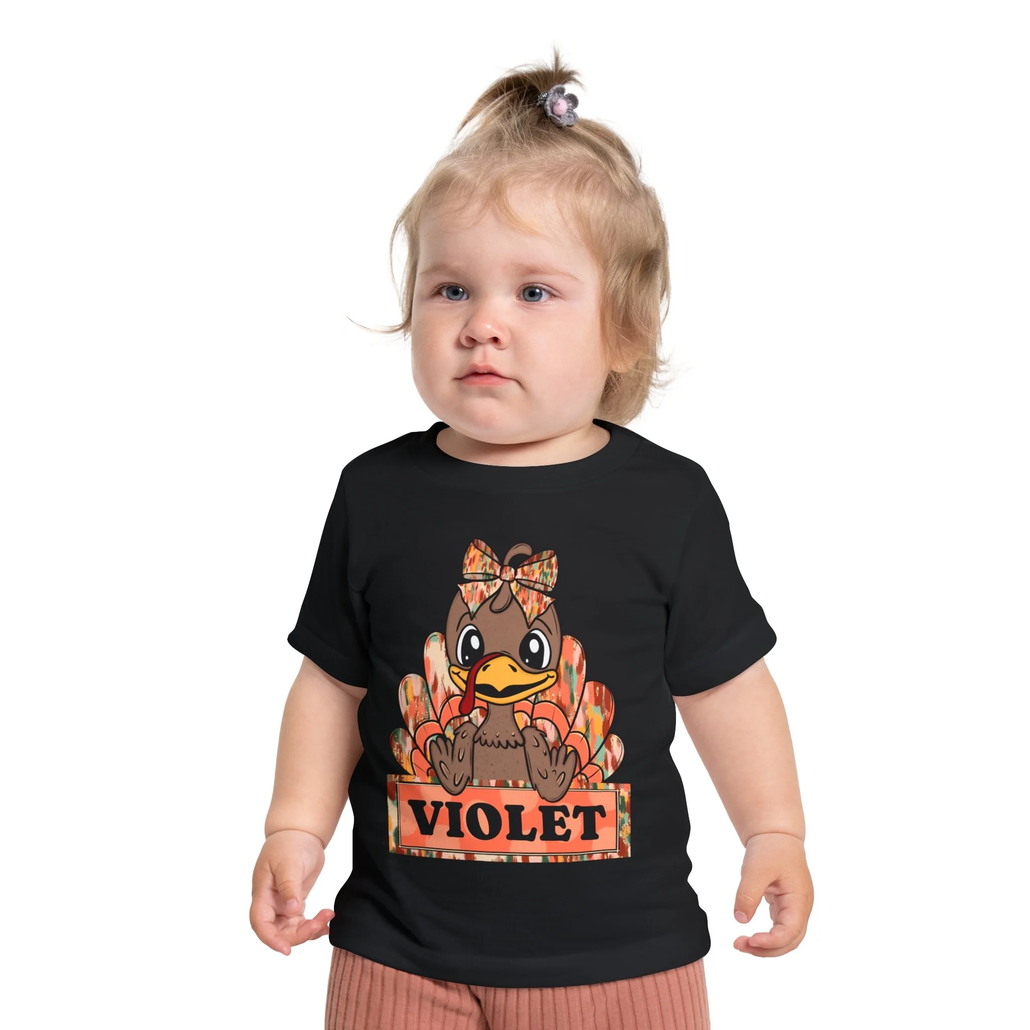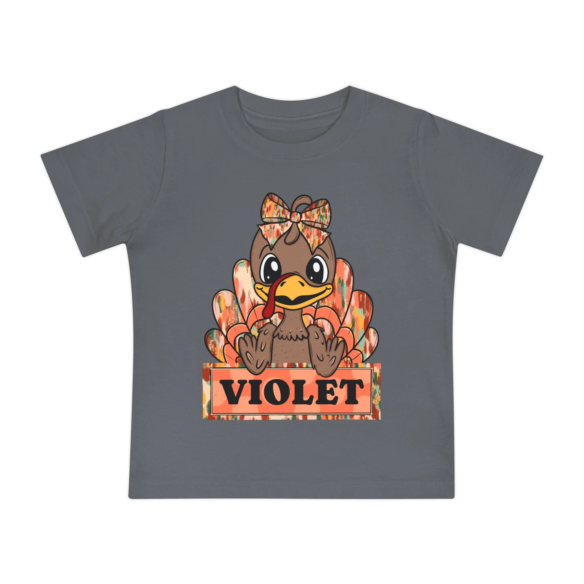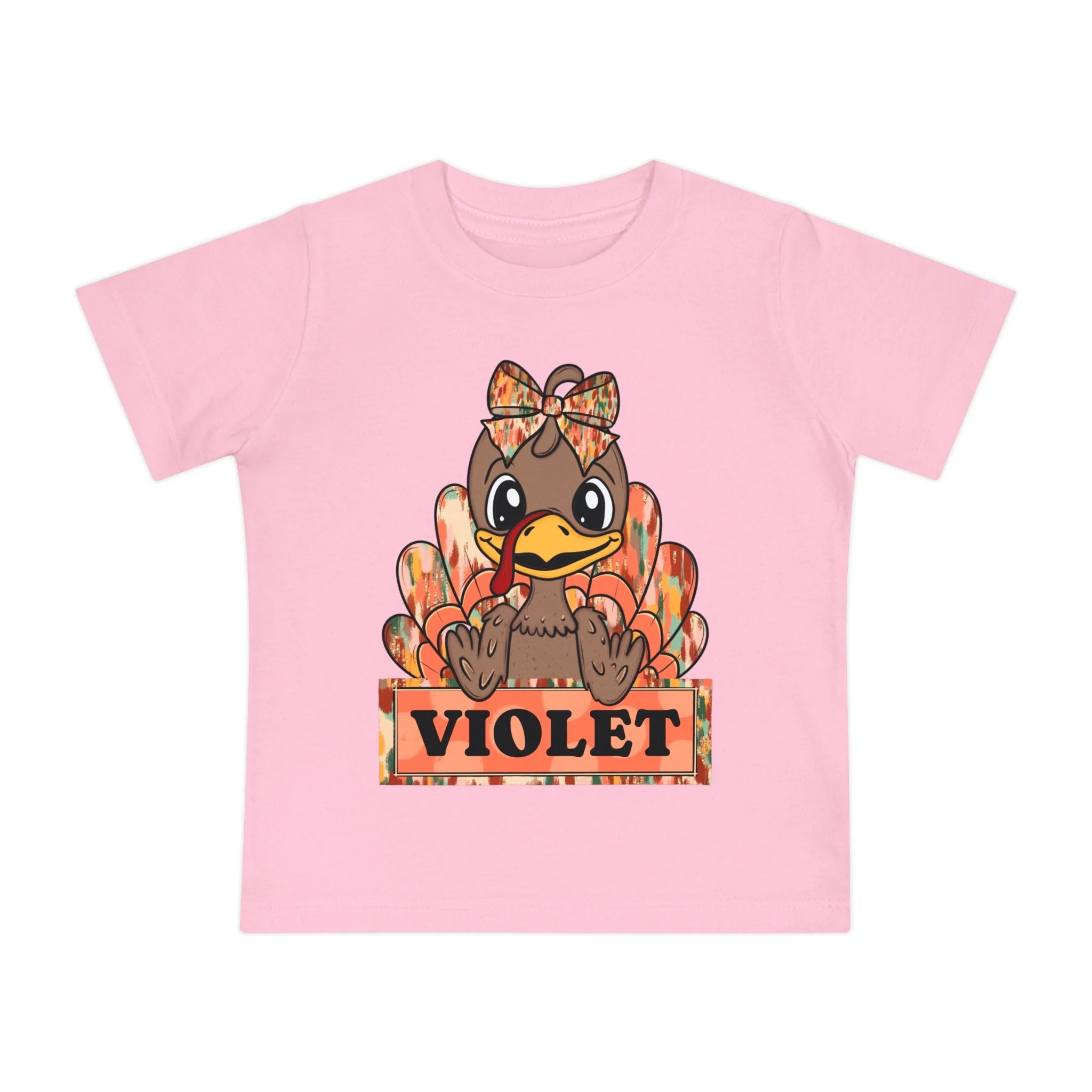 This adorable Baby Short Sleeve T-Shirt is the perfect addition to any little one's wardrobe. Featuring a charming design with a playful turkey motif, this shirt radiates warmth and cheer, ideal for celebrating the fall season or Thanksgiving. Made from light, breathable fabric, it ensures your child stays comfortable throughout the day. Ideal for family gatherings, holiday festivities, or casual playdates, this shirt is a delightful way to embrace the spirit of the season. Perfect for kids who enjoy fun and whimsical apparel, this t-shirt makes a thoughtful gift for birthdays, holidays, or special occasions, creating lasting memories for parents and children alike.