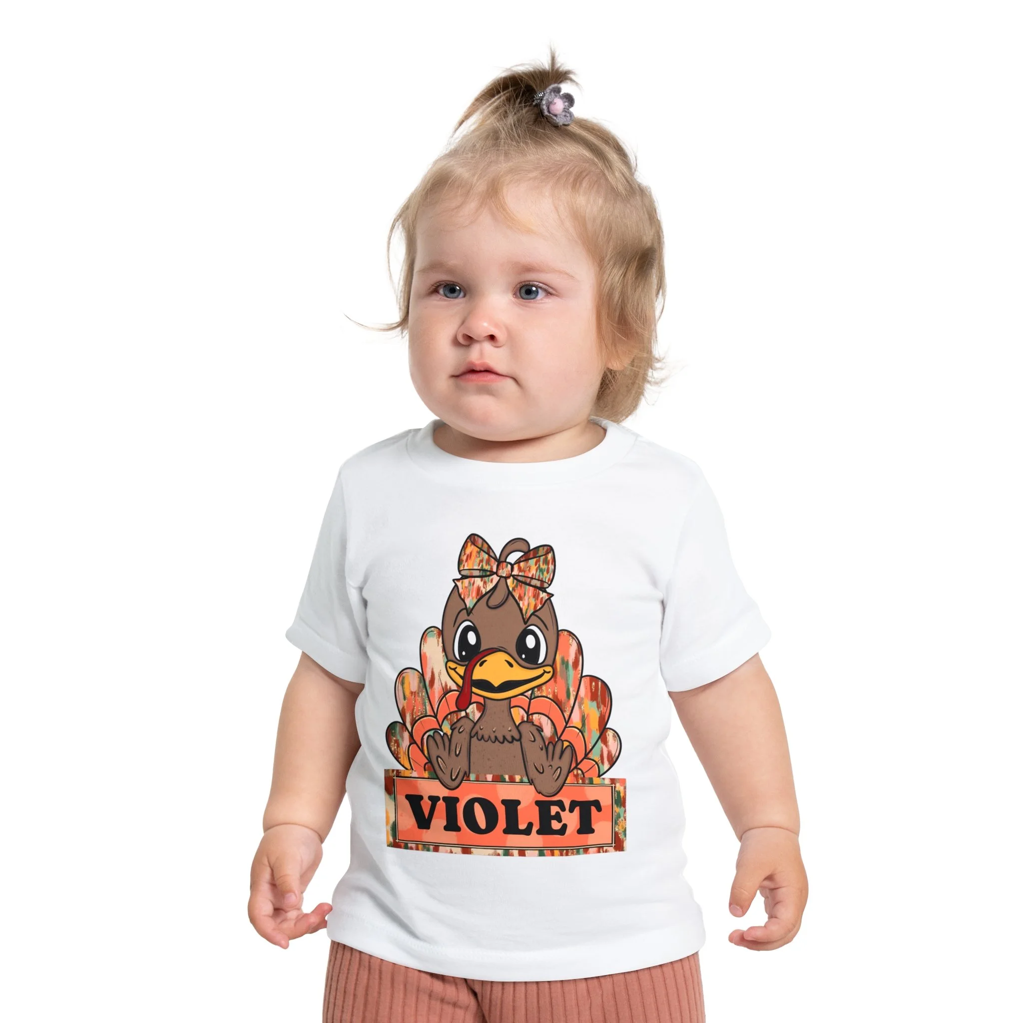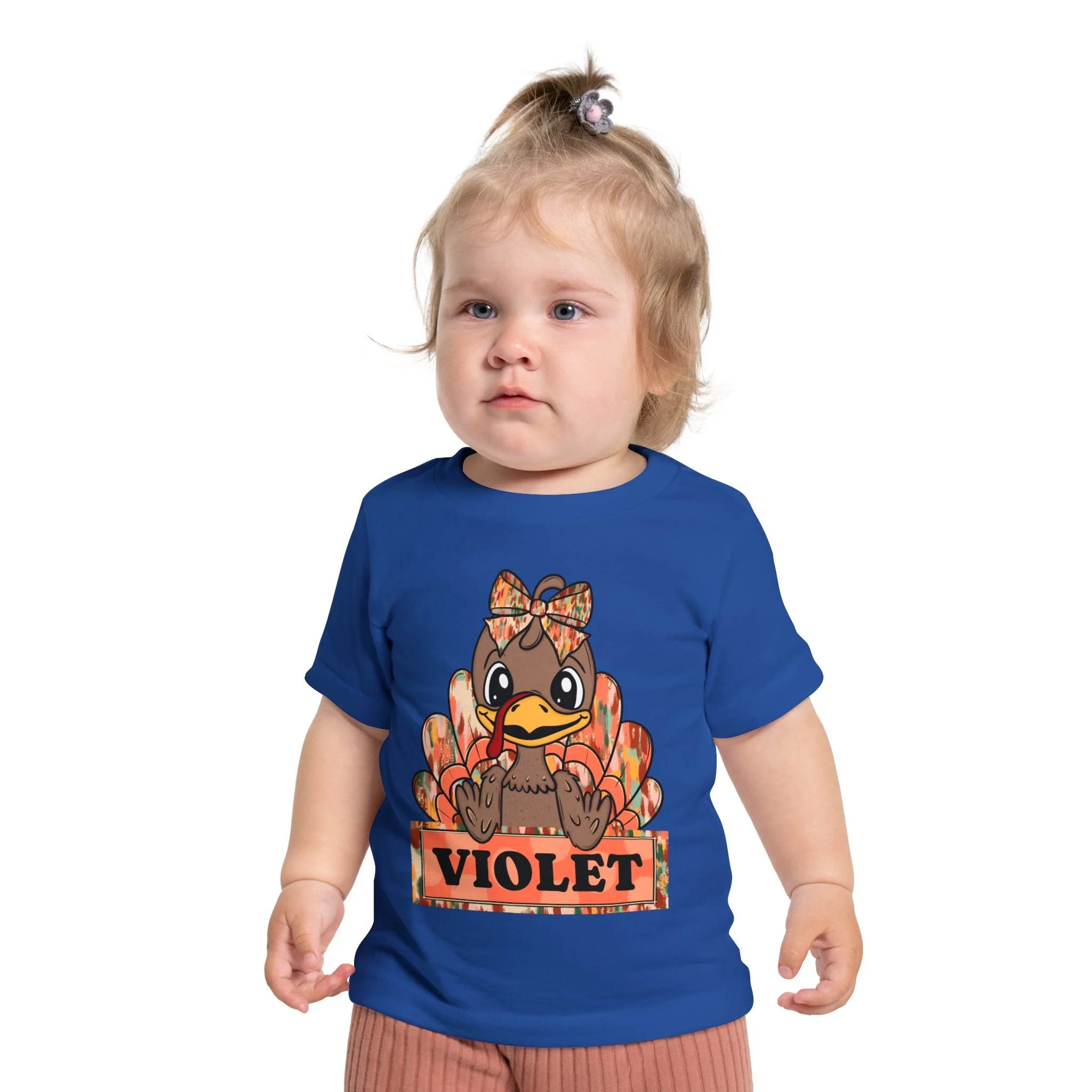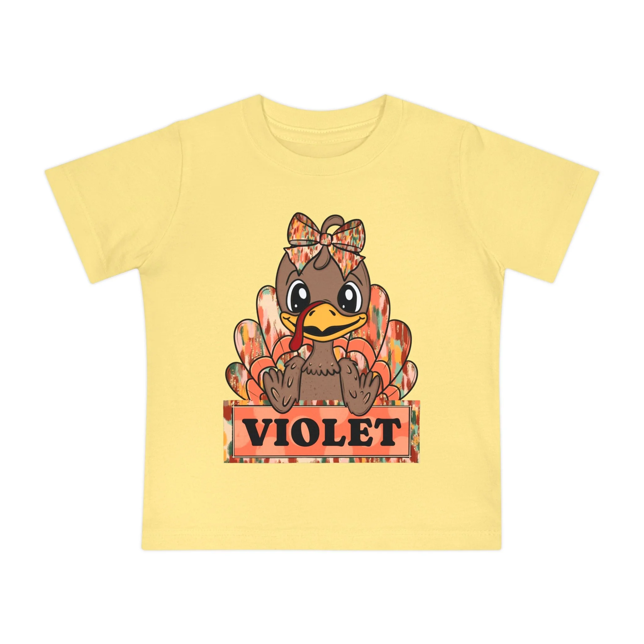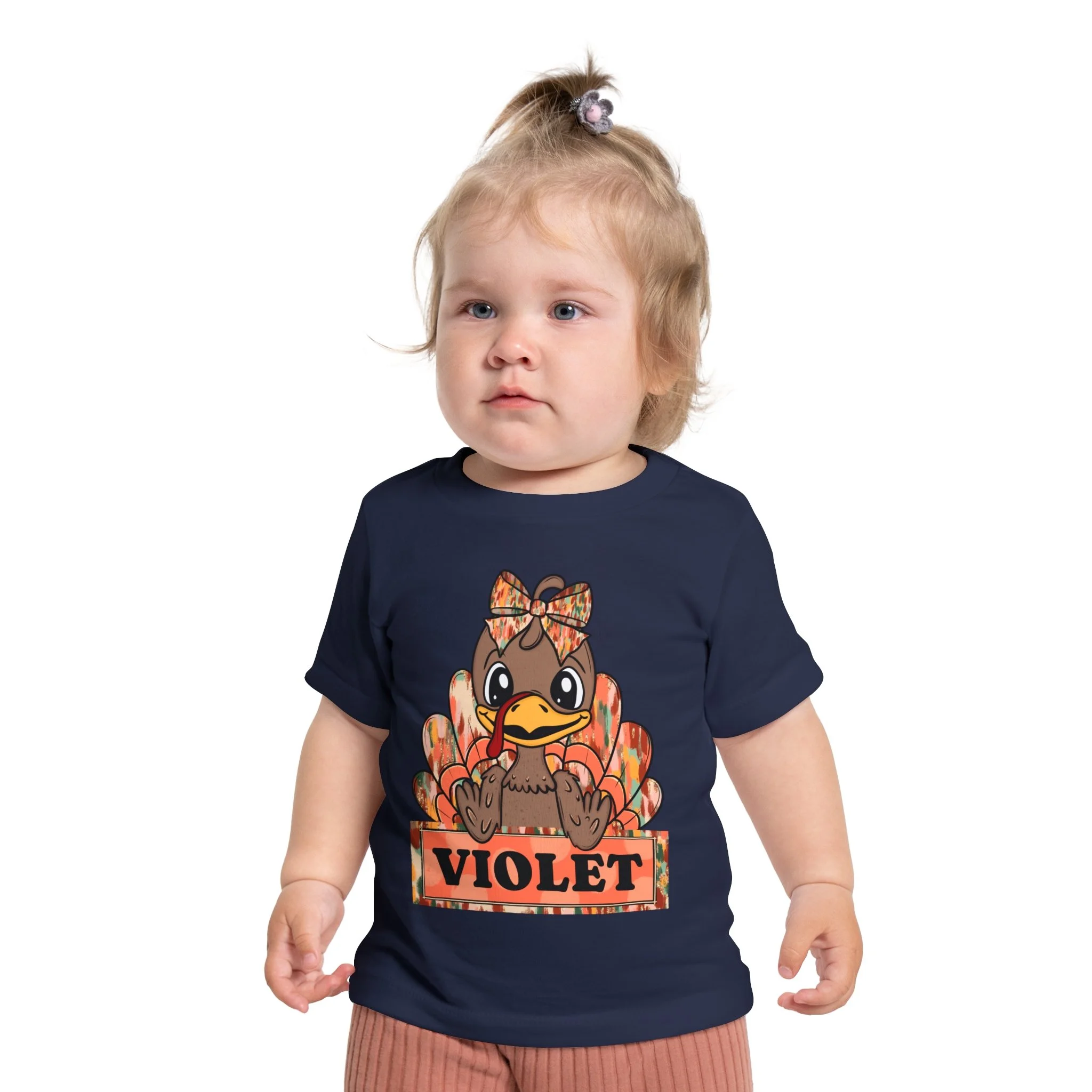 This adorable Baby Short Sleeve T-Shirt is the perfect addition to any little one's wardrobe. Featuring a charming design with a playful turkey motif, this shirt radiates warmth and cheer, ideal for celebrating the fall season or Thanksgiving. Made from light, breathable fabric, it ensures your child stays comfortable throughout the day. Ideal for family gatherings, holiday festivities, or casual playdates, this shirt is a delightful way to embrace the spirit of the season. Perfect for kids who enjoy fun and whimsical apparel, this t-shirt makes a thoughtful gift for birthdays, holidays, or special occasions, creating lasting memories for parents and children alike.