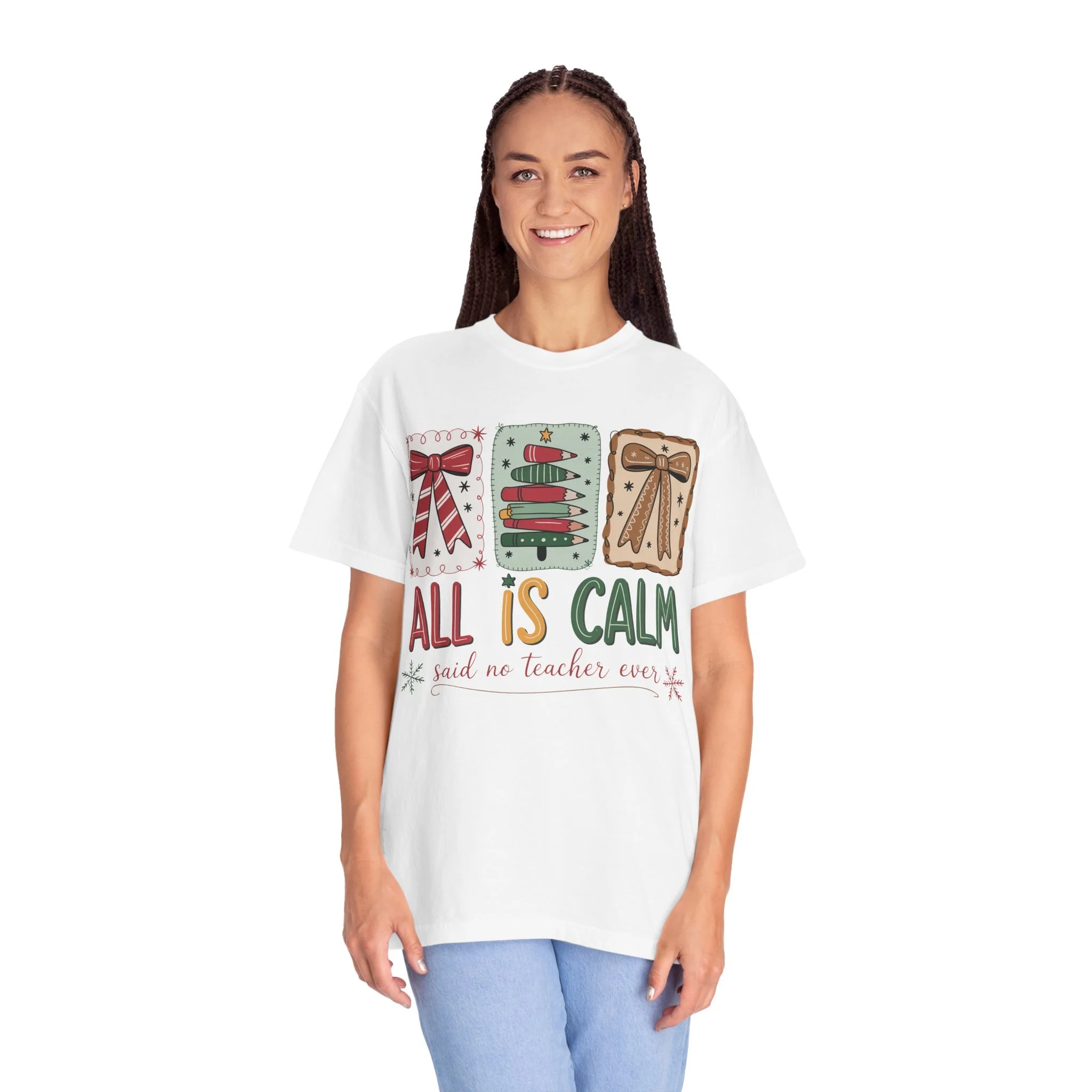 All Is Calm Said No Teacher Ever Christmas T-Shirt | Holiday Tees | Comfort Colors Tees