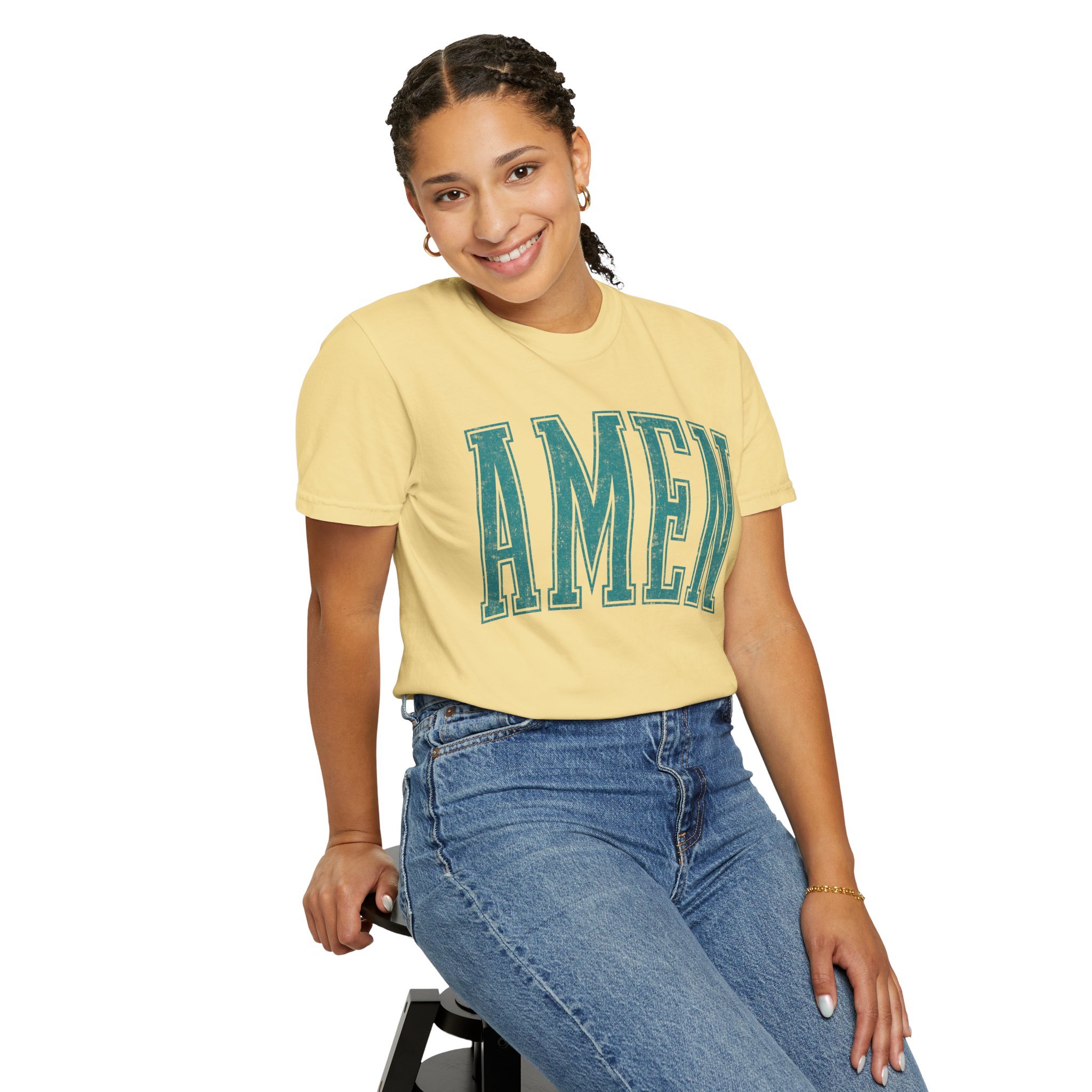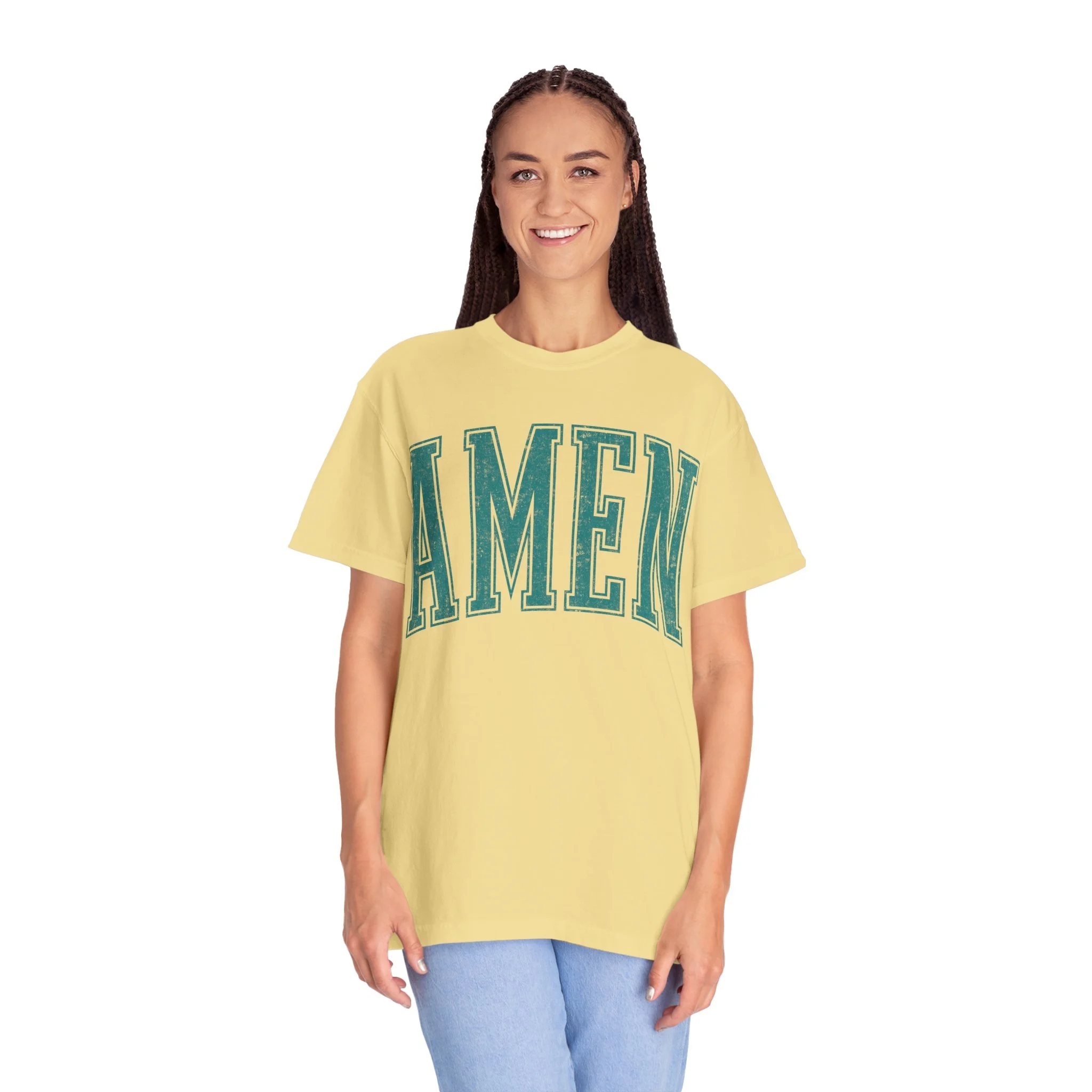 AMEN Graphic T-Shirt — Vintage Collegiate Faith Tee