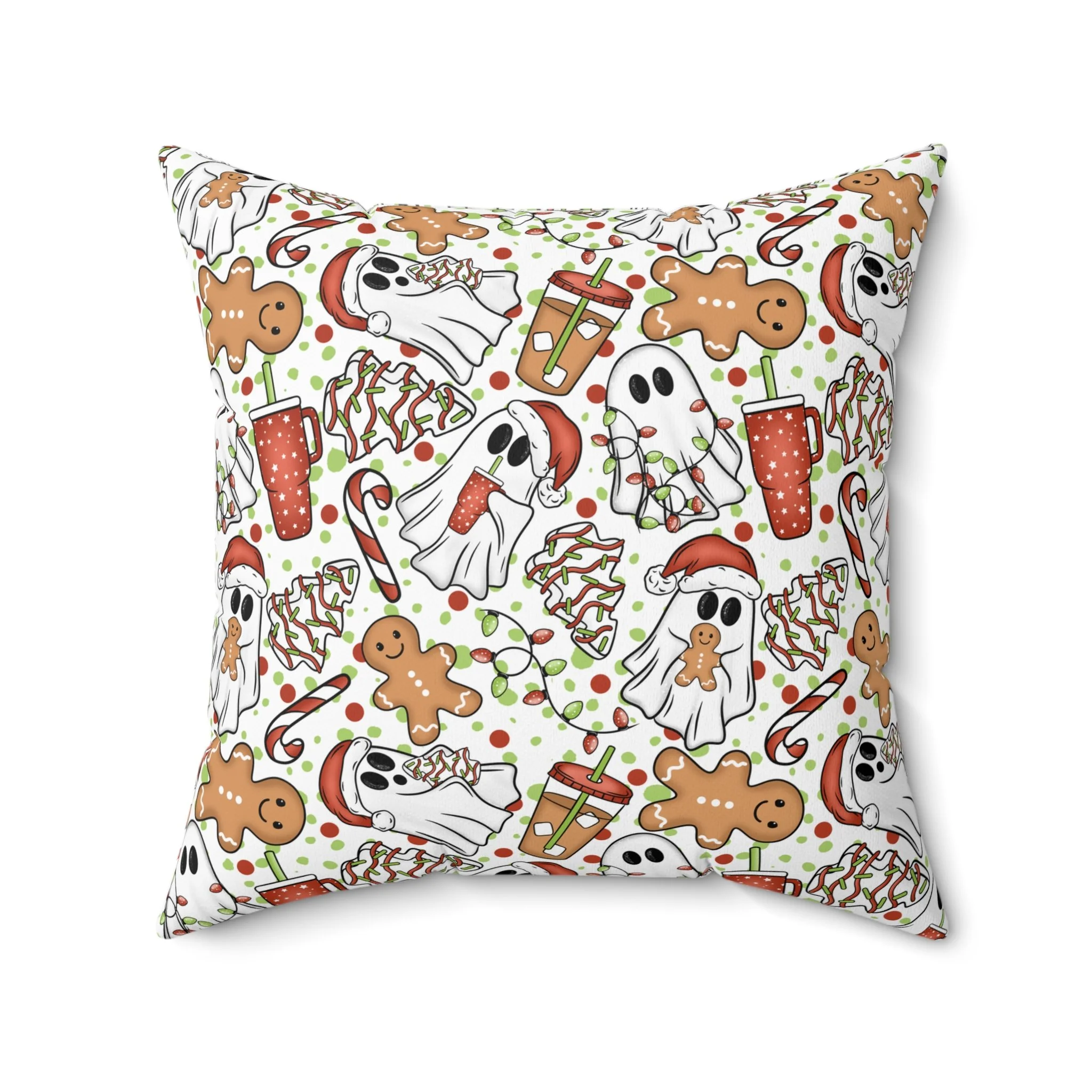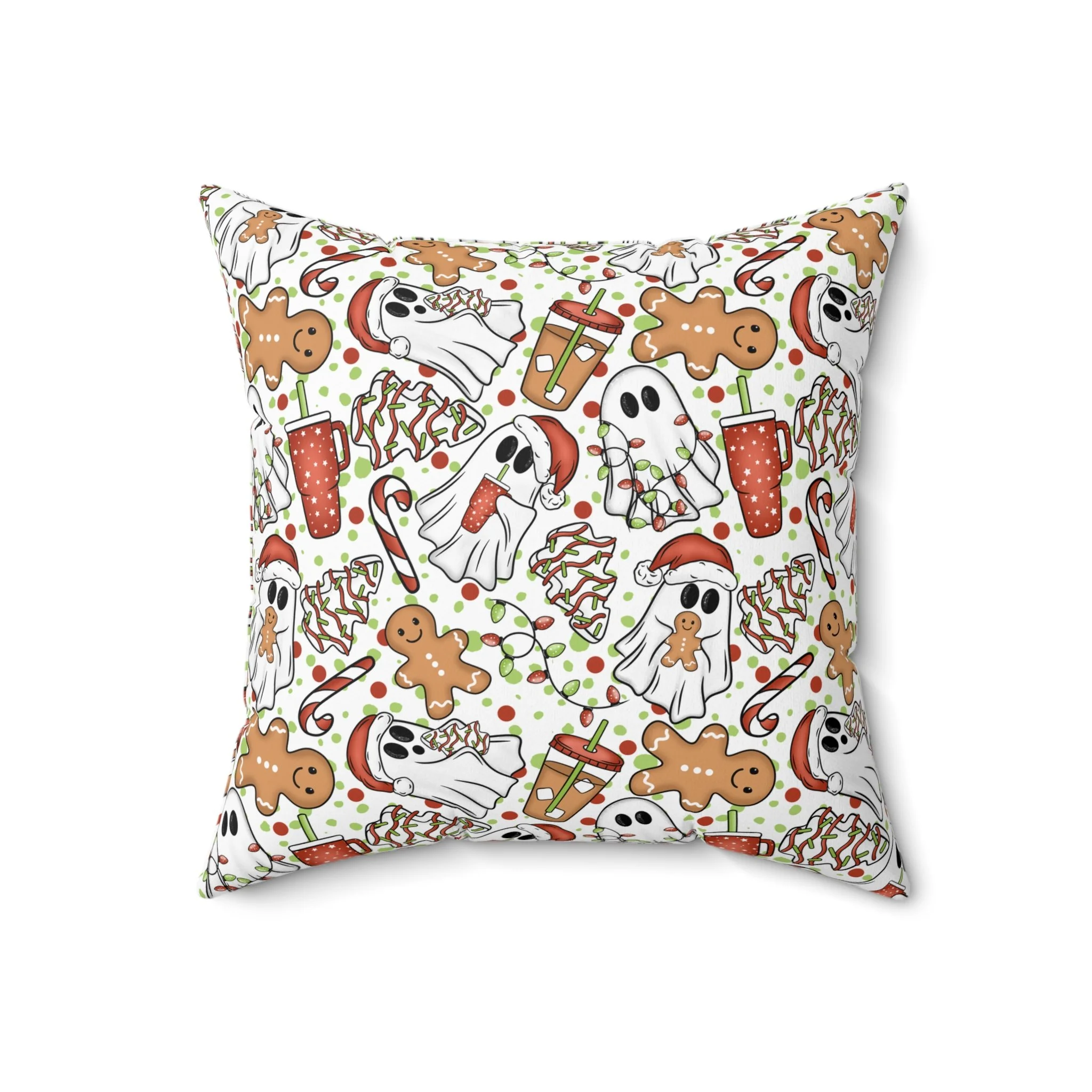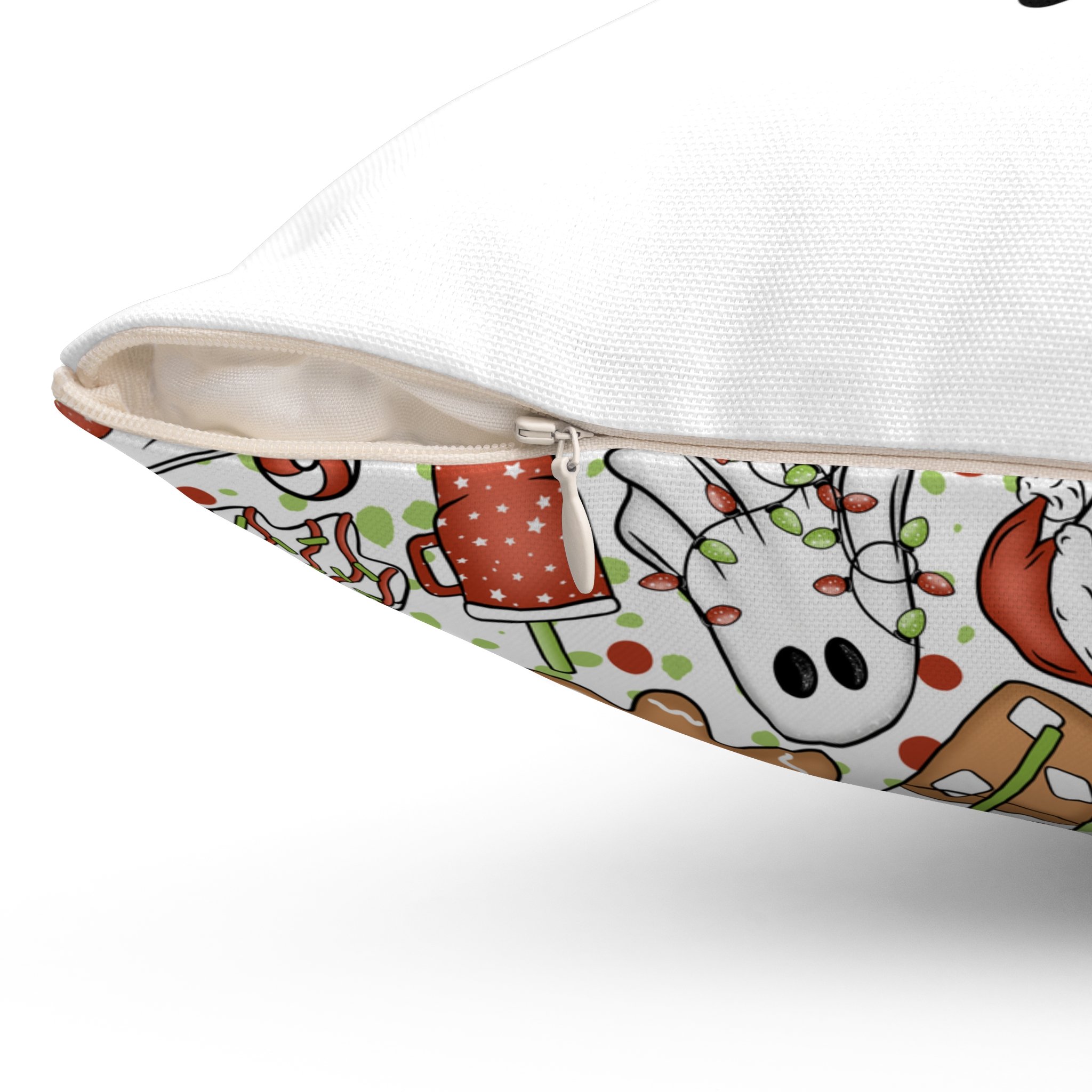 Add a delightful touch to your home decor with this festive square pillow. Featuring cheerful designs that blend holiday spirit with a playful atmosphere, this pillow is perfect for cozying up your couch or adding flair to your bed. Ideal for Halloween lovers and Christmas enthusiasts alike, it will bring joy during the festive season. It's a wonderful conversation starter for gatherings and a perfect gift for friends and family who appreciate unique holiday decorations. Celebrate Halloween and Christmas in style with this charming accent piece!