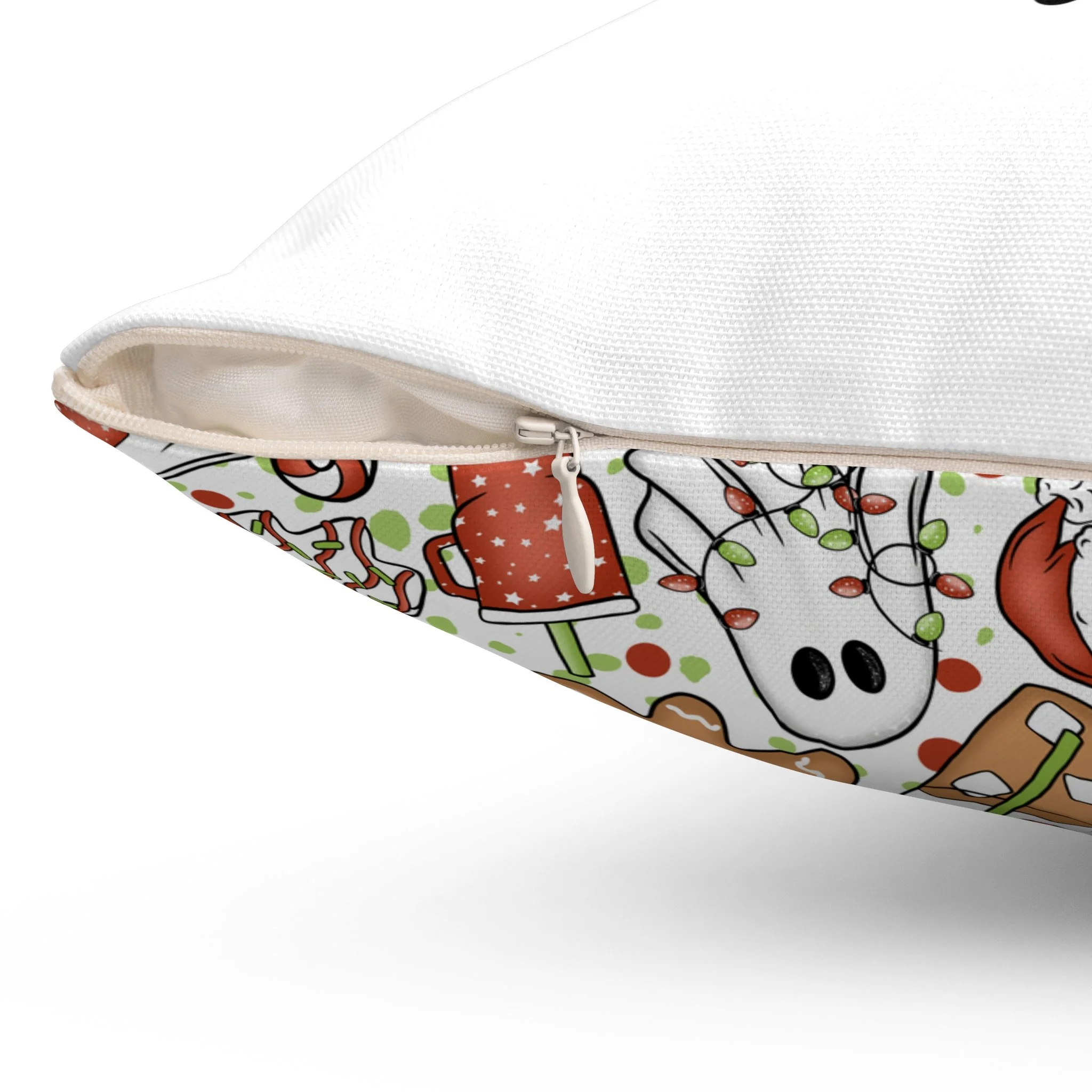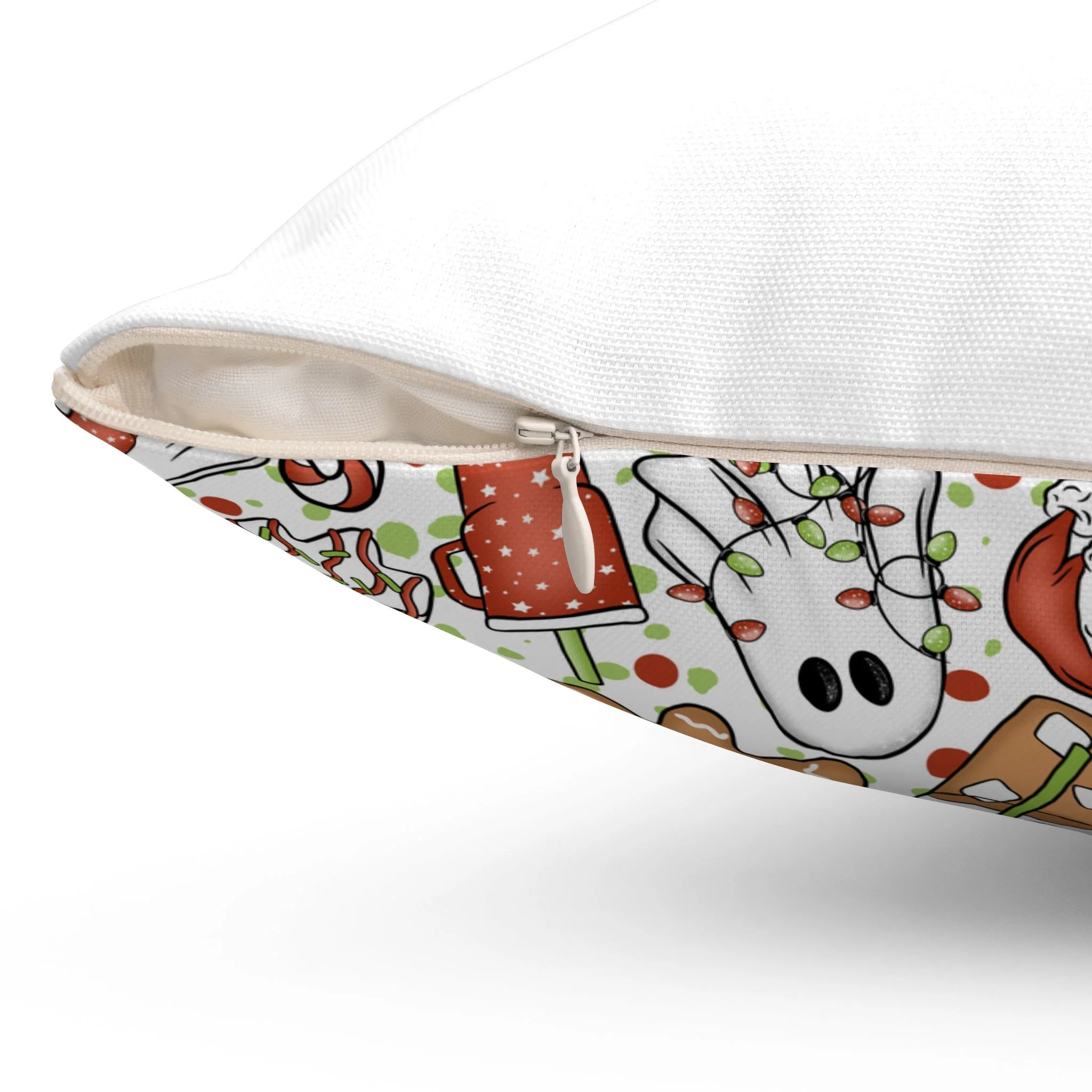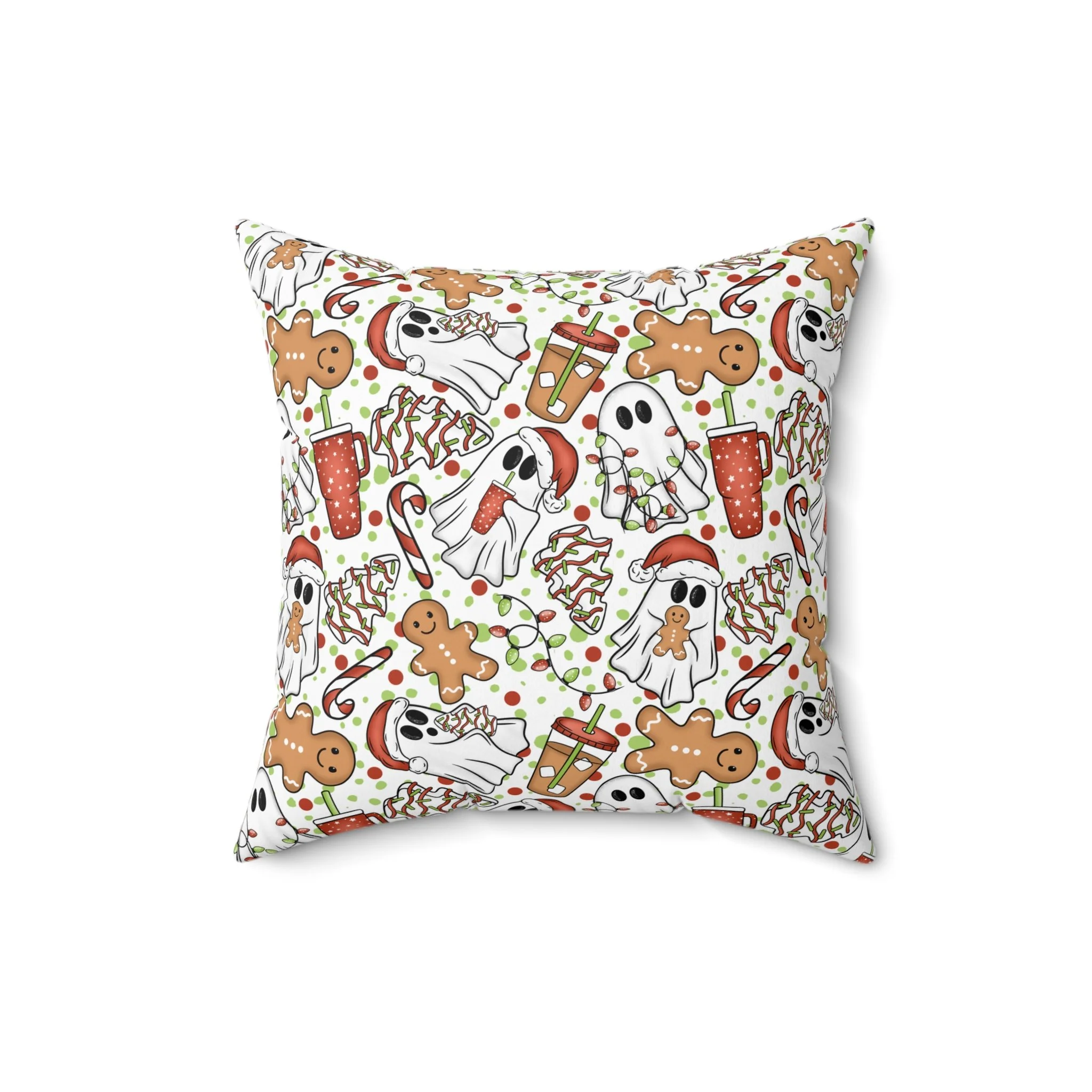 Add a delightful touch to your home decor with this festive square pillow. Featuring cheerful designs that blend holiday spirit with a playful atmosphere, this pillow is perfect for cozying up your couch or adding flair to your bed. Ideal for Halloween lovers and Christmas enthusiasts alike, it will bring joy during the festive season. It's a wonderful conversation starter for gatherings and a perfect gift for friends and family who appreciate unique holiday decorations. Celebrate Halloween and Christmas in style with this charming accent piece!