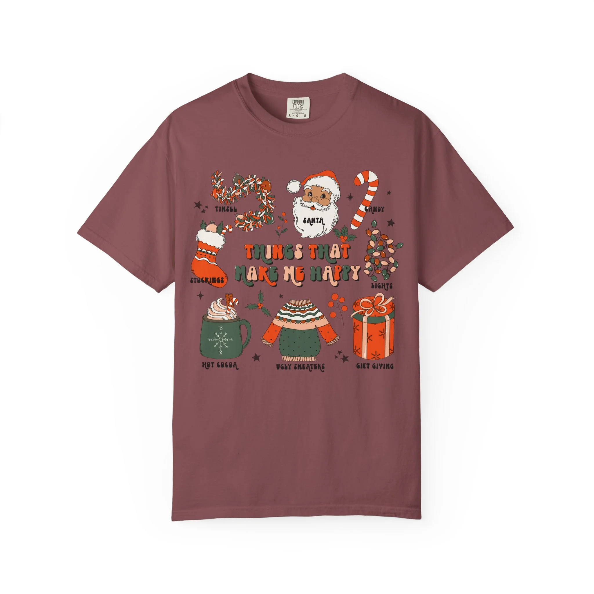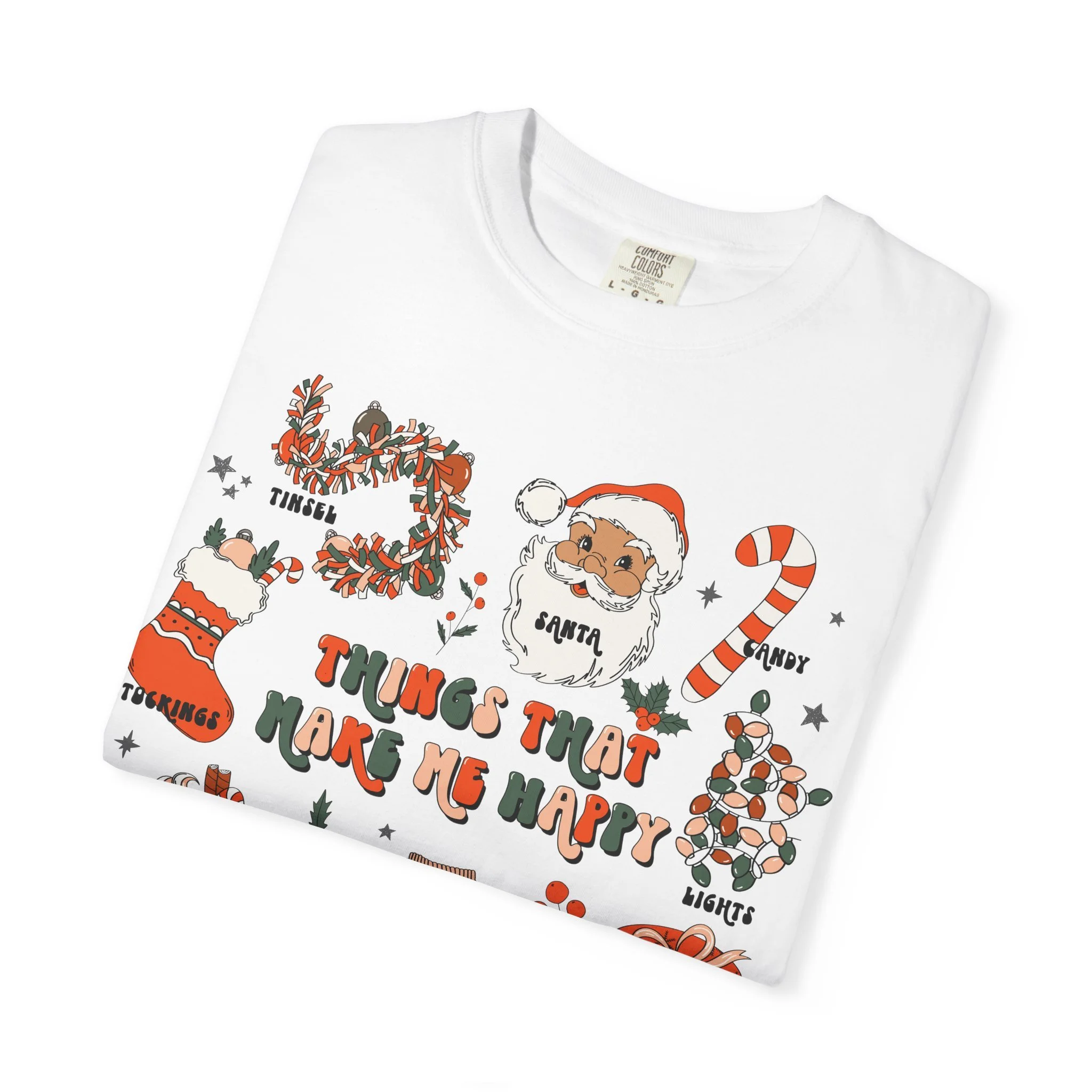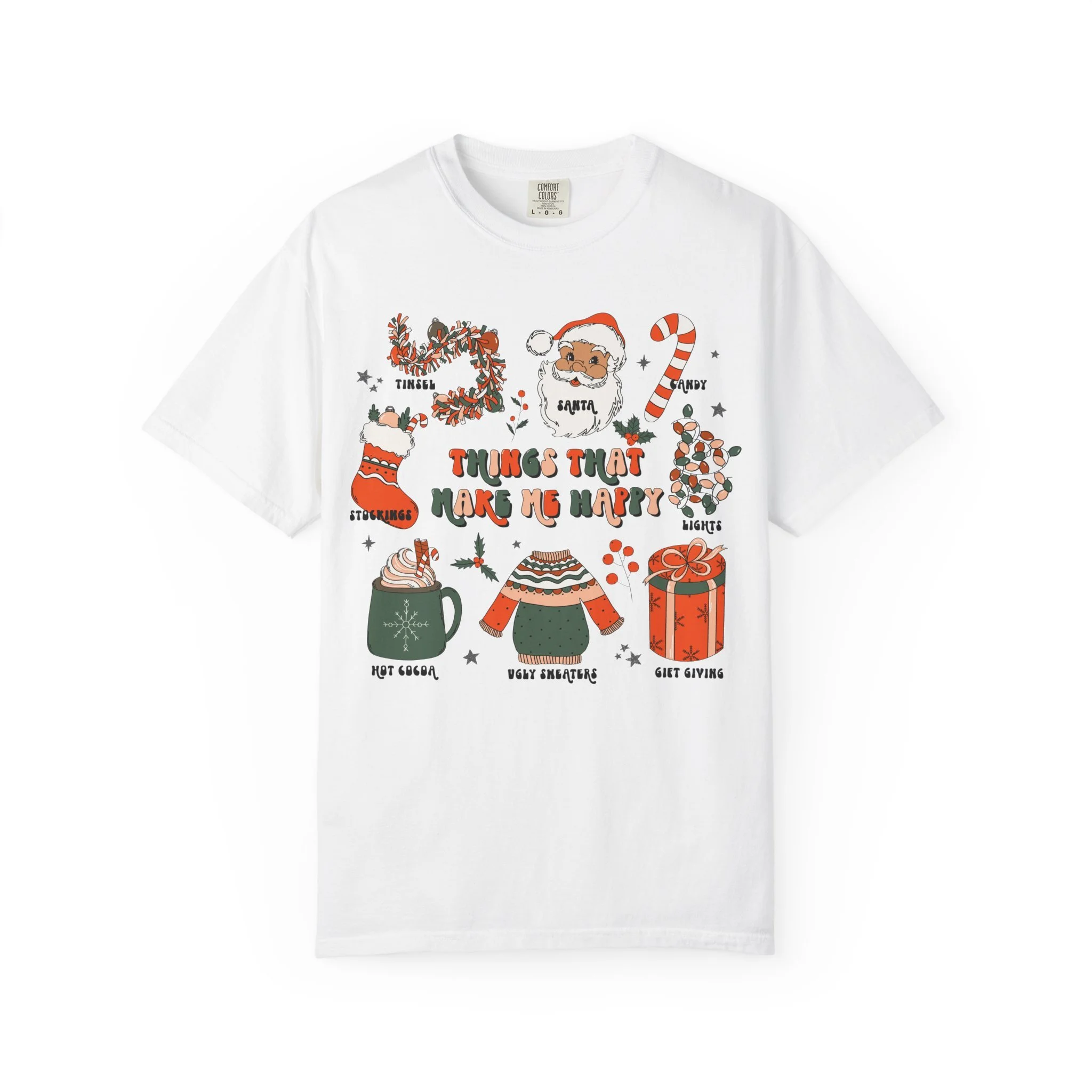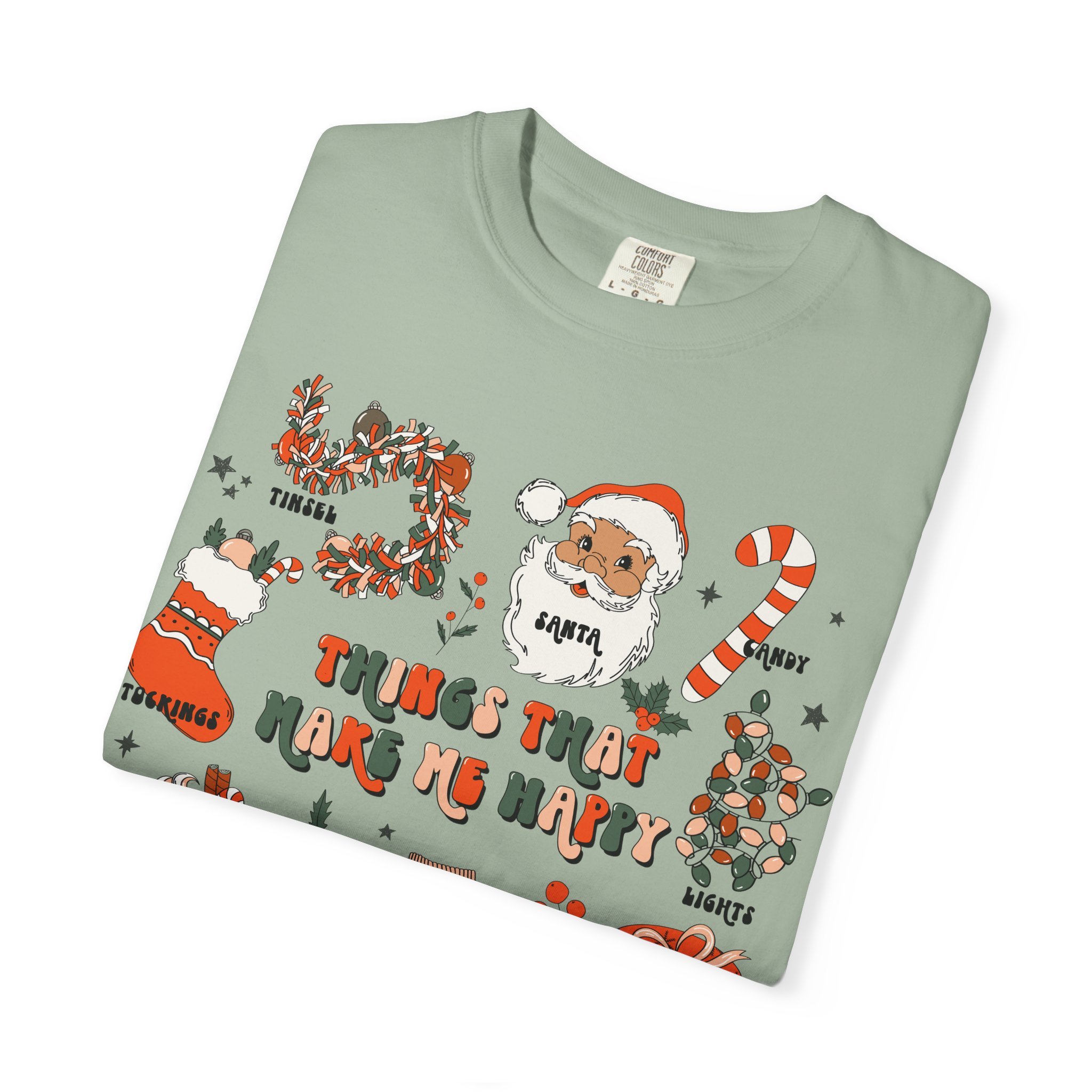 Christmas Cozy Icons T-Shirt | 'Things That Make Me Happy' Holiday Graphic Tee | Comfort Colors Tee