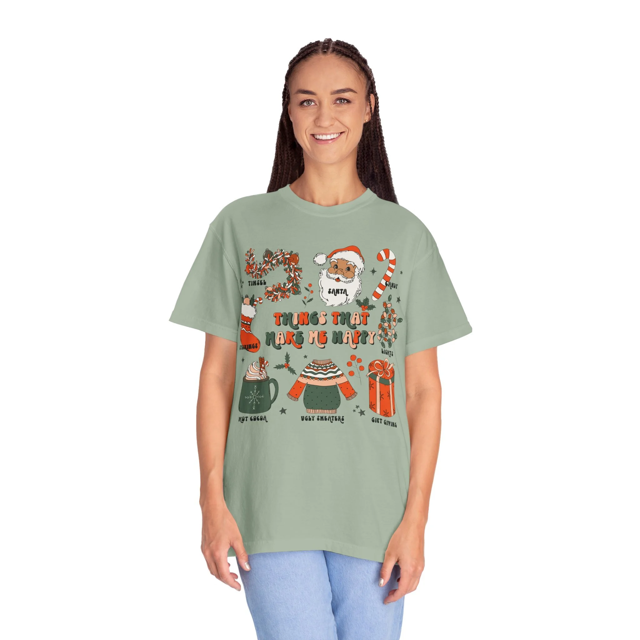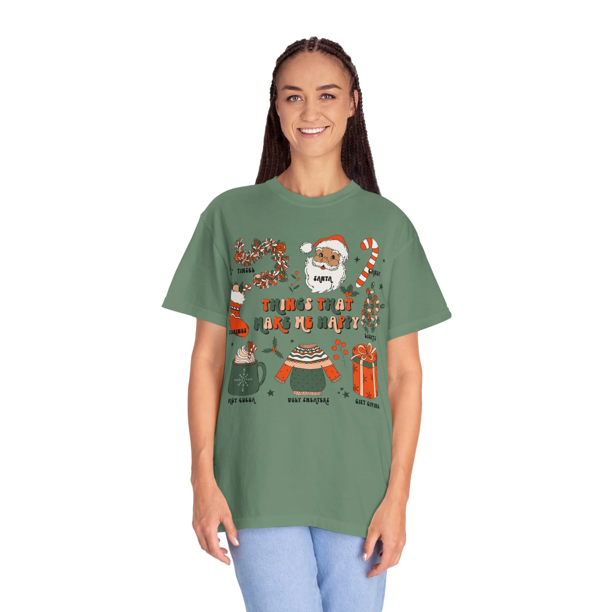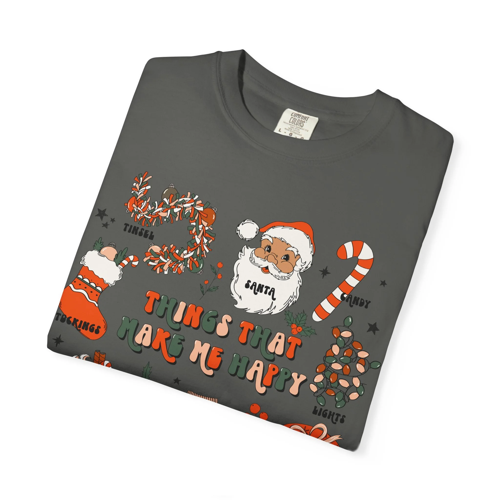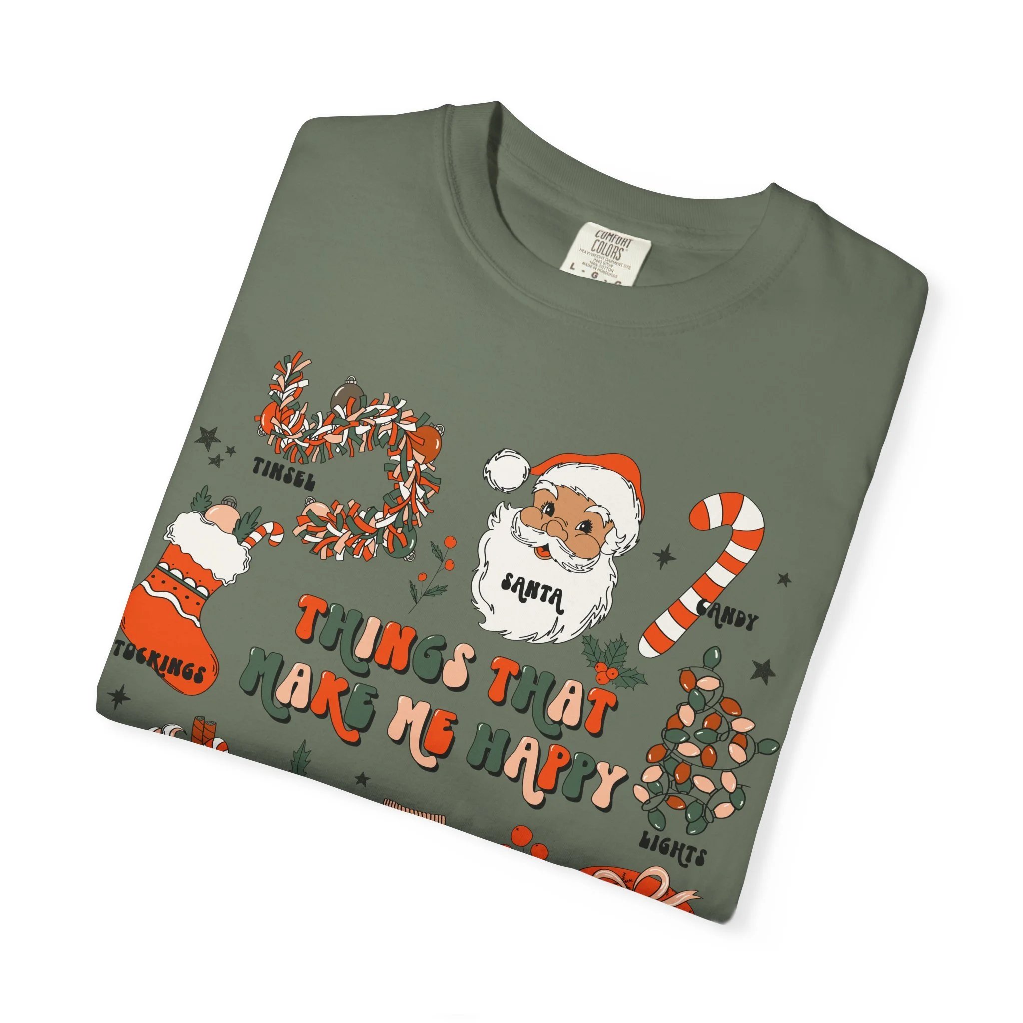 Christmas Cozy Icons T-Shirt | 'Things That Make Me Happy' Holiday Graphic Tee | Comfort Colors Tee