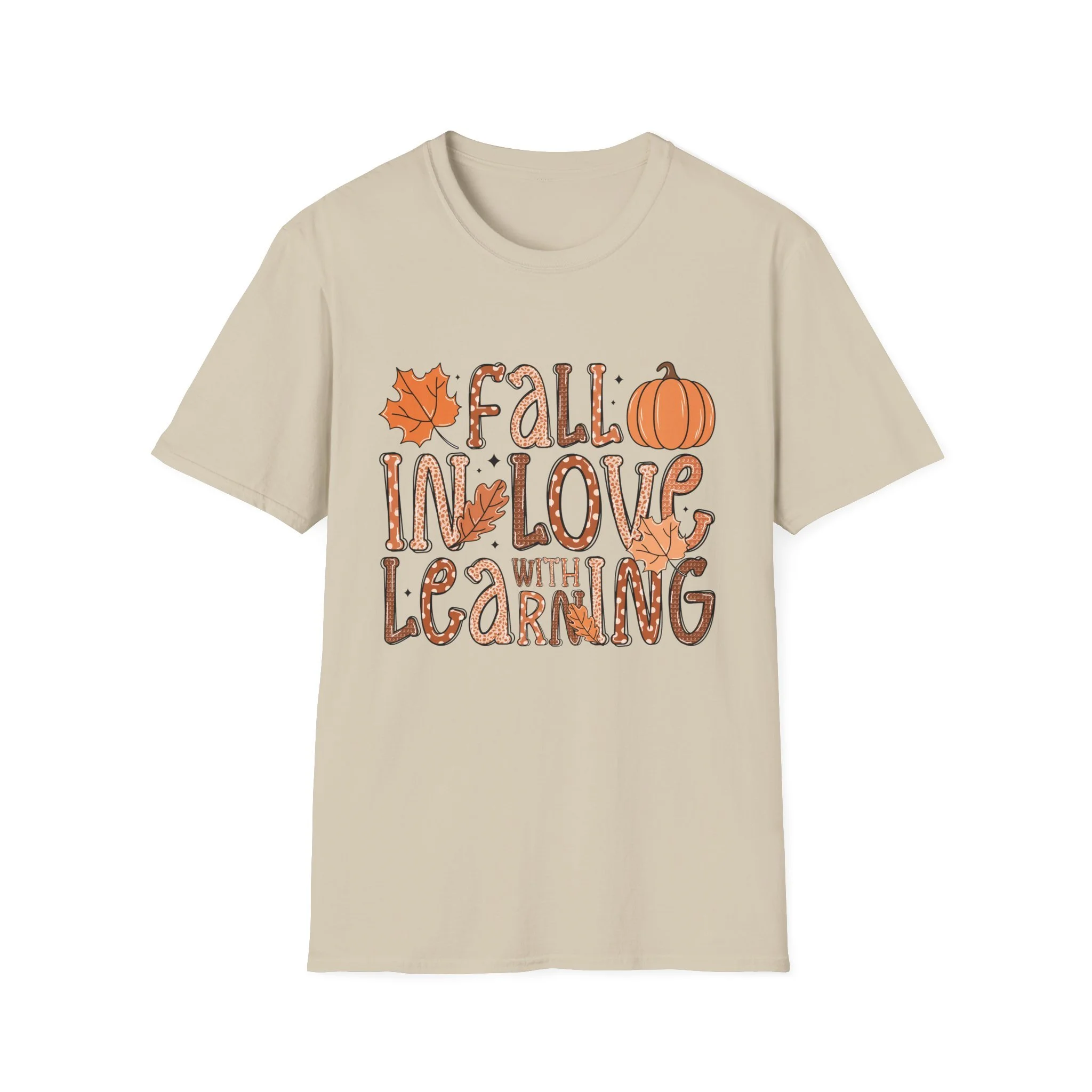 Elevate your wardrobe with this Unisex Softstyle T-Shirt, designed to bring a cozy and cheerful vibe to your everyday life. Perfect for autumn days, this shirt features a delightful 'Fall in Love with Learning' print that celebrates the joy of education and the changing seasons. Its classic fit and lightweight fabric make it an ideal choice for both casual outings and cozy evenings at home. This t-shirt is perfect for teachers, students, or anyone who loves to embrace the charm of fall. It's a wonderful addition for back-to-school season, autumn festivities, and cozy gatherings. Celebrate these special moments with style and comfort!
