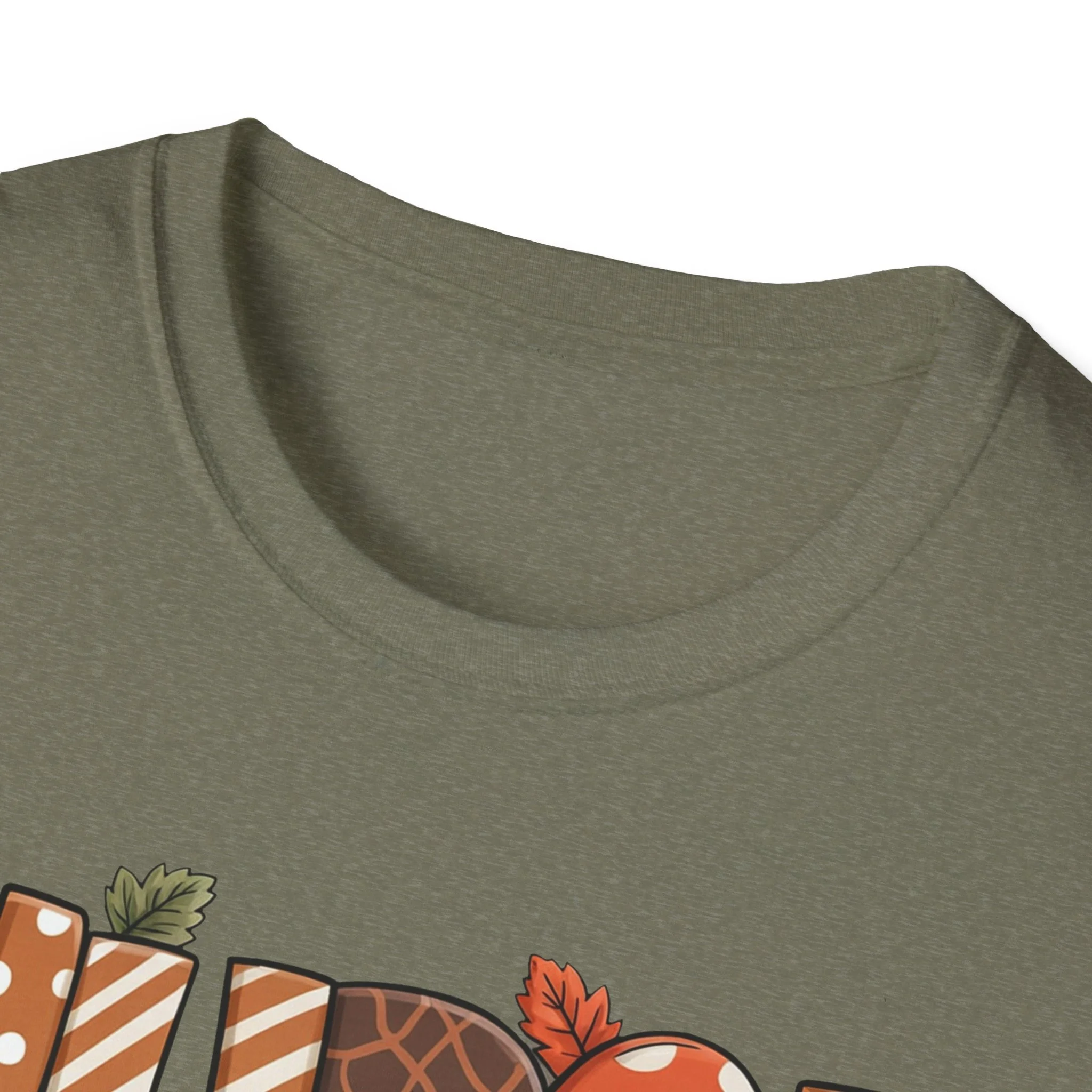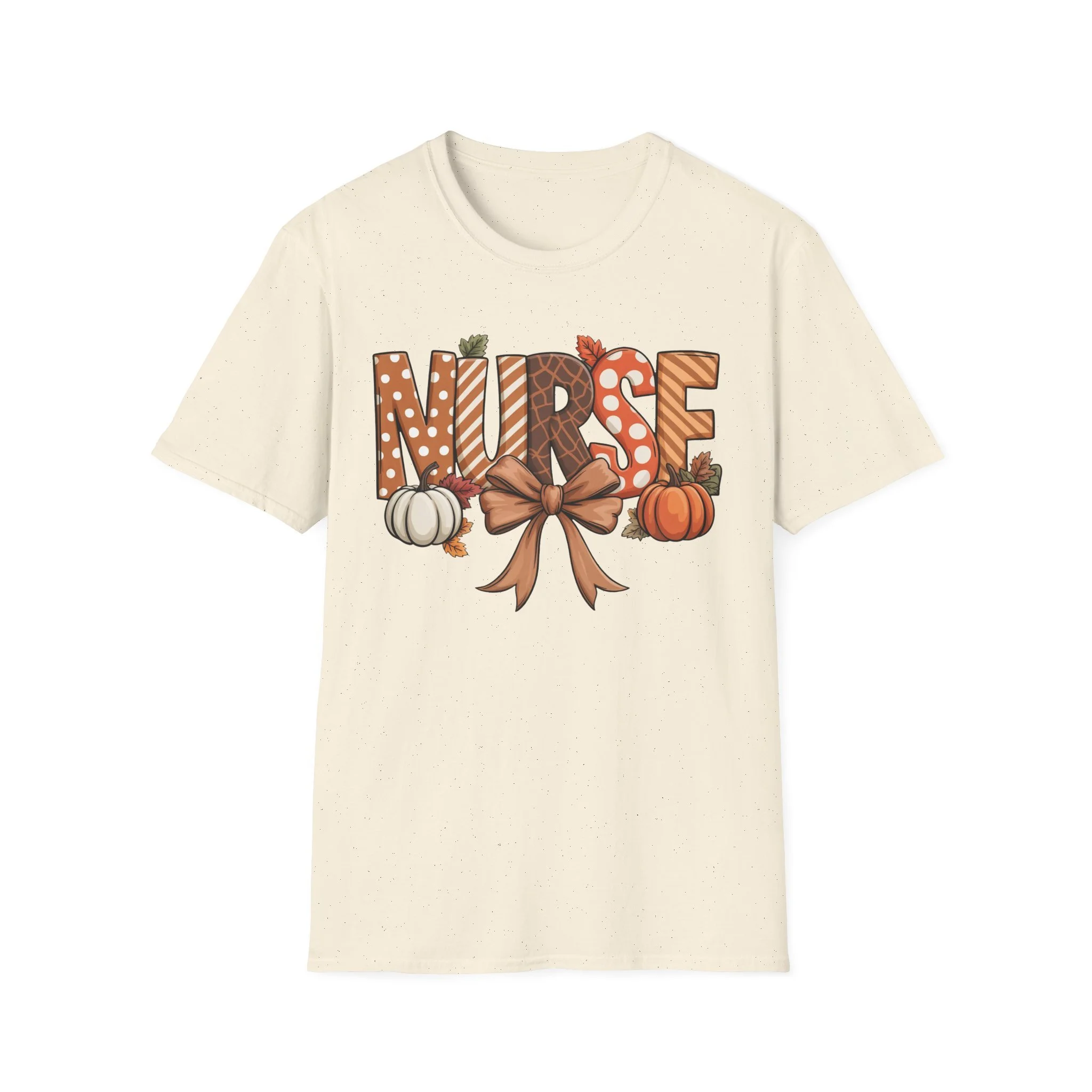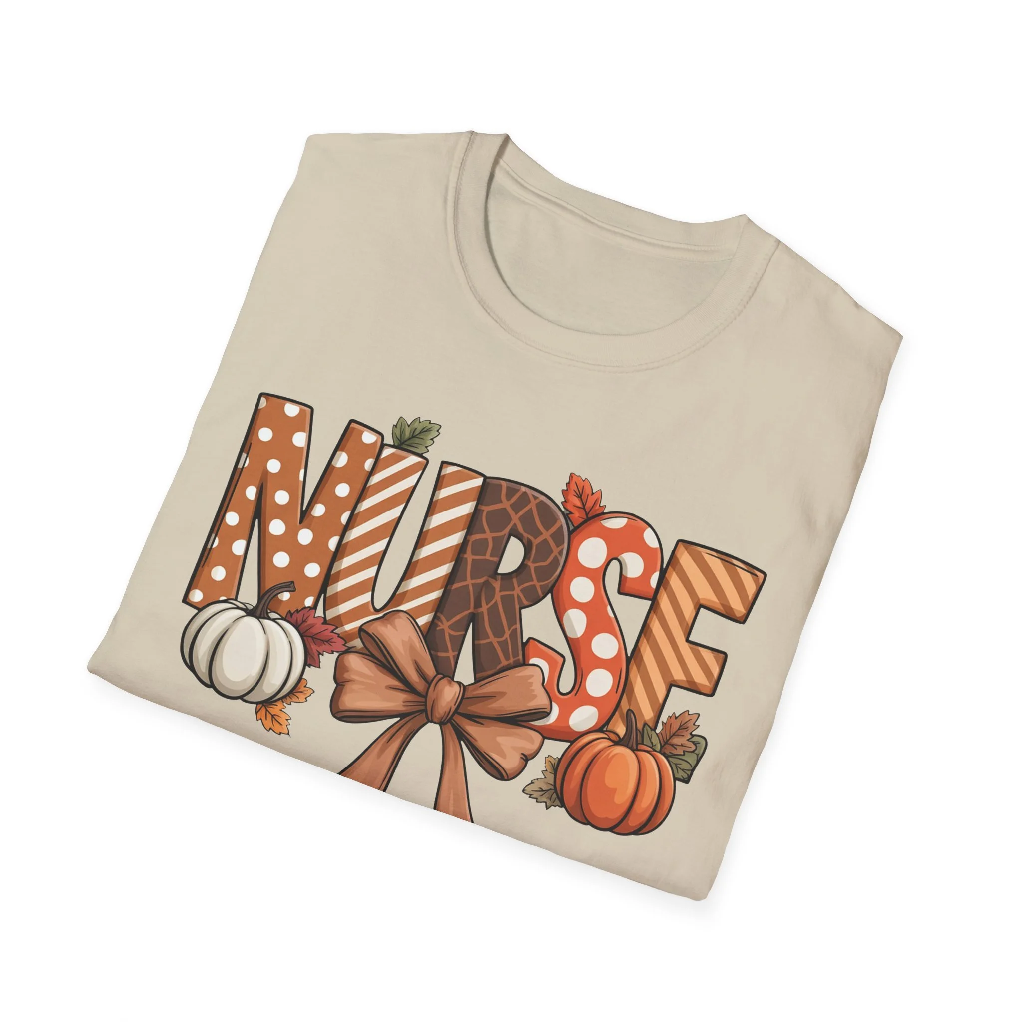Experience ultimate comfort and style with this Unisex Softstyle T-Shirt, perfect for any occasion. Made from 100% ring-spun cotton, it feels incredibly soft against your skin, making it an essential addition to your wardrobe. The unique design, featuring a charming autumnal theme with pumpkins and festive colors, radiates a cozy, inviting vibe that will brighten your day. Ideal for nurses, this tee is a thoughtful gift for those in the healthcare profession during holidays like Thanksgiving or Nurses’ Week. Its versatile fit allows for easy styling with jeans or skirts, making it suitable for casual outings, family gatherings, or cozy nights in.