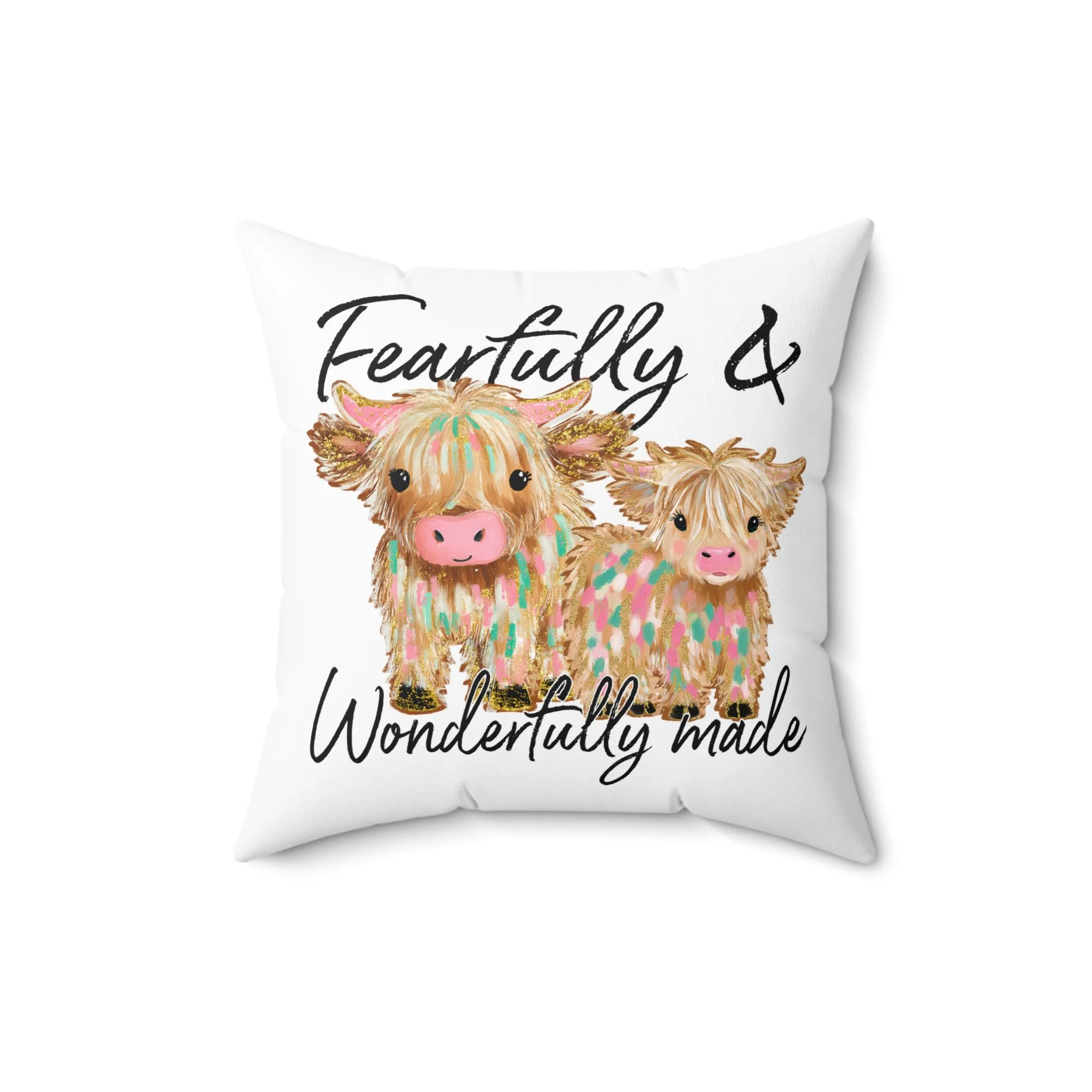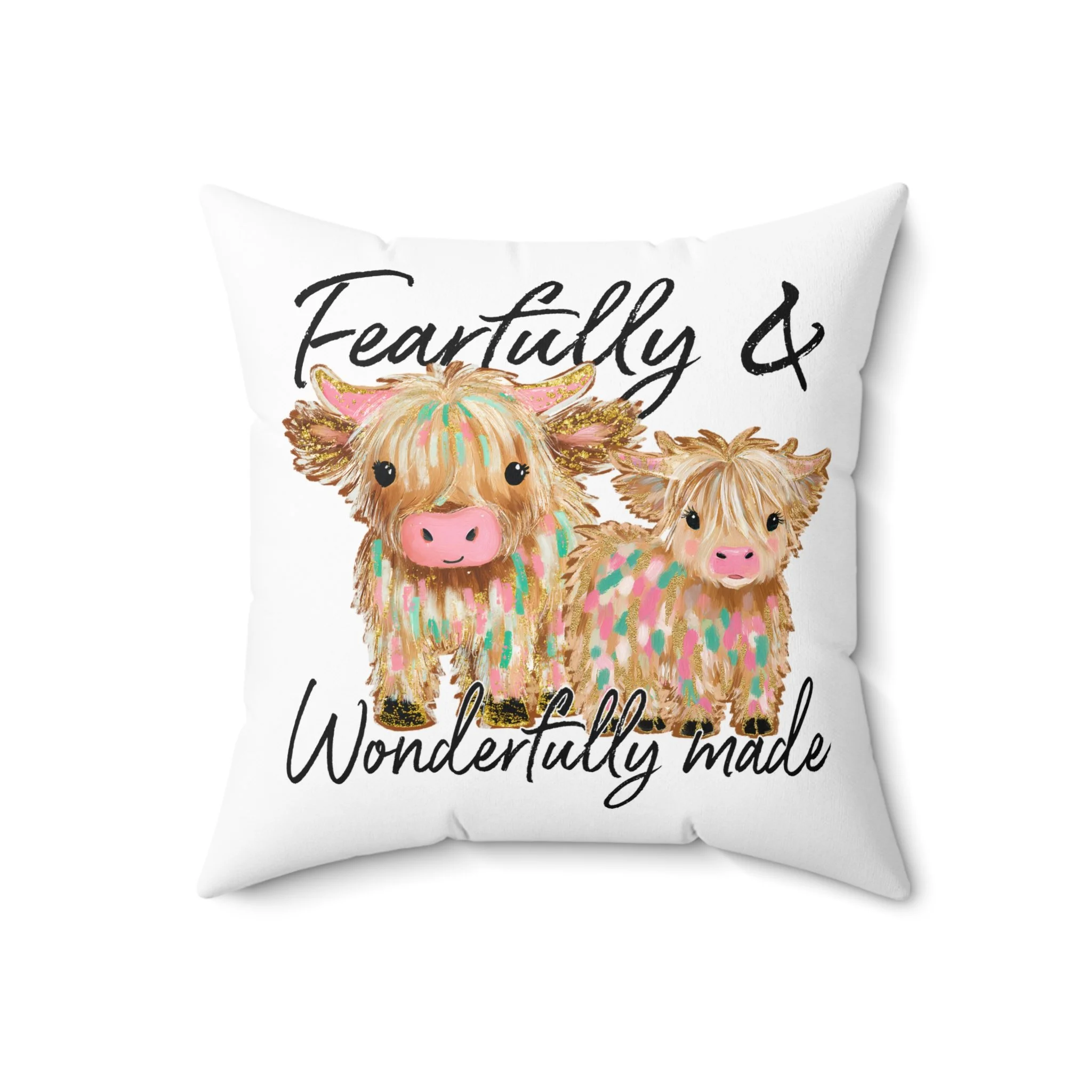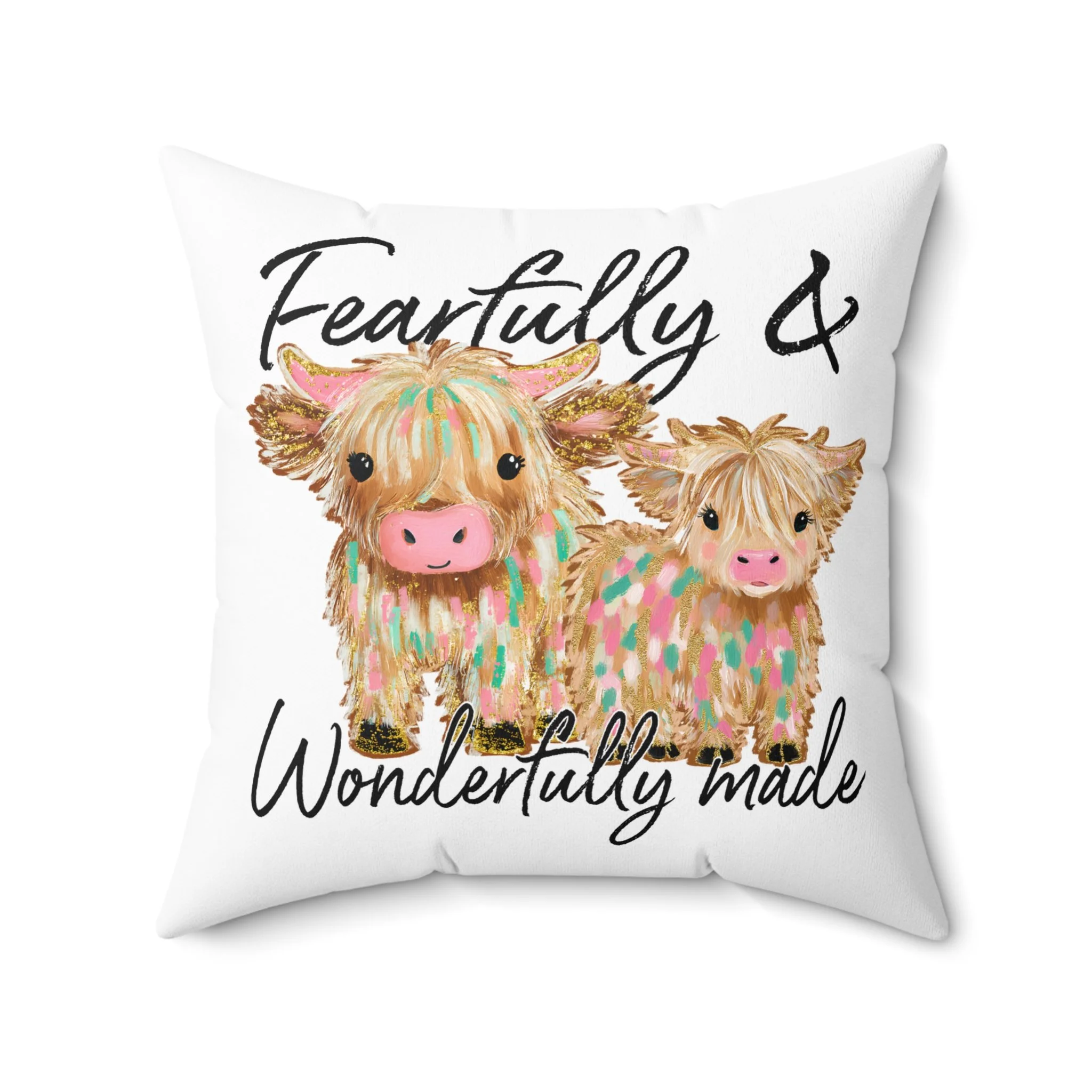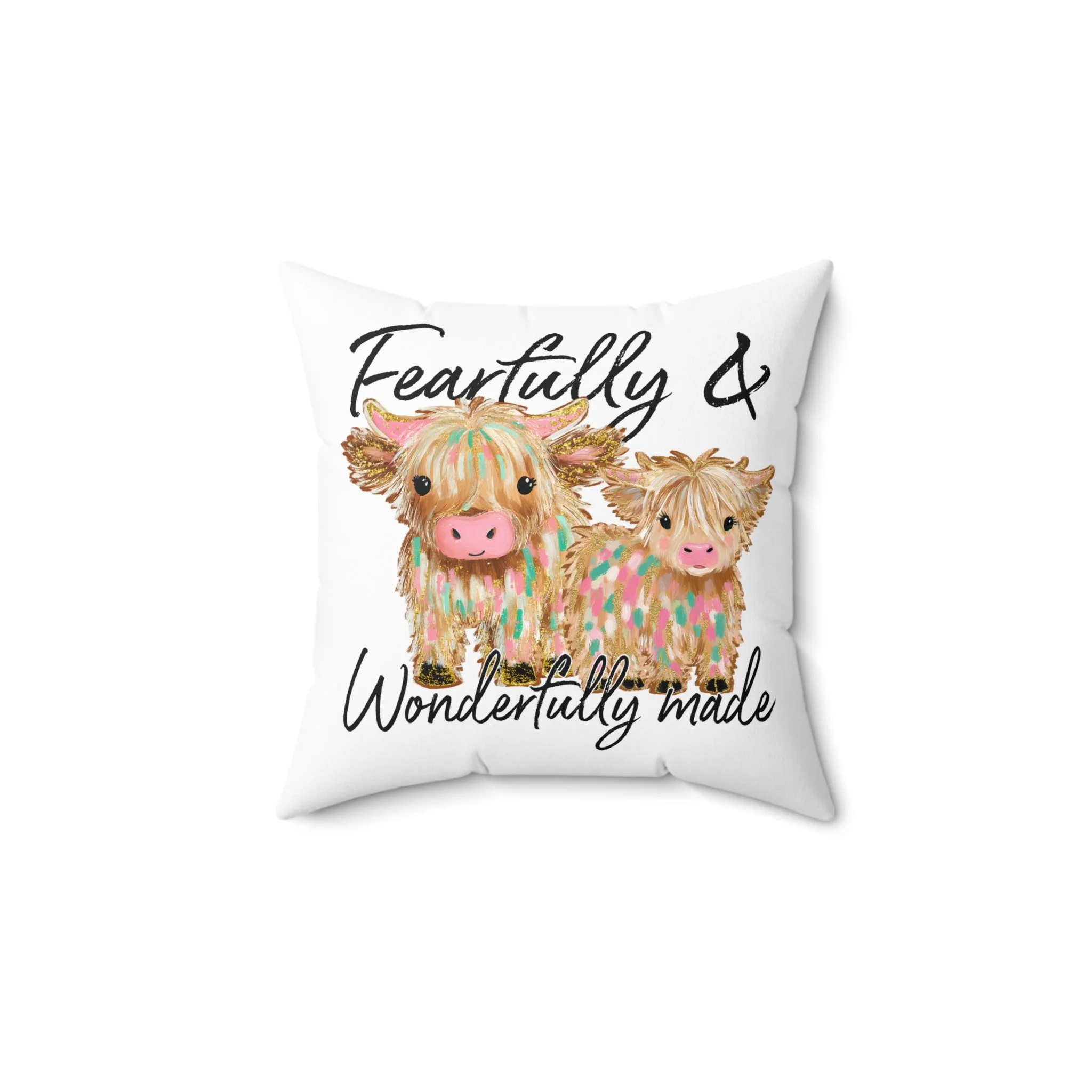 Fearfully & Wonderfully Made Animal Pillow, Decorative Square Pillow, Cow & Bow Cushion, Farmhouse Decor, Gifts for Animal Lovers