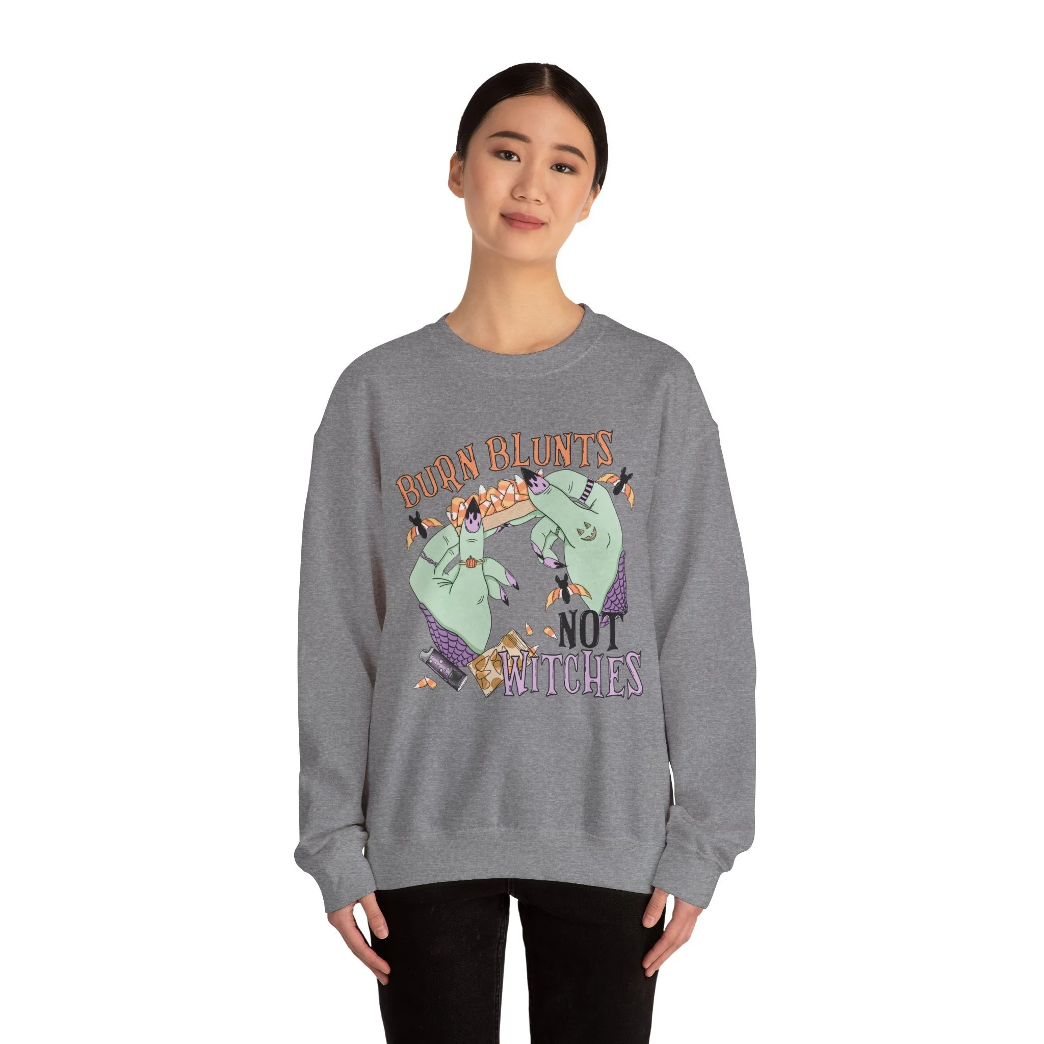 Funny Crewneck Sweatshirt - Burn Blunts Not Bitches Tee, Great for 420 Celebrations, Gifts for Stoners, Unisex Sweatshirt, Casual Wear