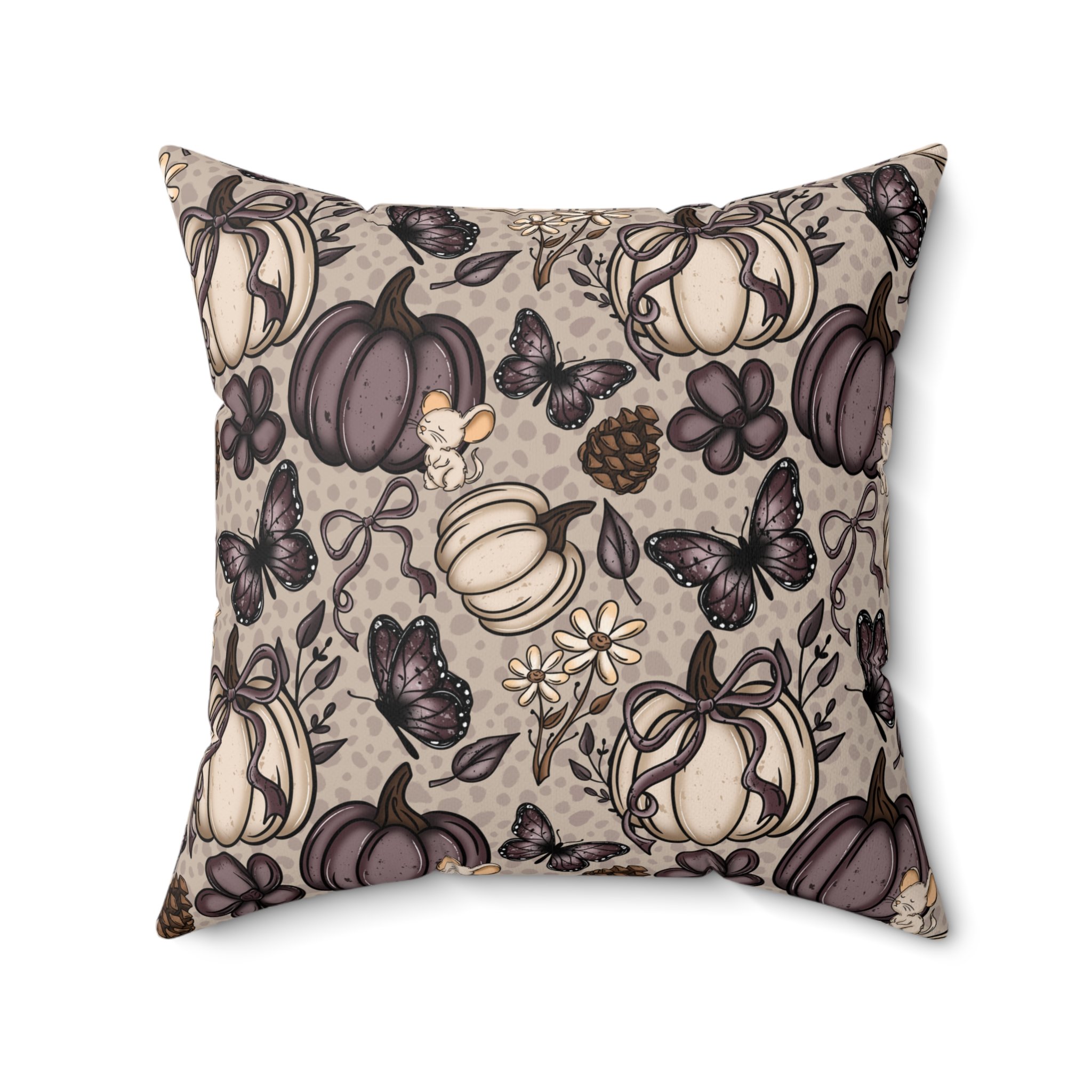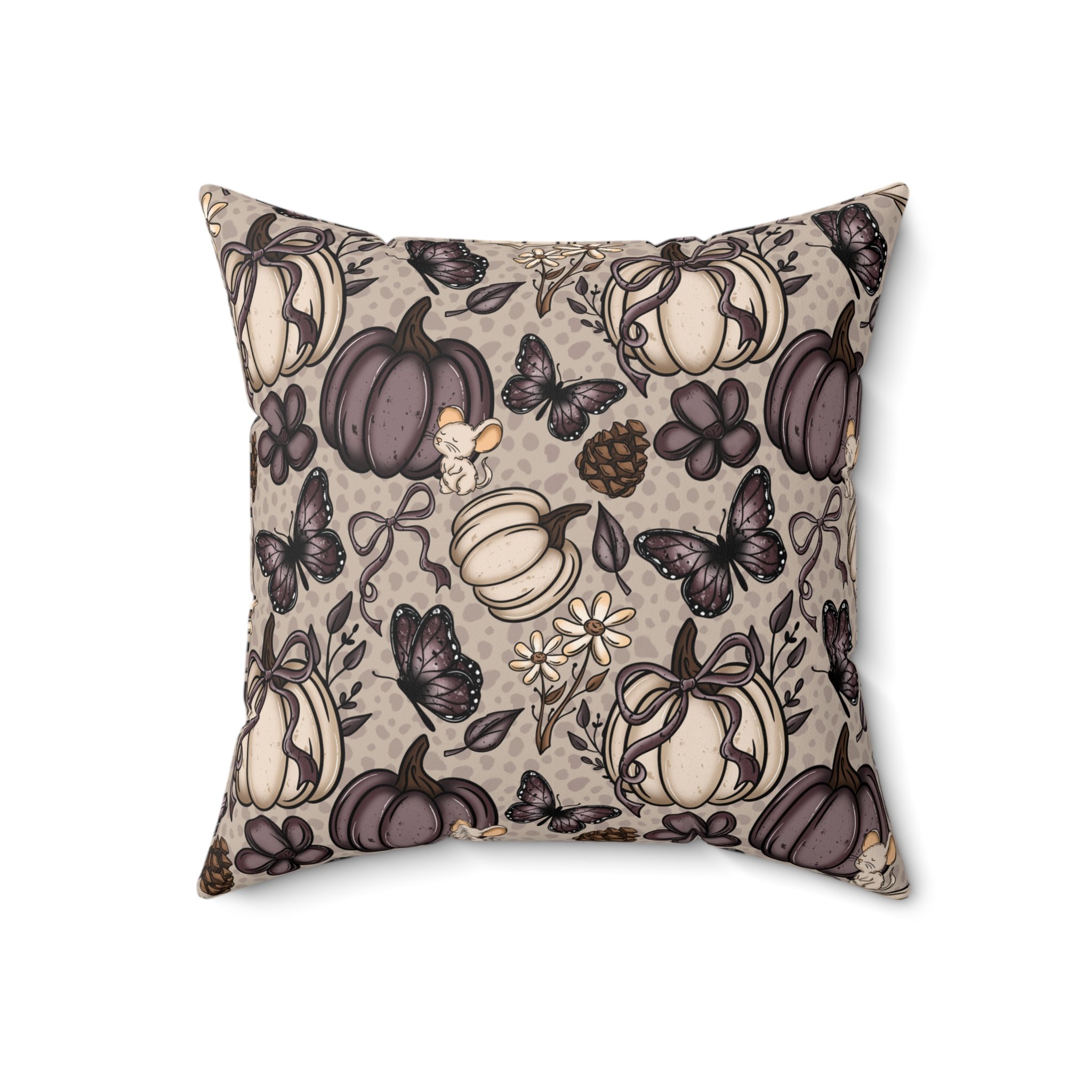 Elevate your home decor with this stylish and cozy square pillow. Crafted from 100% spun polyester, it offers unmatched comfort while retaining its shape beautifully. The double-sided print features charming pumpkin and butterfly designs that evoke a charming, autumnal vibe perfect for any season. Ideal for creating a warm and inviting atmosphere, this pillow fits seamlessly into your living room, bedroom, or even a cozy reading nook. Perfect for pumpkin lovers, nature enthusiasts, or anyone looking to add a touch of seasonal flair to their space. This pillow makes a wonderful gift for housewarmings, fall celebrations, or simply as a special treat for yourself.