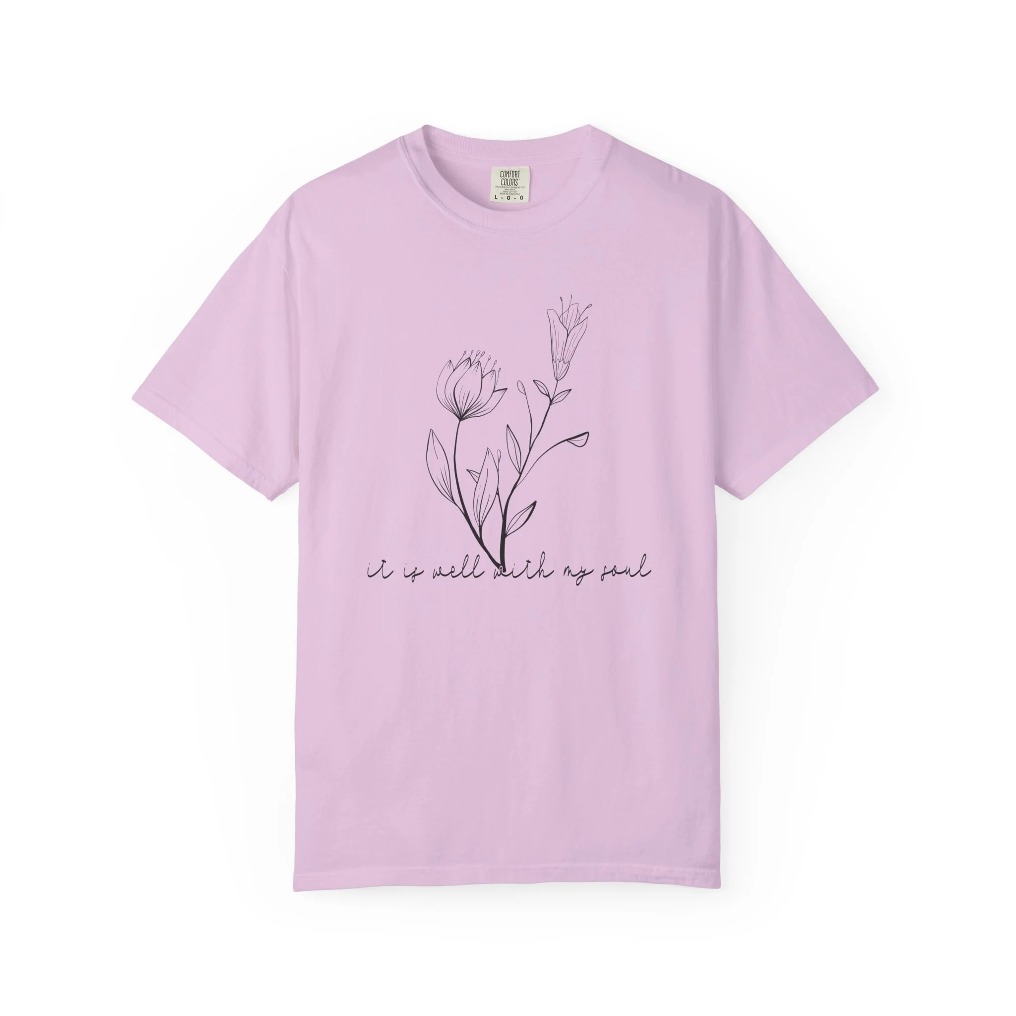 Peaceful and deeply meaningful, this “It Is Well With My Soul” graphic t-shirt features a delicate line-art floral illustration paired with a timeless message of faith and reassurance. Its minimalist design makes a quiet yet powerful statement, perfect for those who appreciate subtle expression and intentional living.