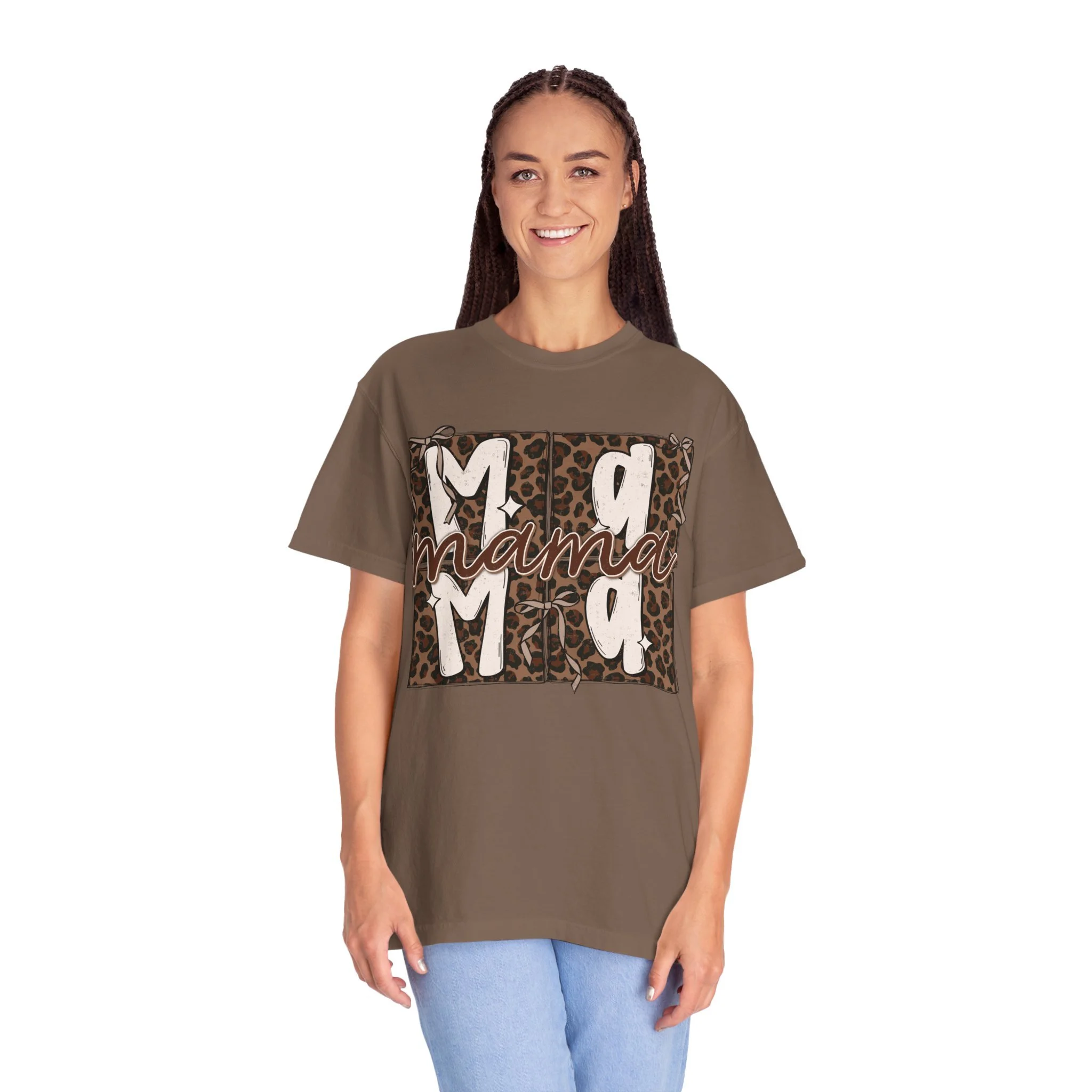 Mama Leopard Graphic T-Shirt | 'Mama' Brown Garment-Dyed Tee | Comfort Colors Tee