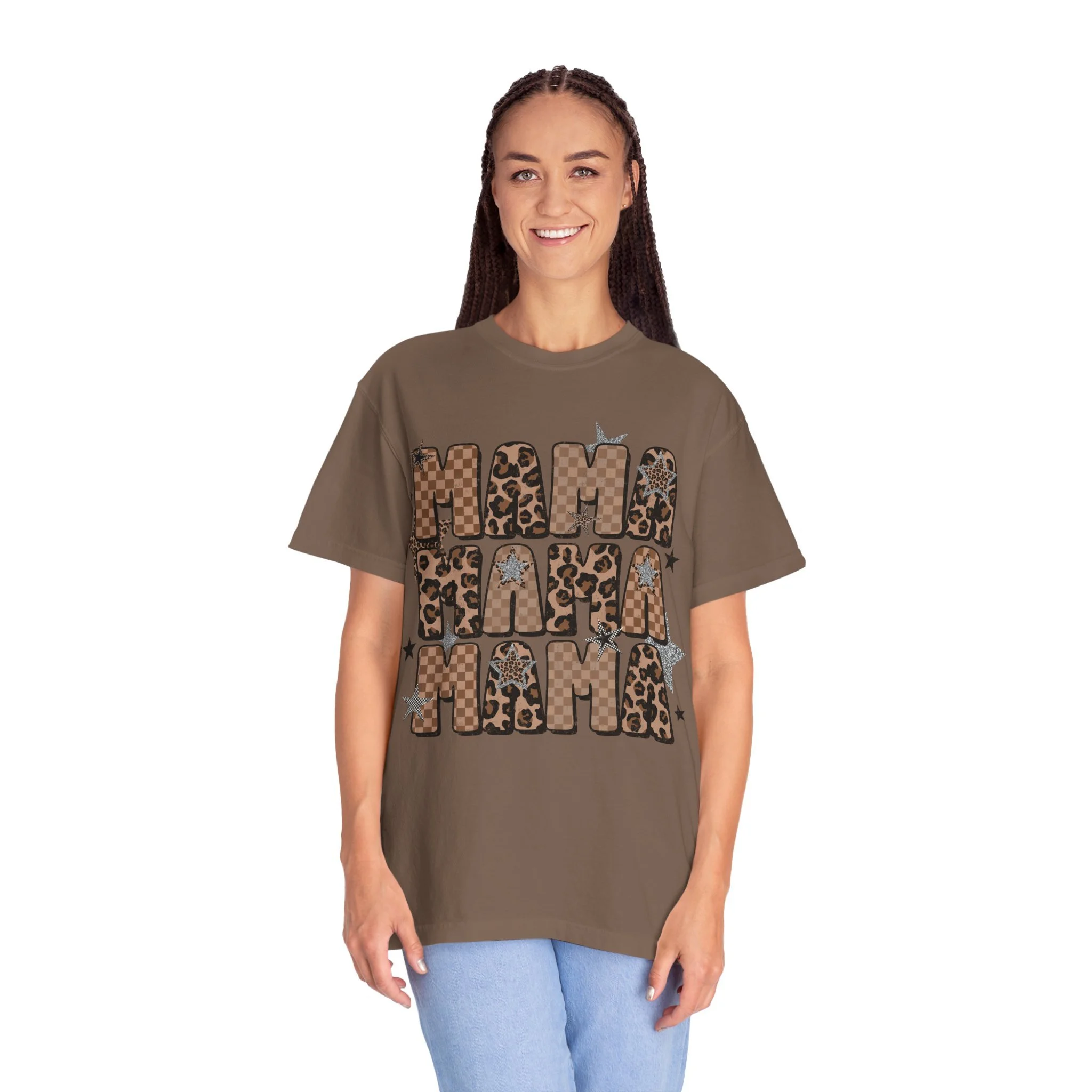 Mama Mama Mama T-Shirt | Leopard Patchwork Mom Tee | Holiday Gift