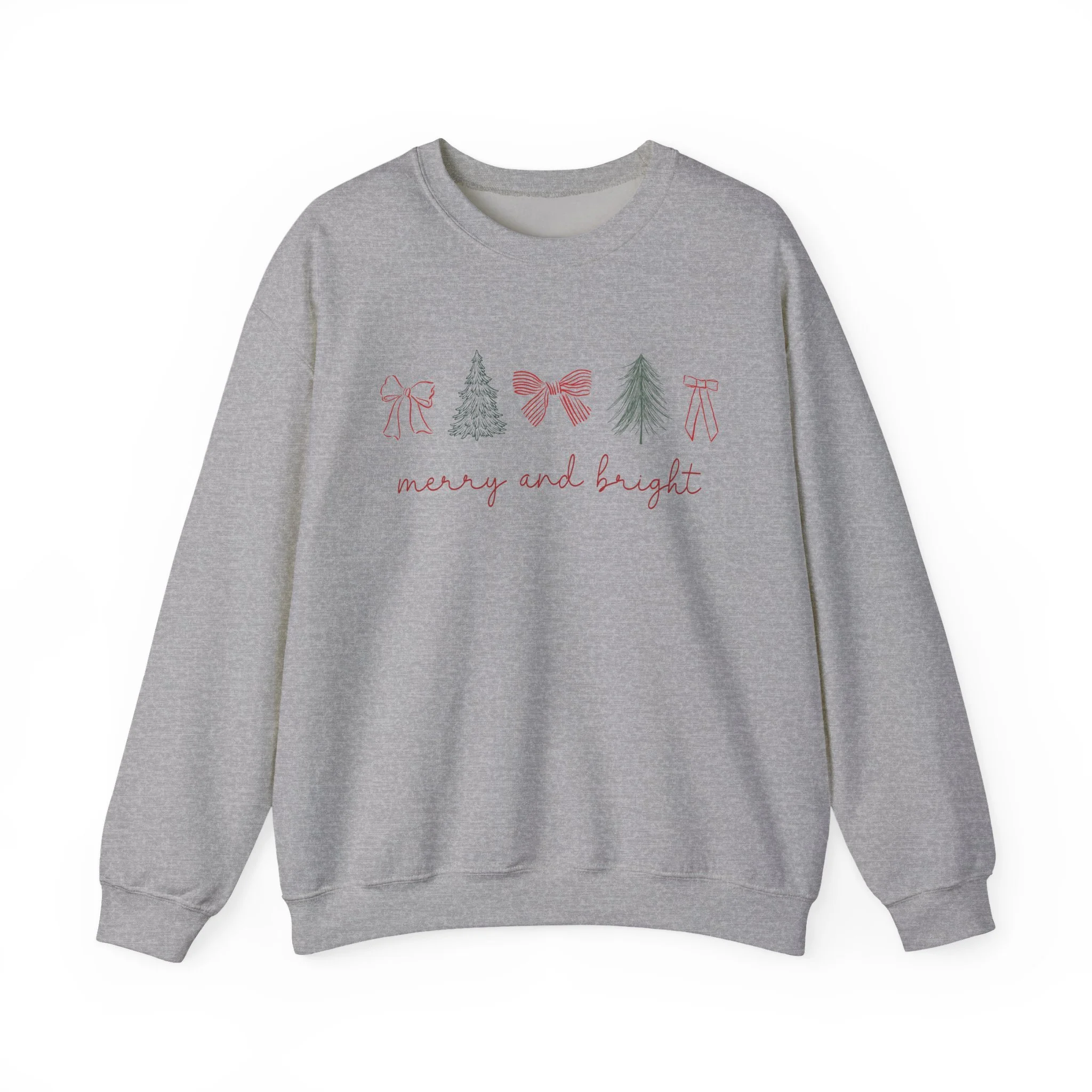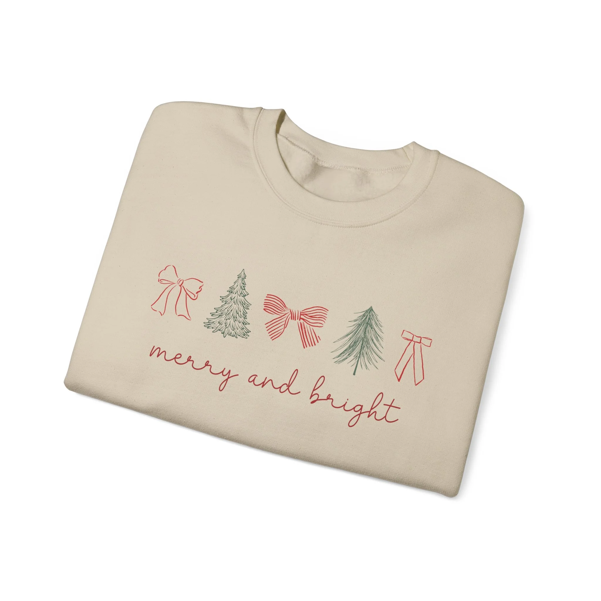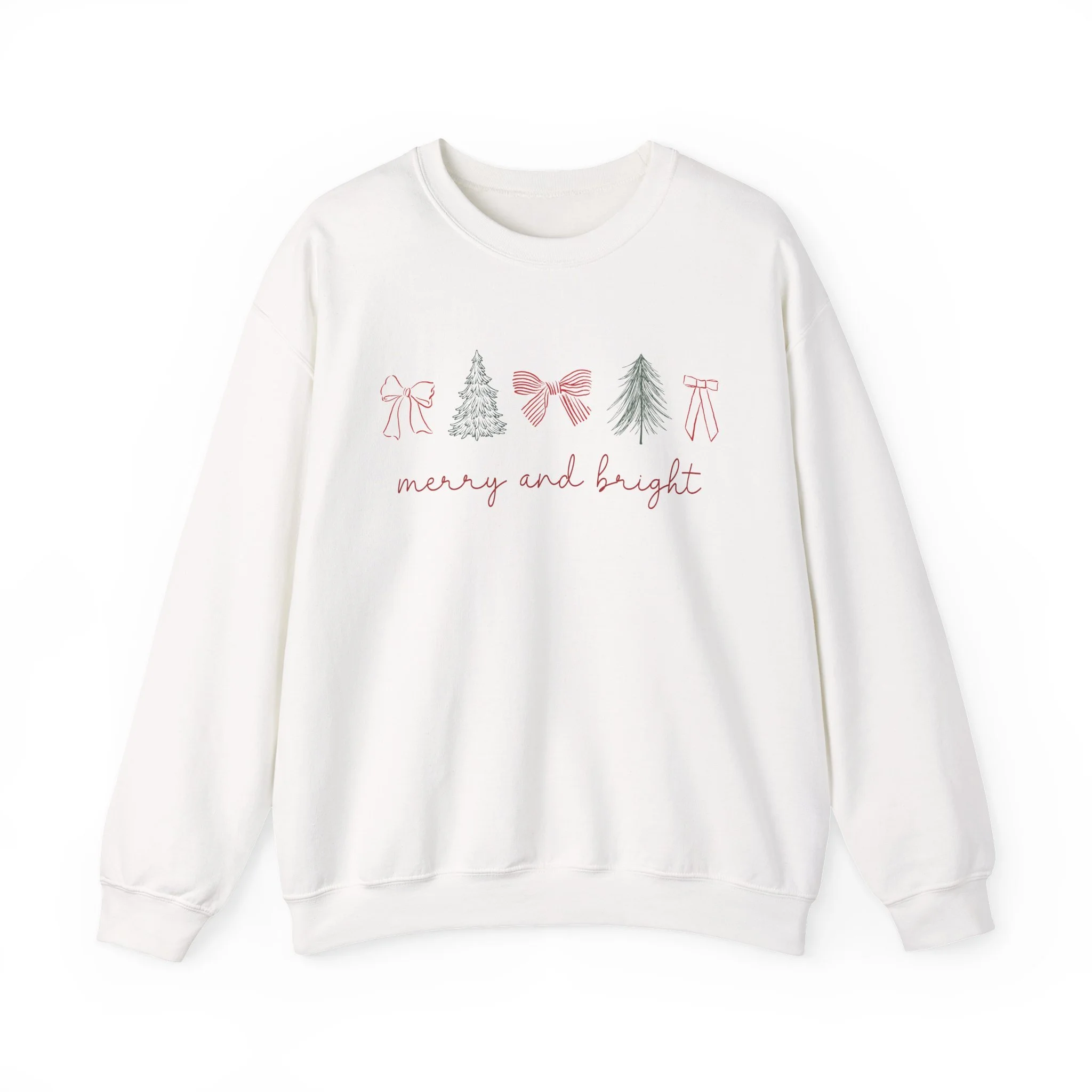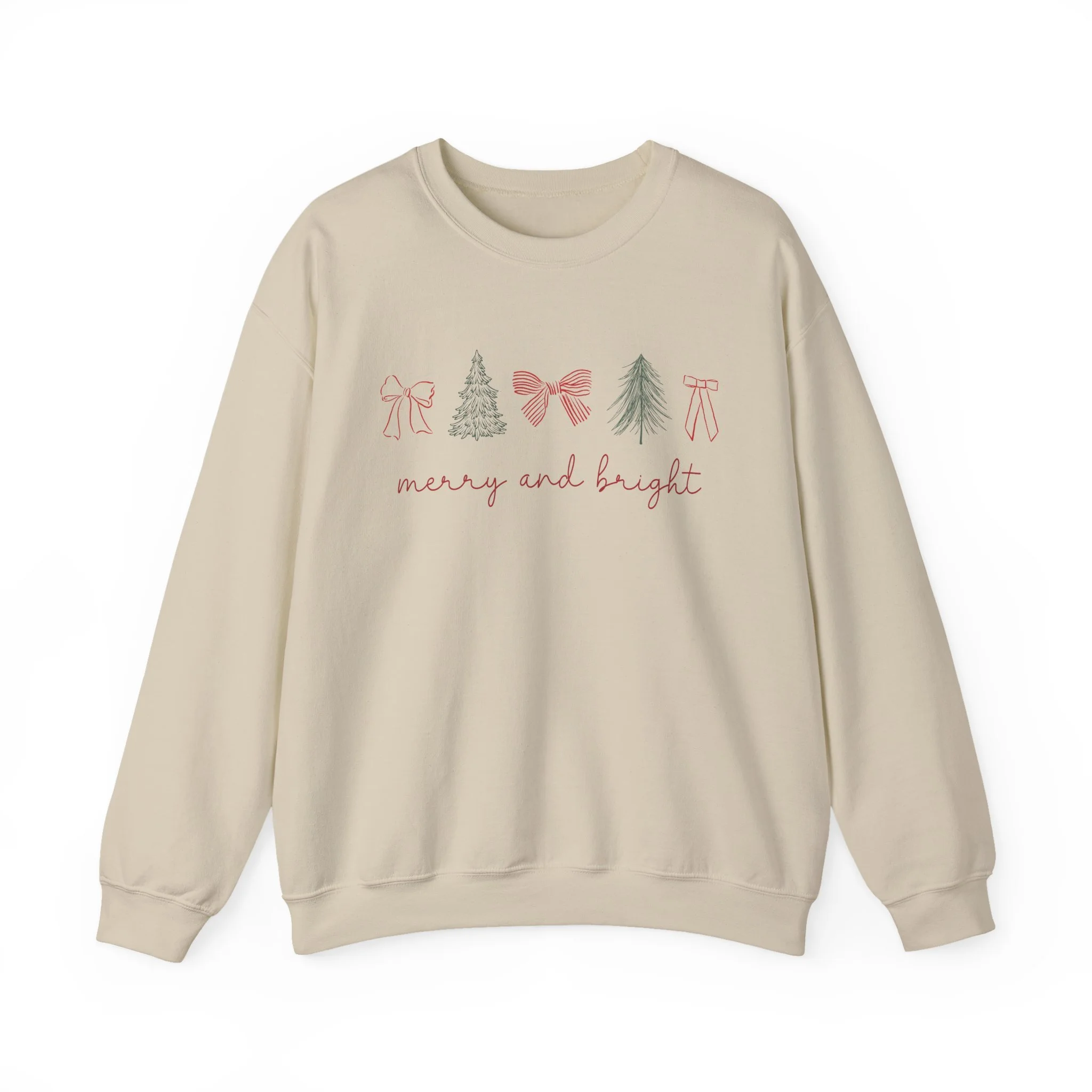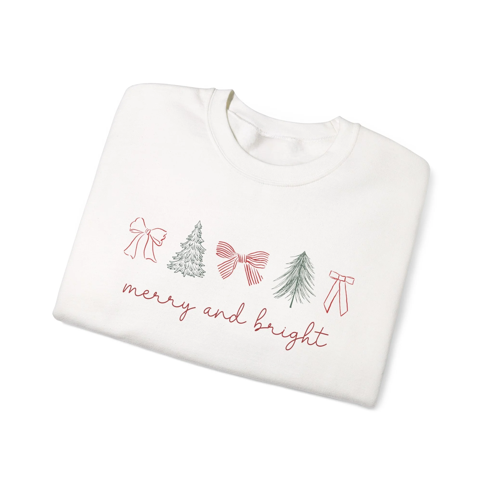 Merry and Bright Crewneck Sweatshirt — Minimal Pastel Christmas Sweatshirt