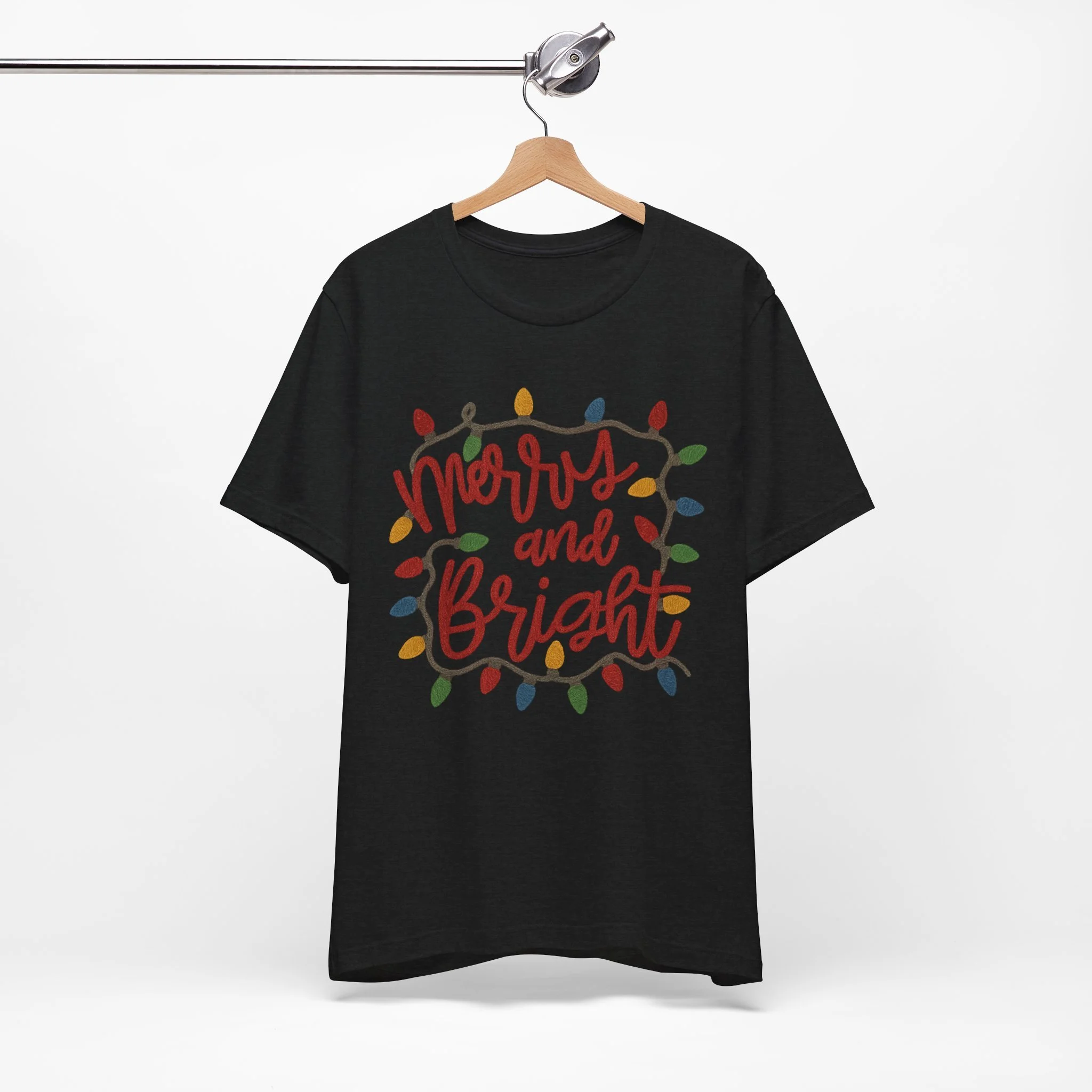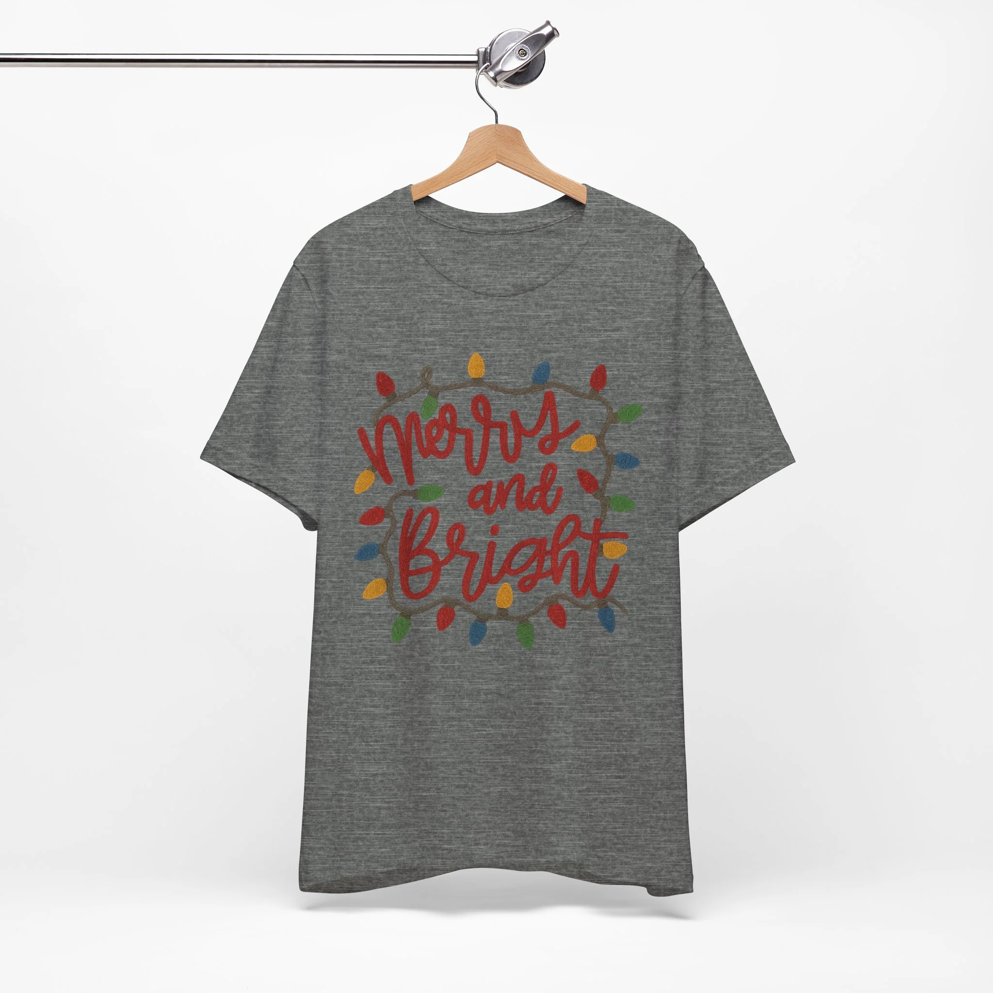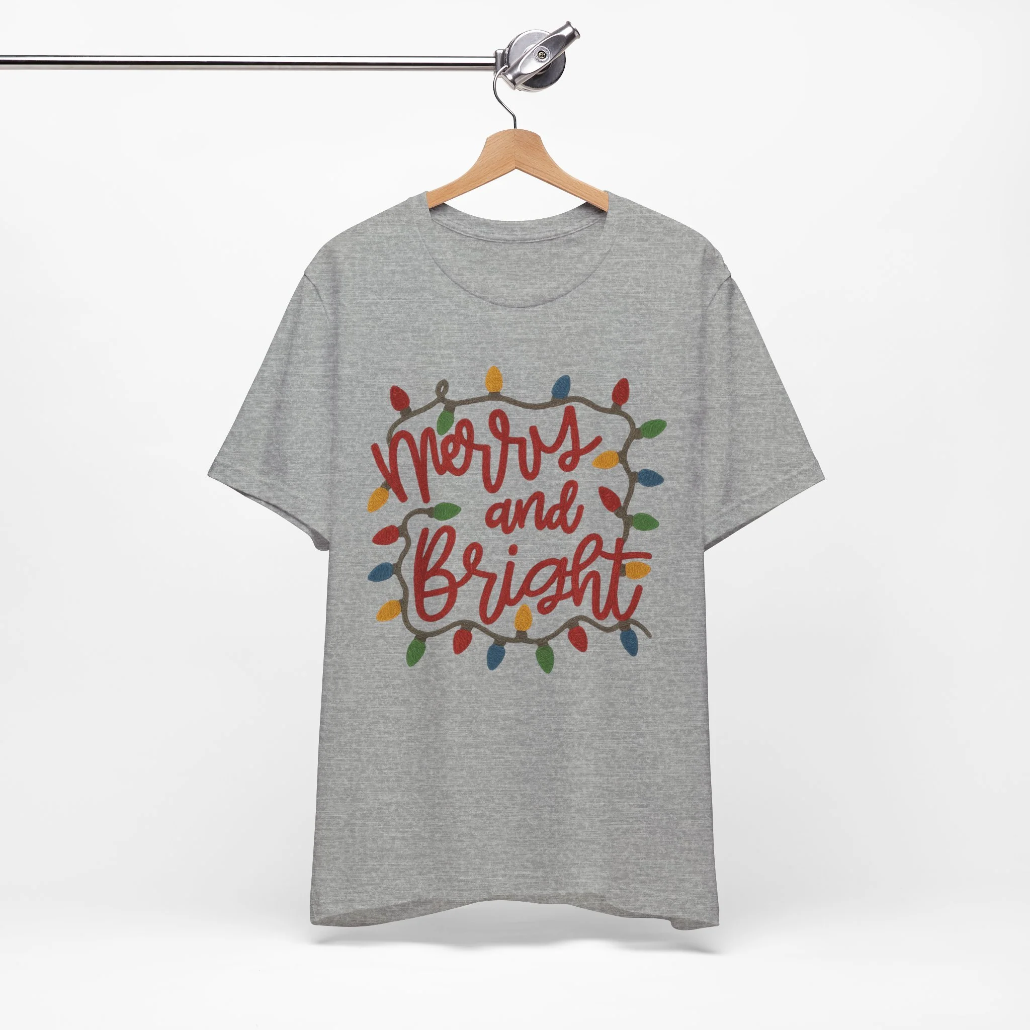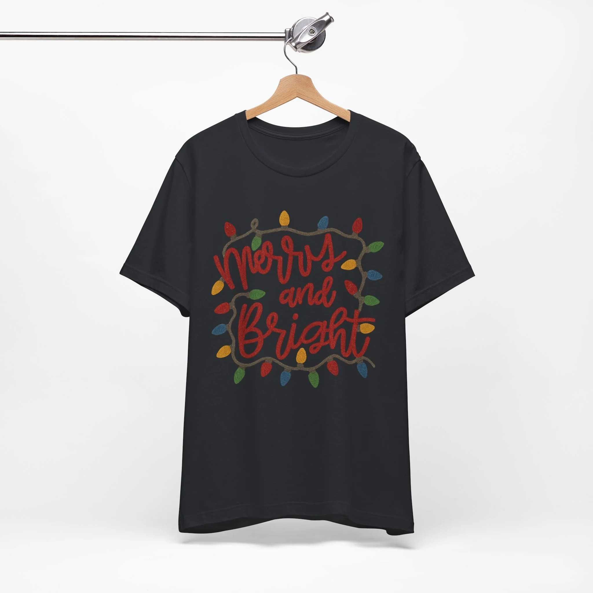 Celebrate the festive season with our charming unisex jersey short sleeve tee! This delightful shirt brings a joyful vibe, featuring a vibrant "Merry and Bright" design adorned with cheerful holiday lights. It's perfect for gatherings with family and friends, making it a wonderful addition to your holiday wardrobe. Whether you're hosting a cozy get-together or lounging at home, this tee balances comfort and style effortlessly. It's an ideal gift for anyone who loves to spread holiday cheer, suitable for Christmas, New Year celebrations, or any festive occasion. Make this tee a staple in your wardrobe this holiday season and enjoy the warmth it brings!