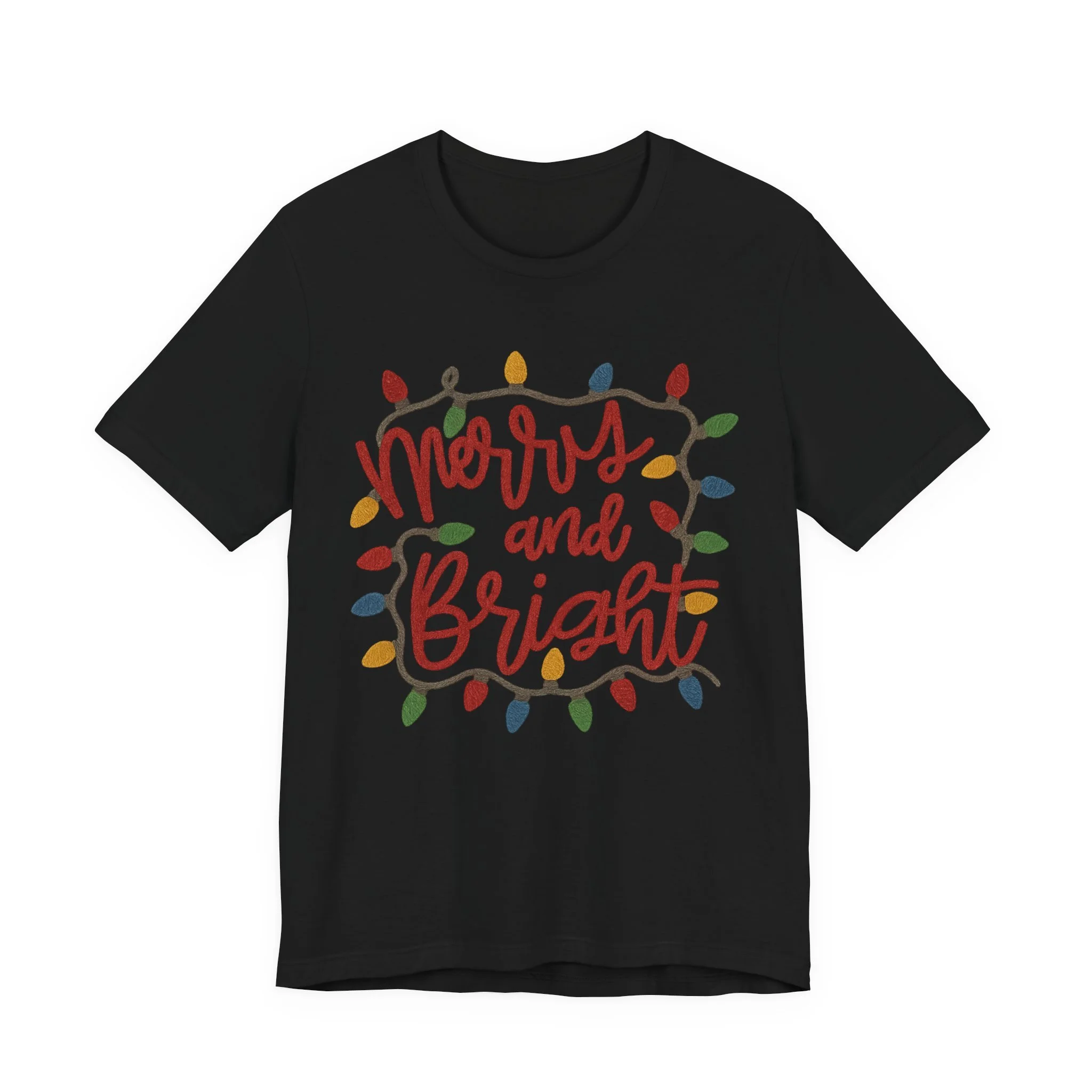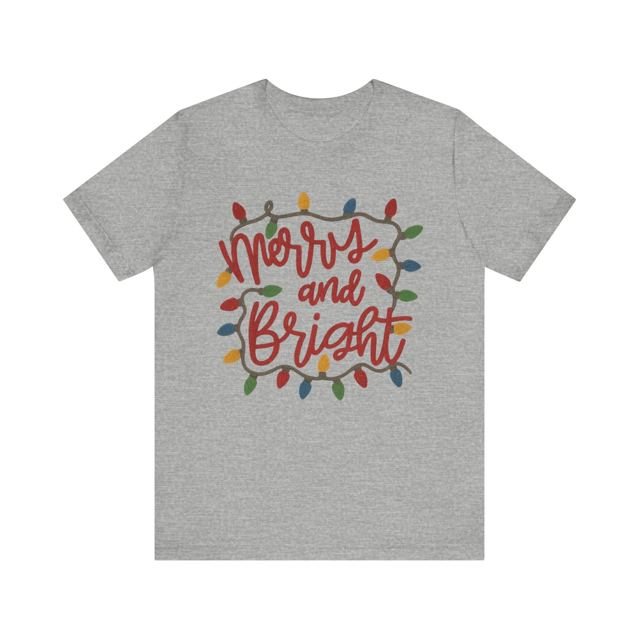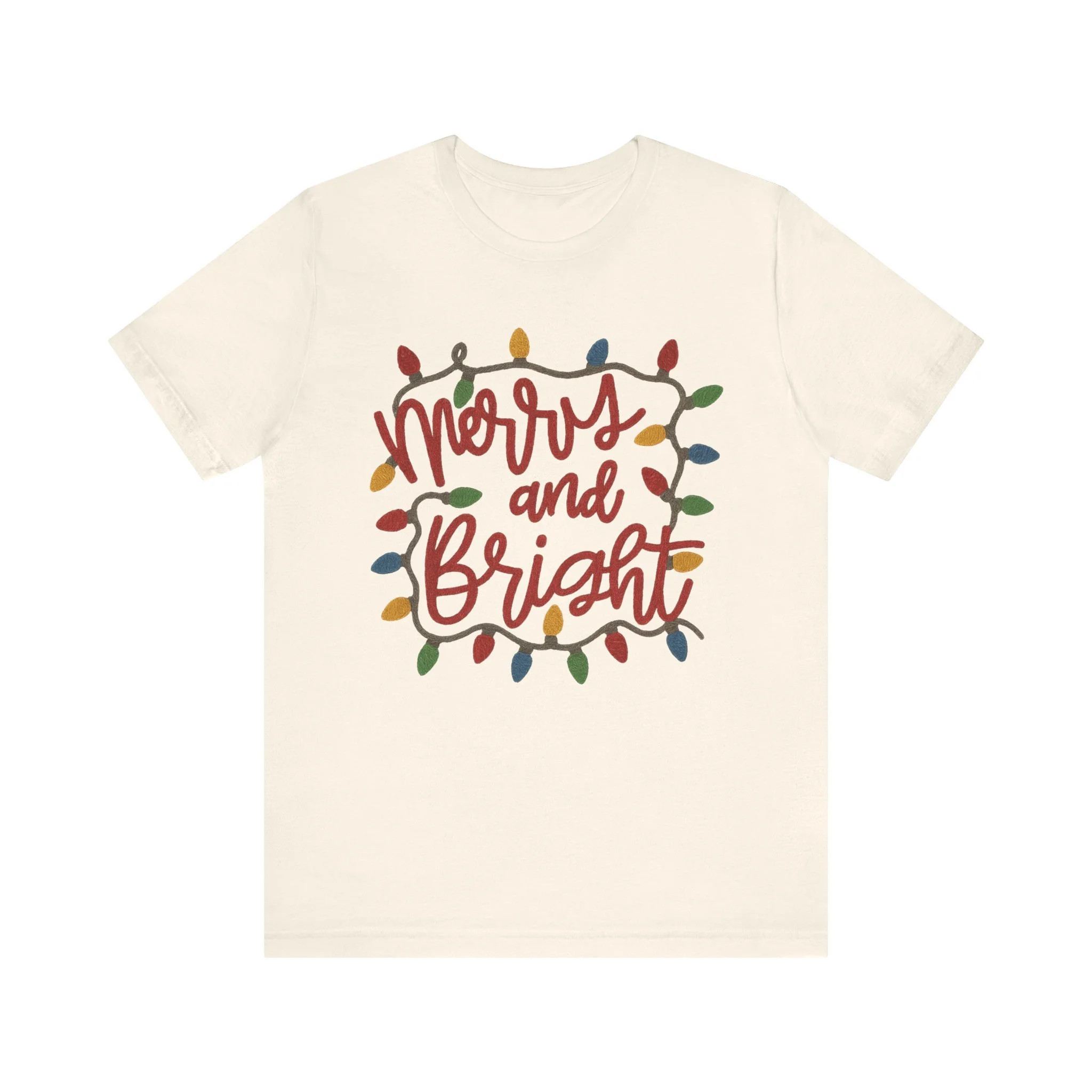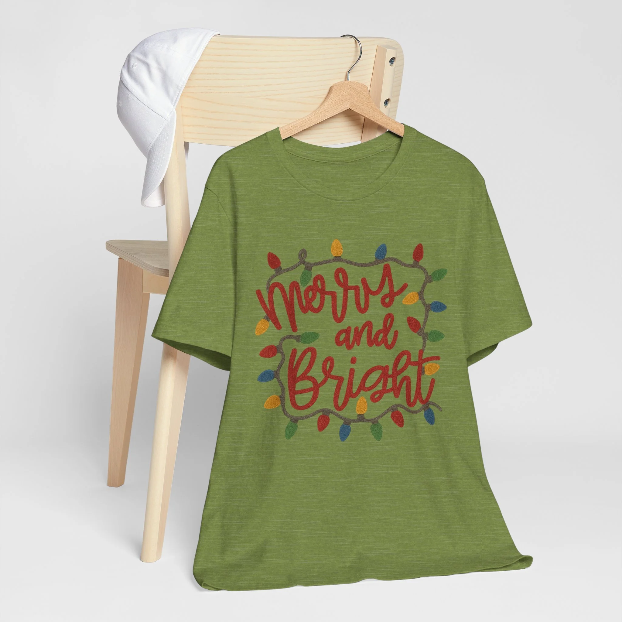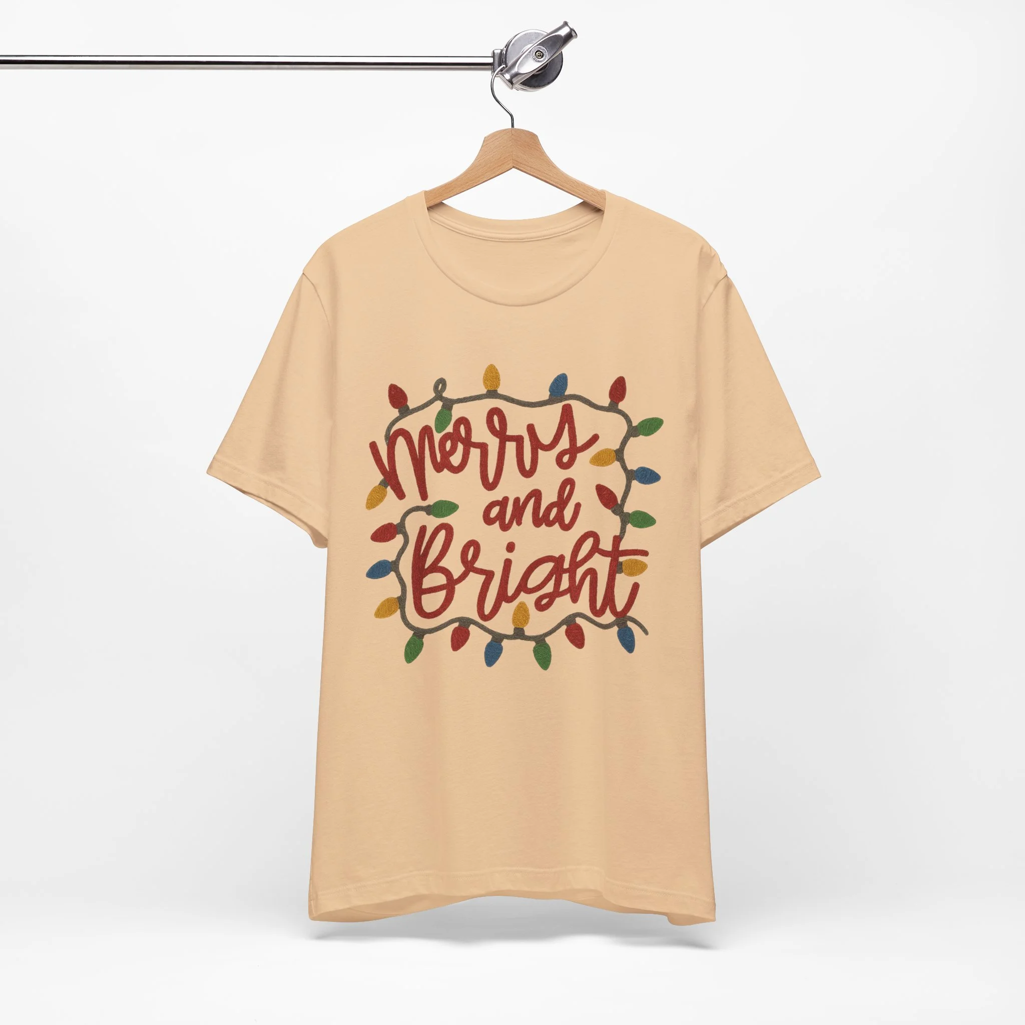 Celebrate the festive season with our charming unisex jersey short sleeve tee! This delightful shirt brings a joyful vibe, featuring a vibrant "Merry and Bright" design adorned with cheerful holiday lights. It's perfect for gatherings with family and friends, making it a wonderful addition to your holiday wardrobe. Whether you're hosting a cozy get-together or lounging at home, this tee balances comfort and style effortlessly. It's an ideal gift for anyone who loves to spread holiday cheer, suitable for Christmas, New Year celebrations, or any festive occasion. Make this tee a staple in your wardrobe this holiday season and enjoy the warmth it brings!