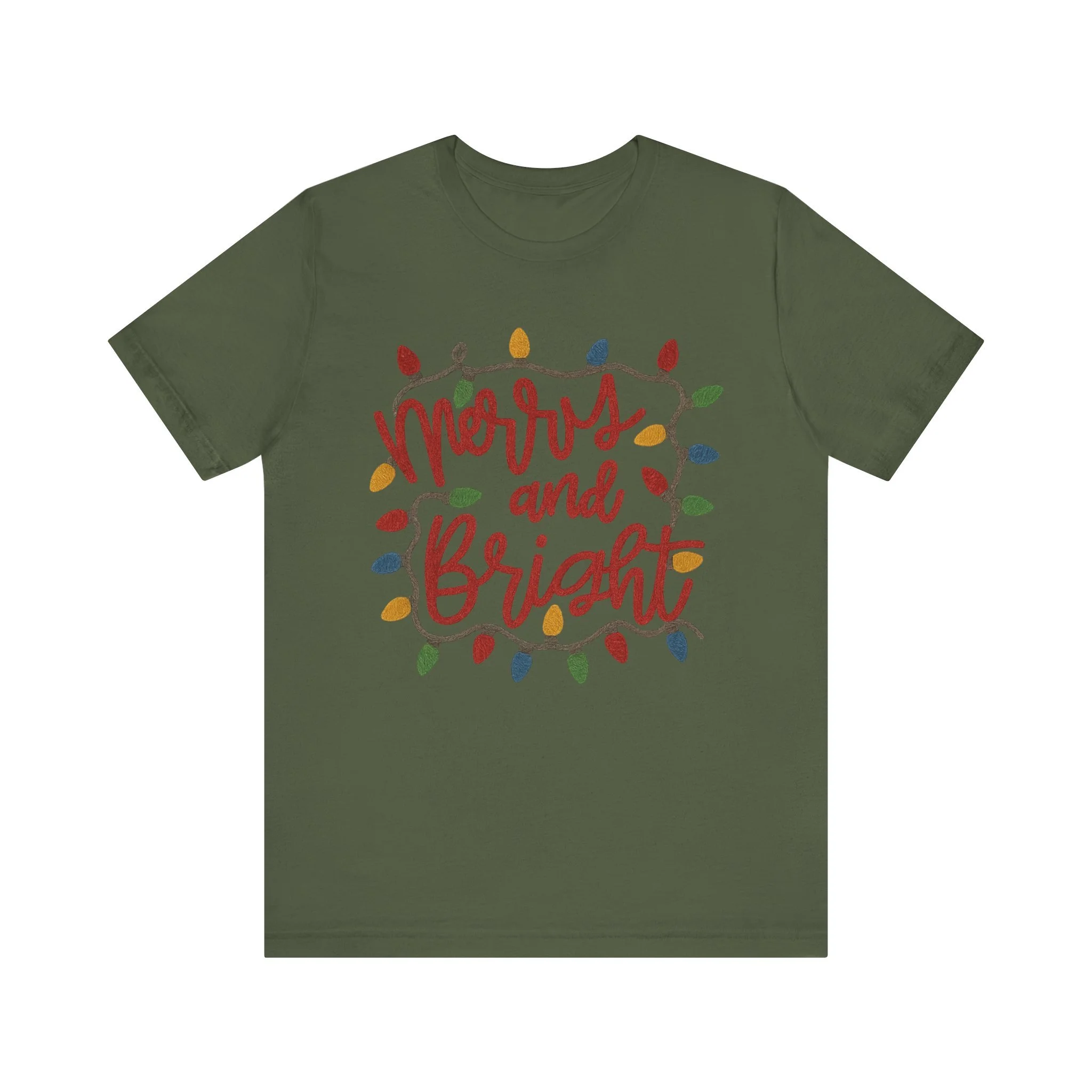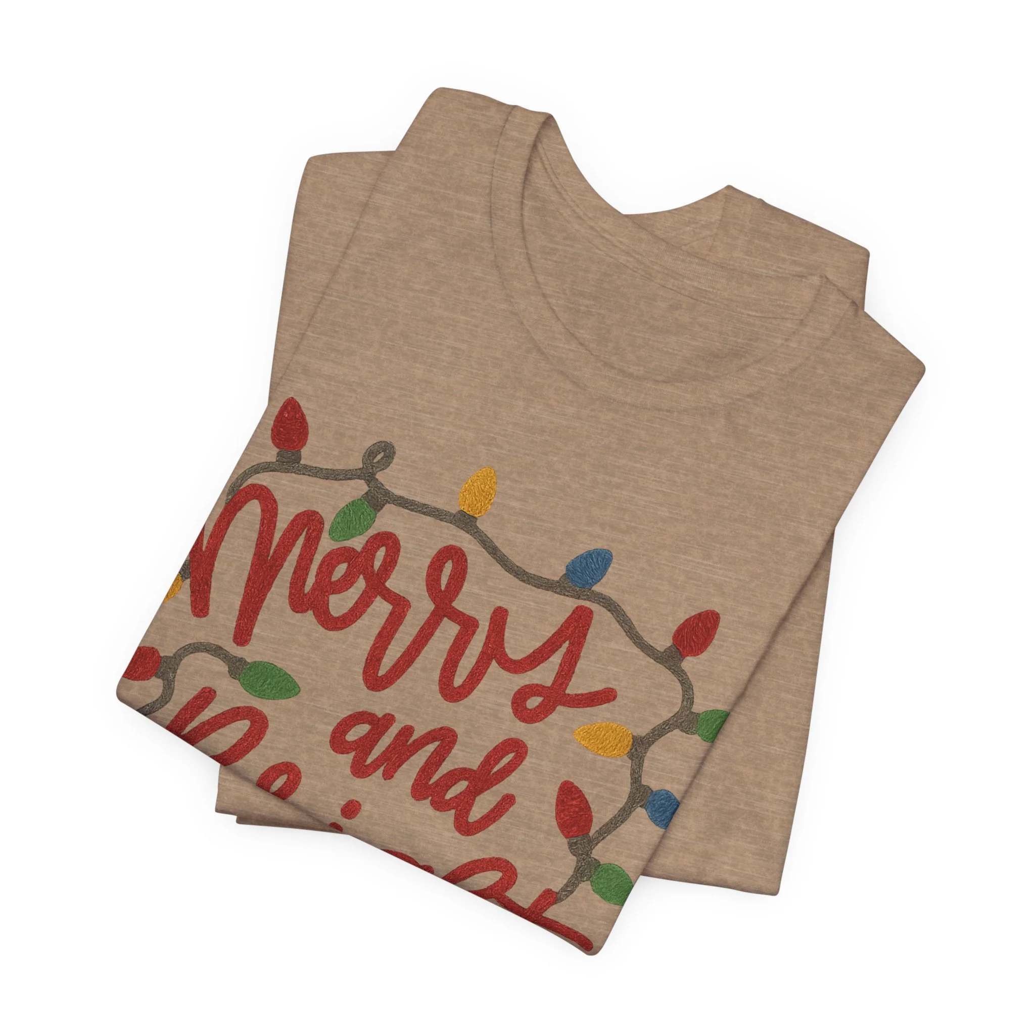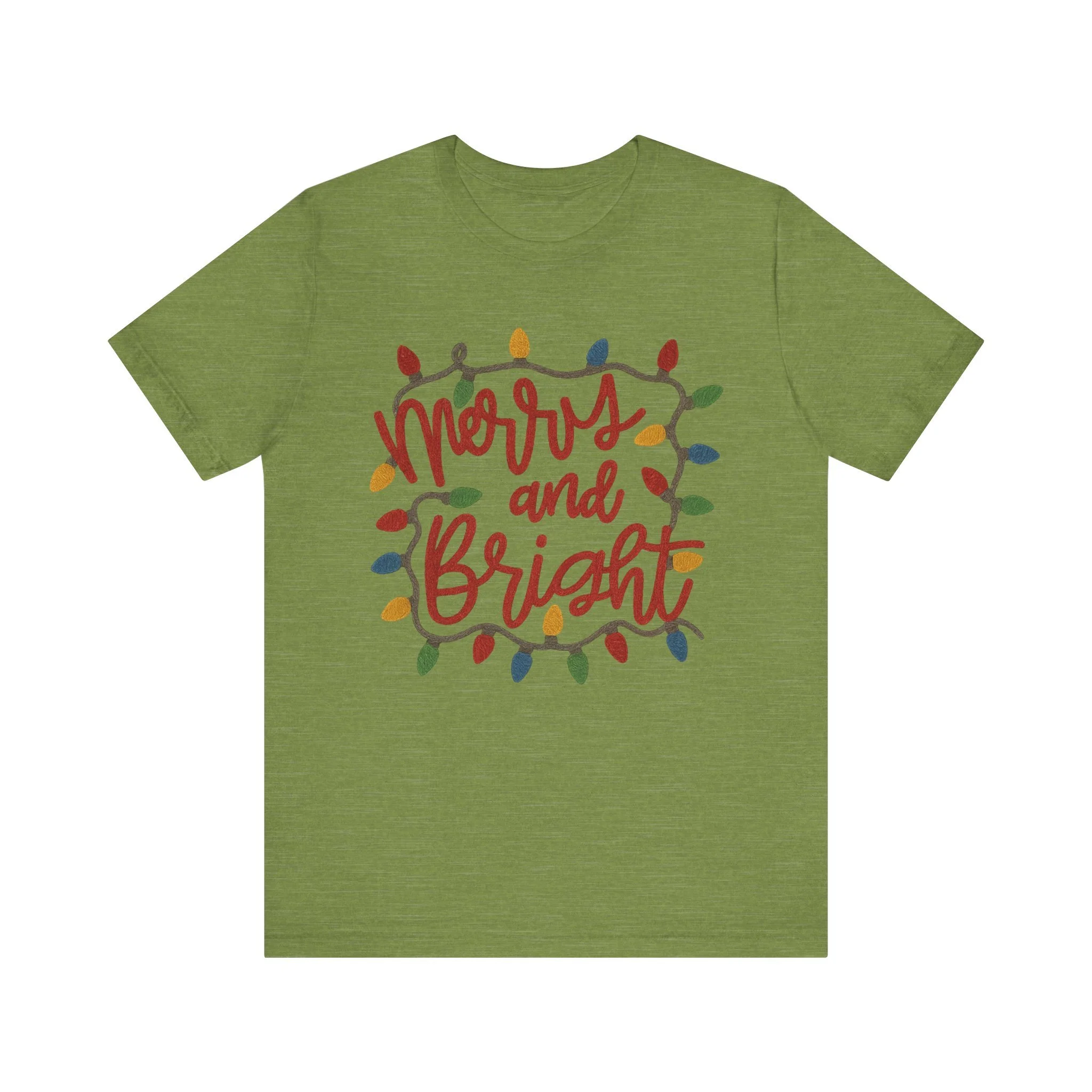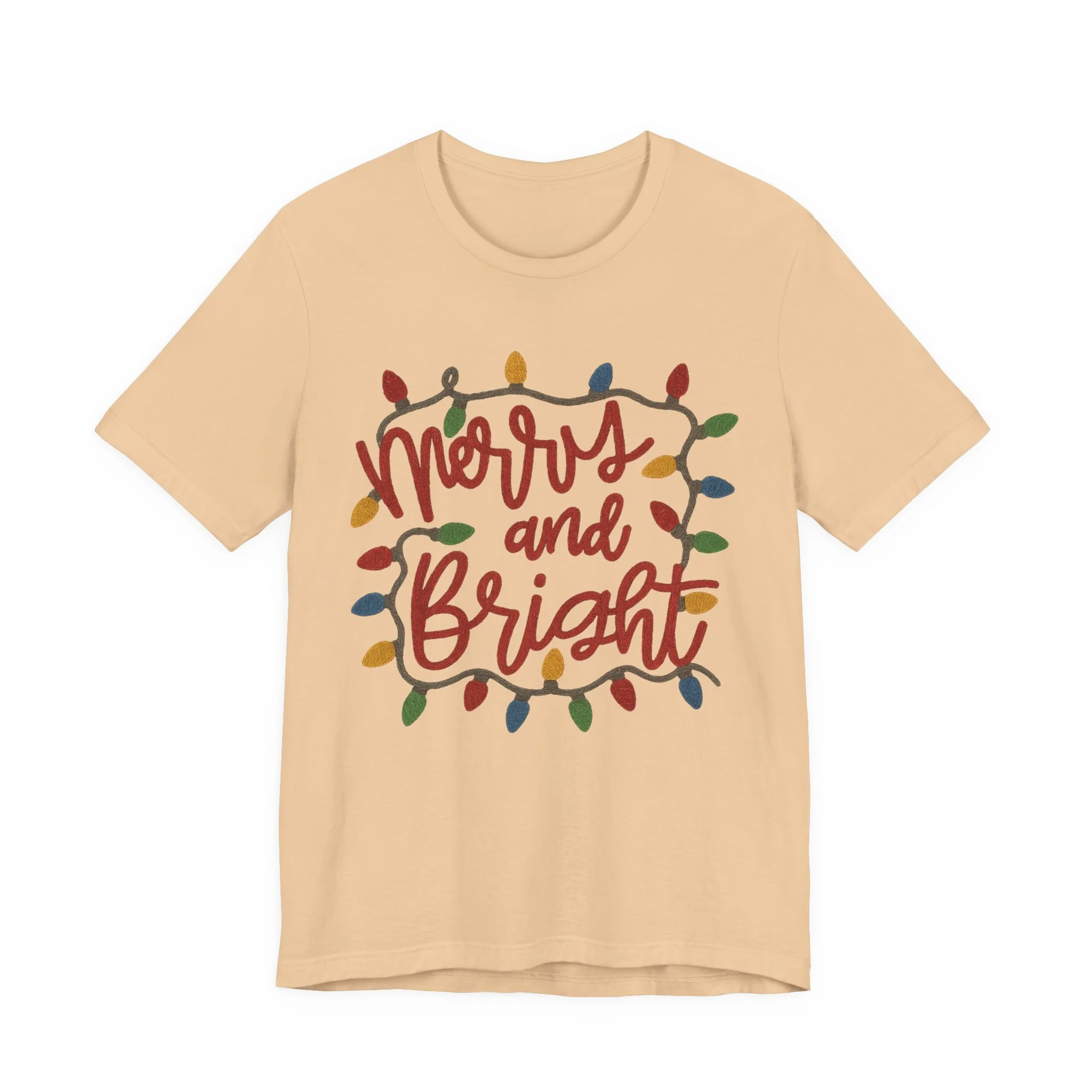Celebrate the festive season with our charming unisex jersey short sleeve tee! This delightful shirt brings a joyful vibe, featuring a vibrant "Merry and Bright" design adorned with cheerful holiday lights. It's perfect for gatherings with family and friends, making it a wonderful addition to your holiday wardrobe. Whether you're hosting a cozy get-together or lounging at home, this tee balances comfort and style effortlessly. It's an ideal gift for anyone who loves to spread holiday cheer, suitable for Christmas, New Year celebrations, or any festive occasion. Make this tee a staple in your wardrobe this holiday season and enjoy the warmth it brings!