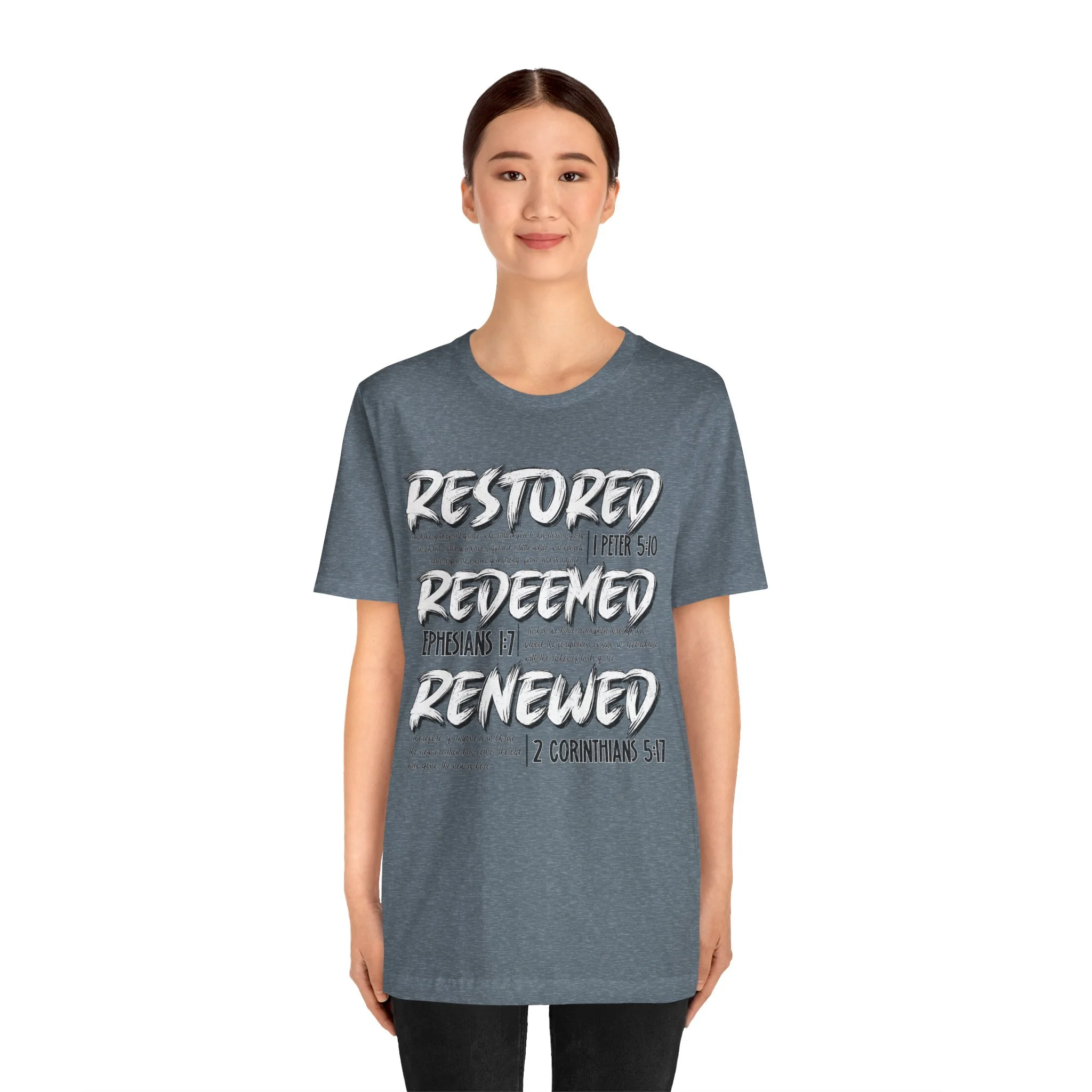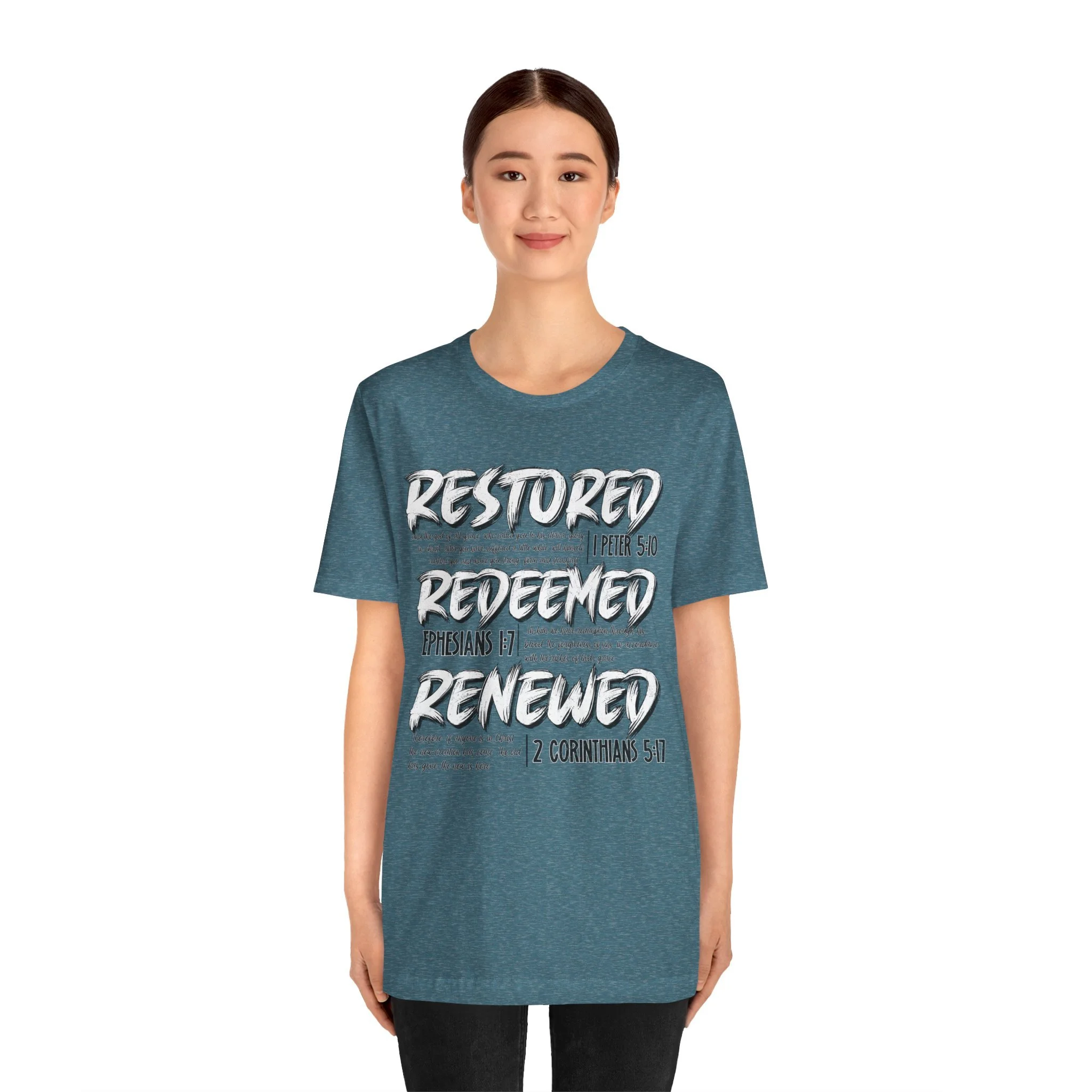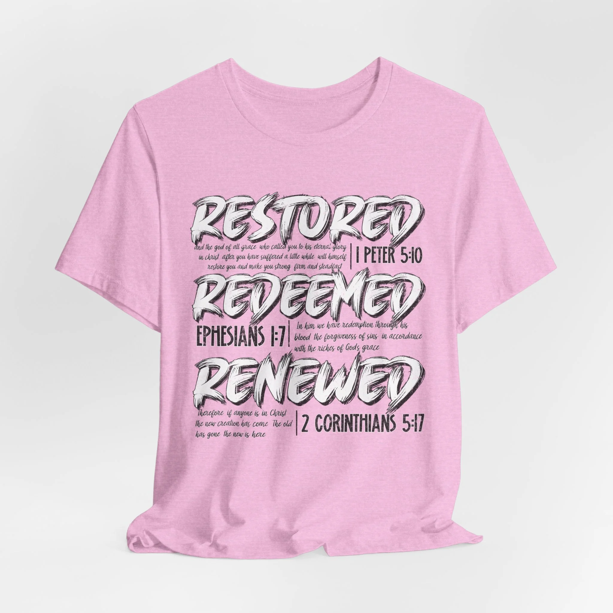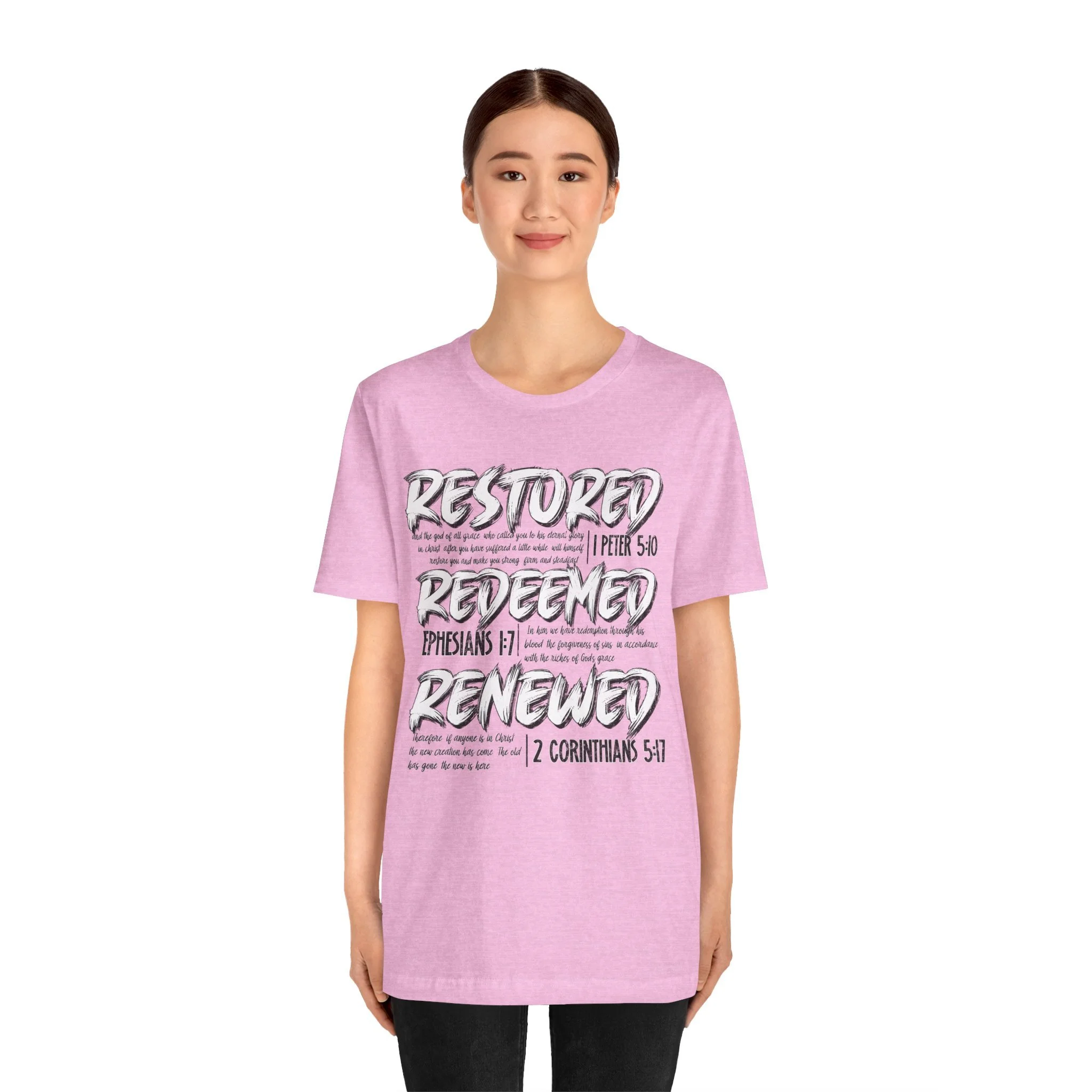 Restored Redeemed Renewed Unisex Tee | Bella + Canvas Unisex Tee | Faith-Inspired Unisex Tee