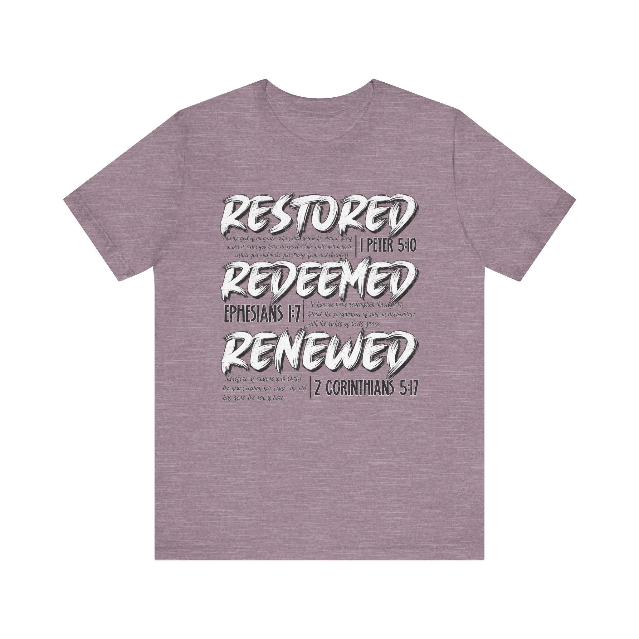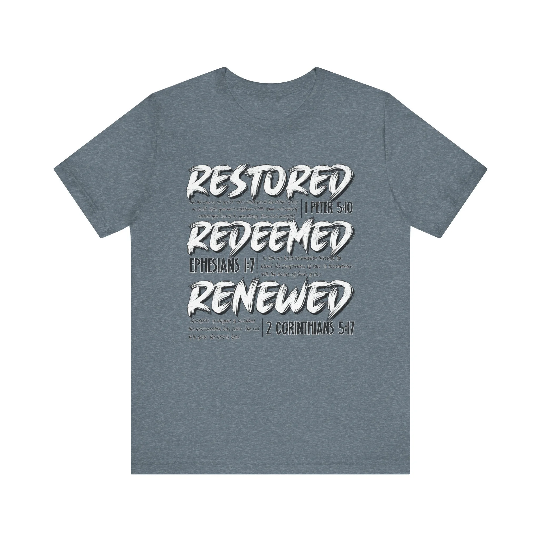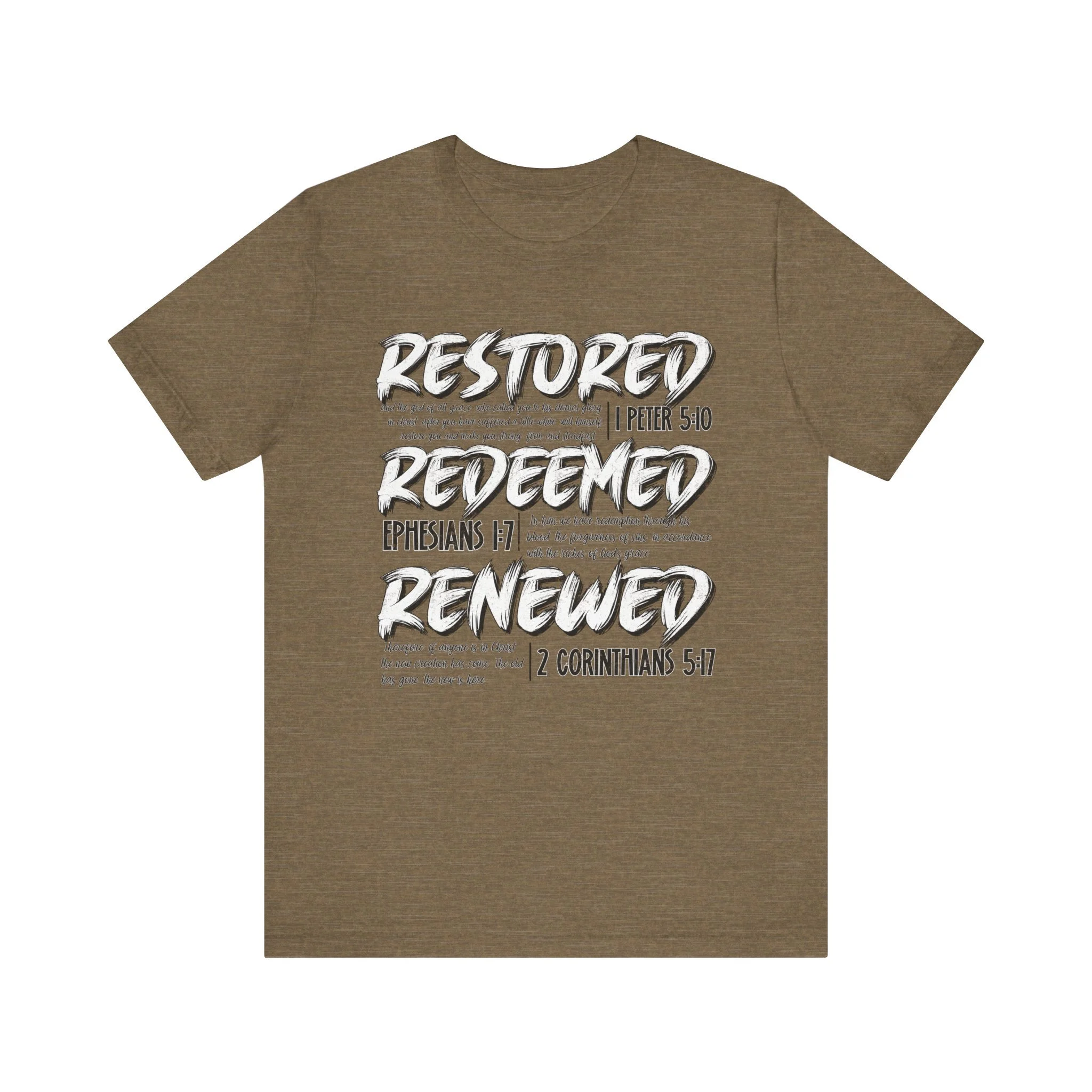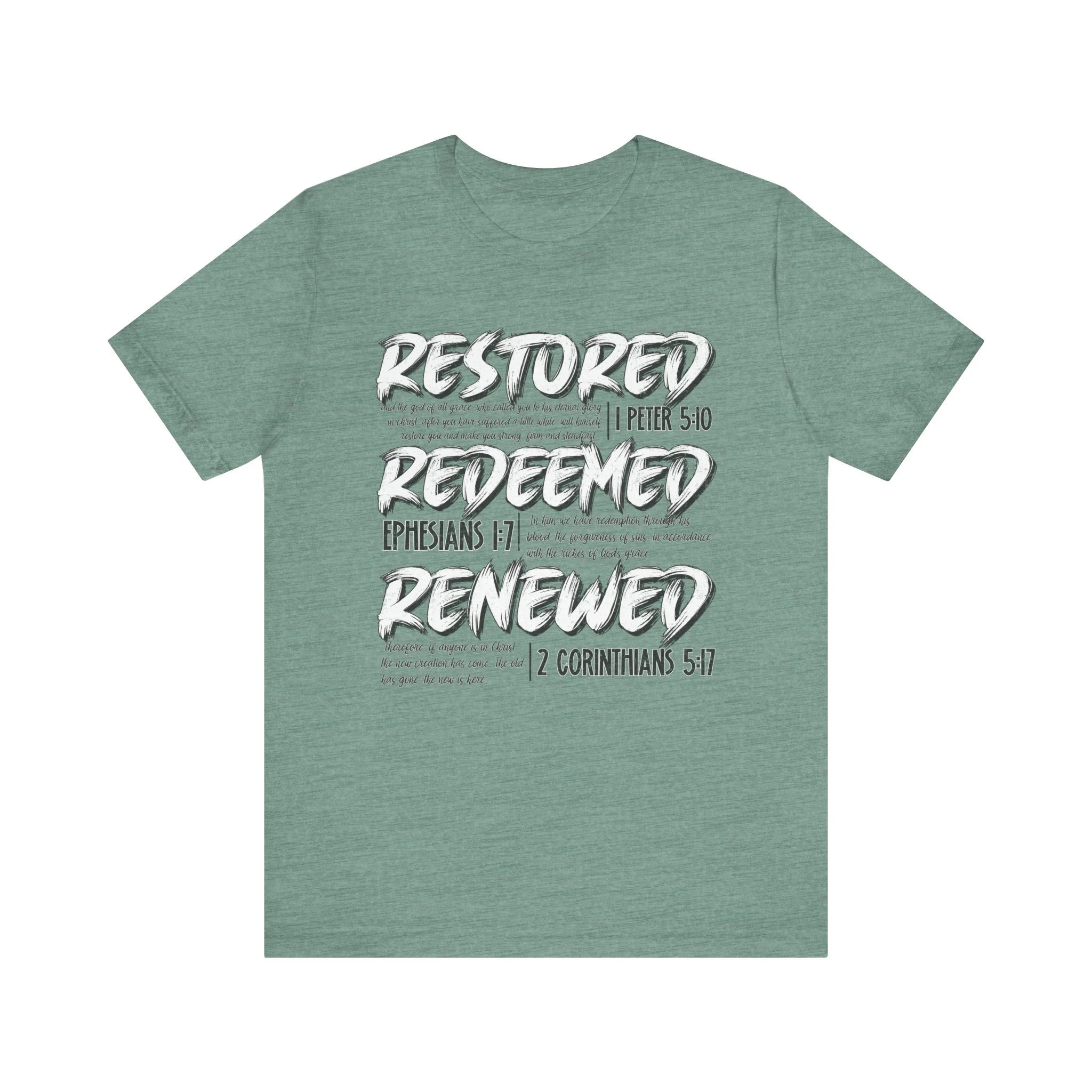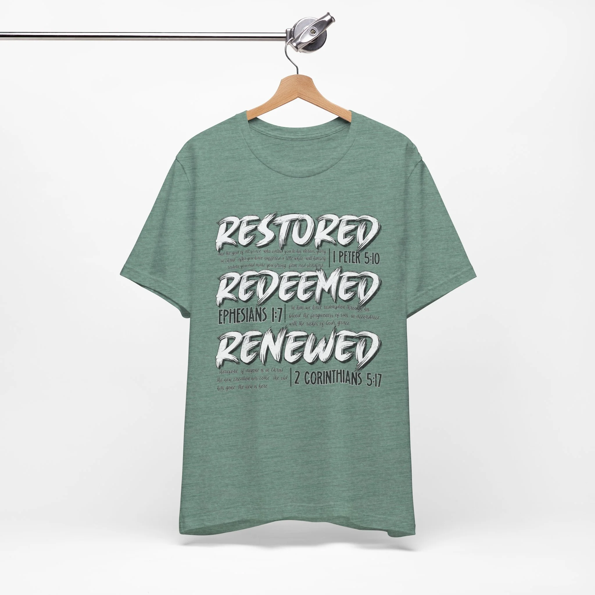 Restored Redeemed Renewed Unisex Tee | Bella + Canvas Unisex Tee | Faith-Inspired Unisex Tee