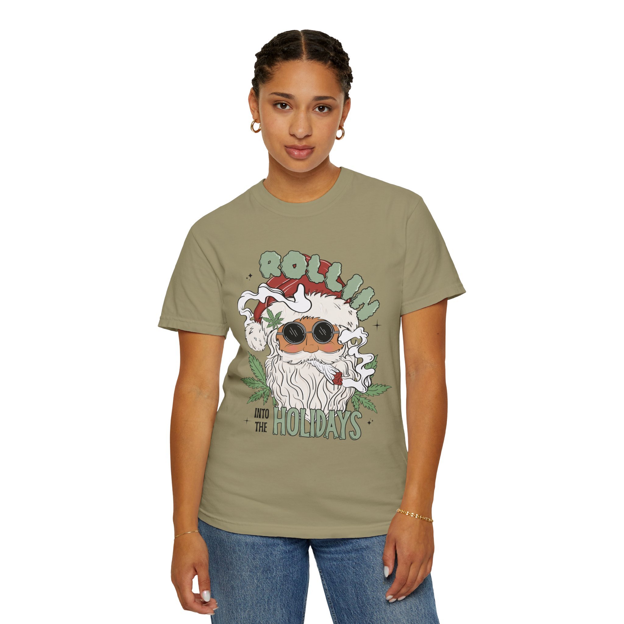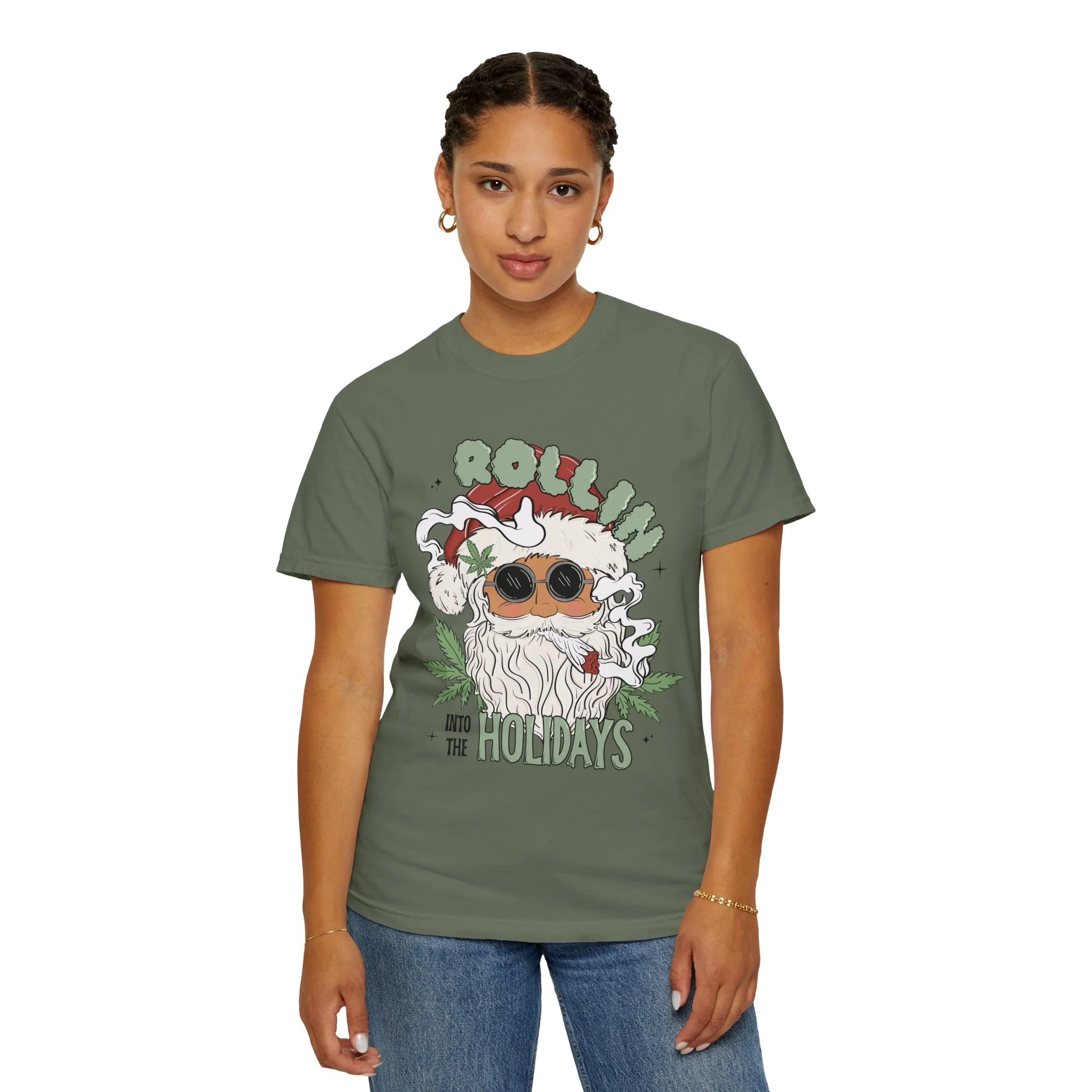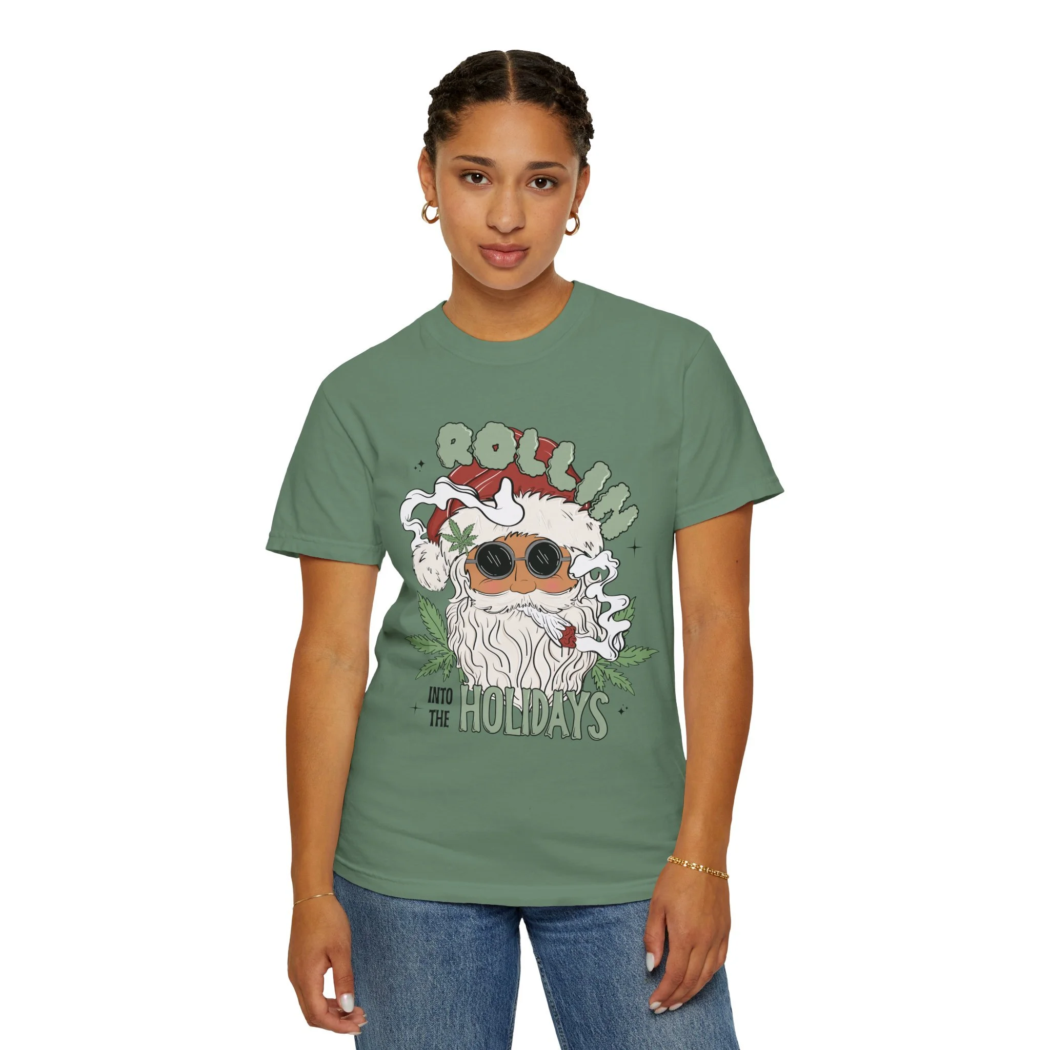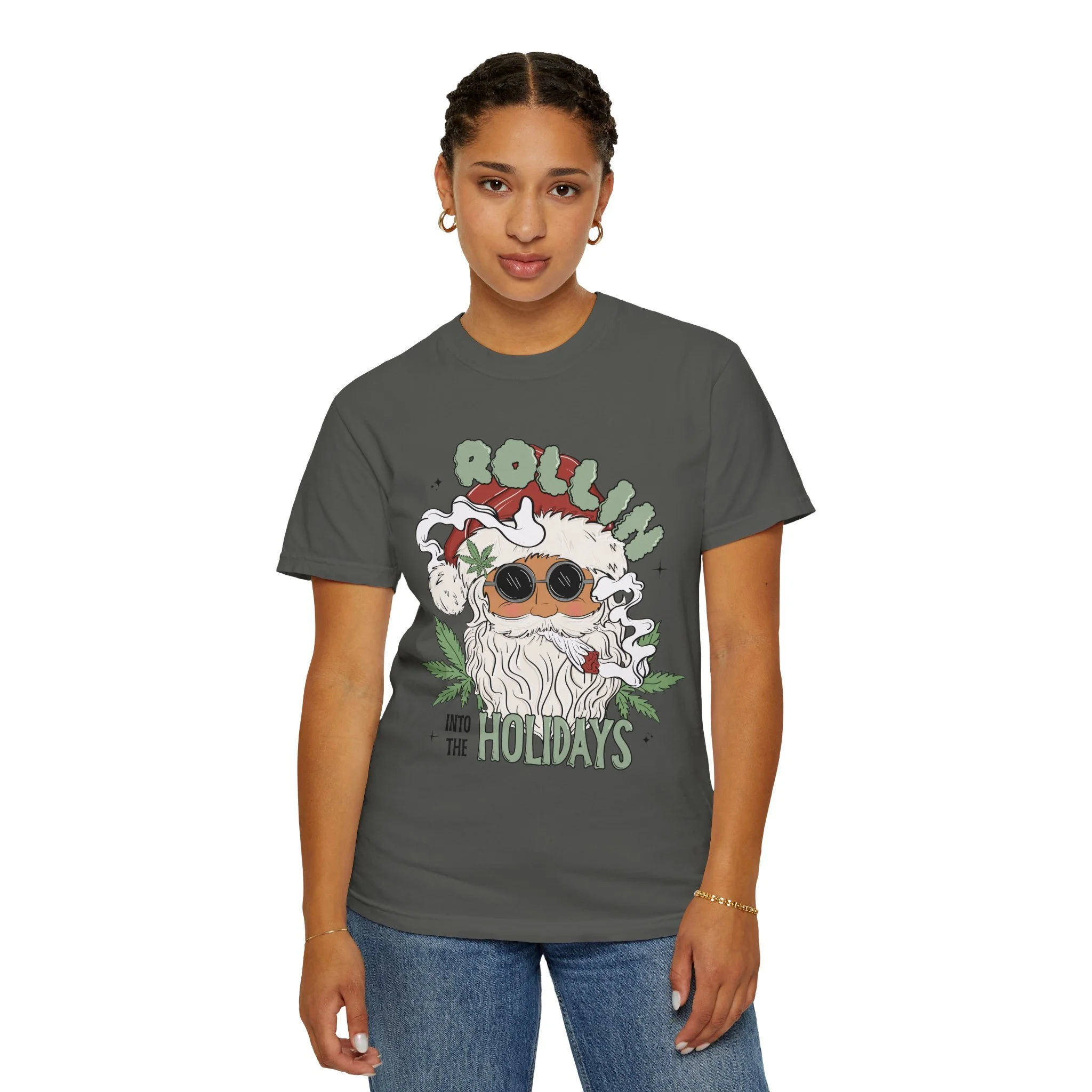 Rollin' Into the Holidays Tee | Santa Smoking Joint | Comfort Colors T-Shirt