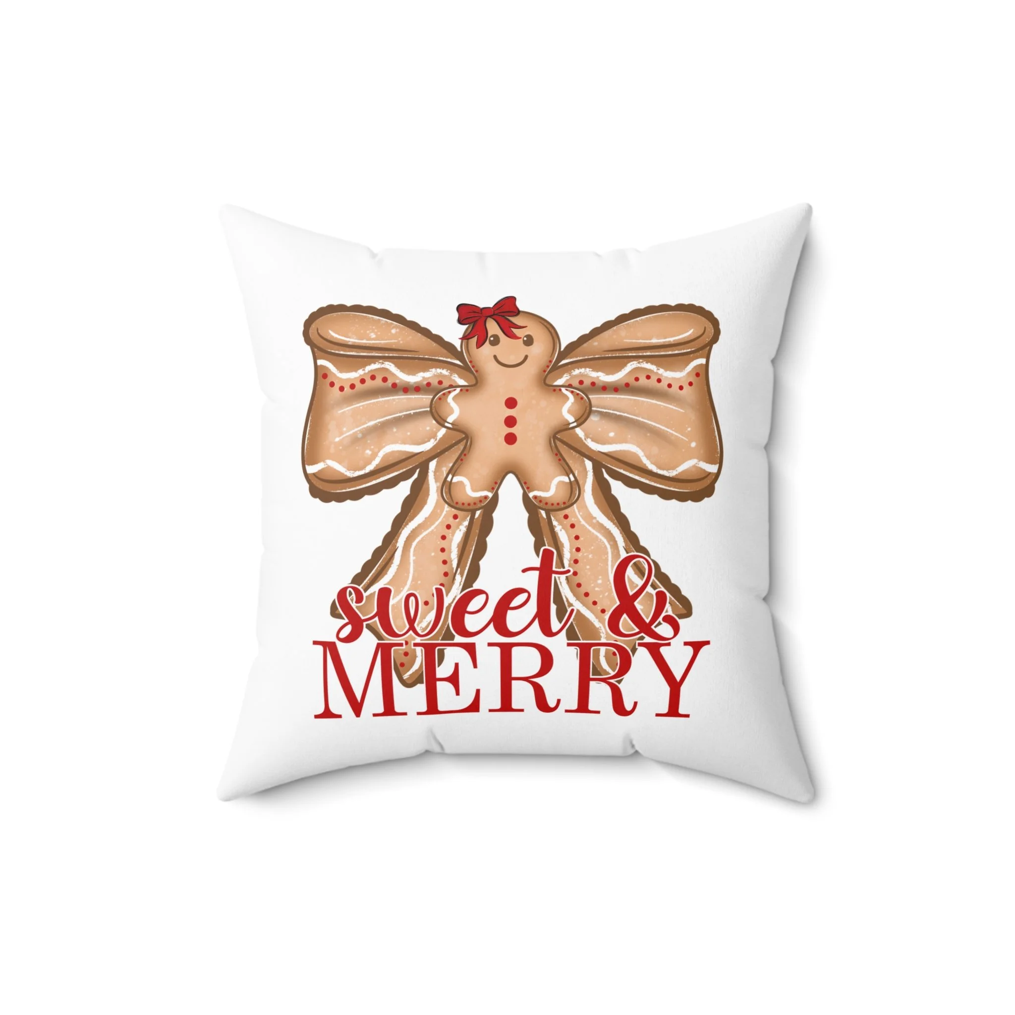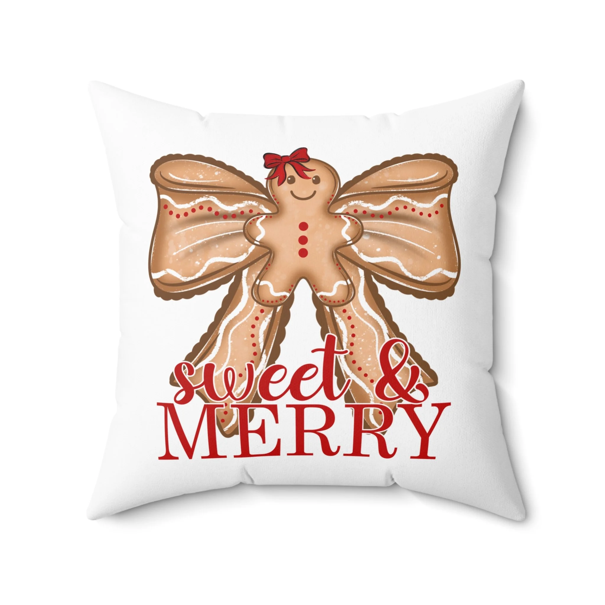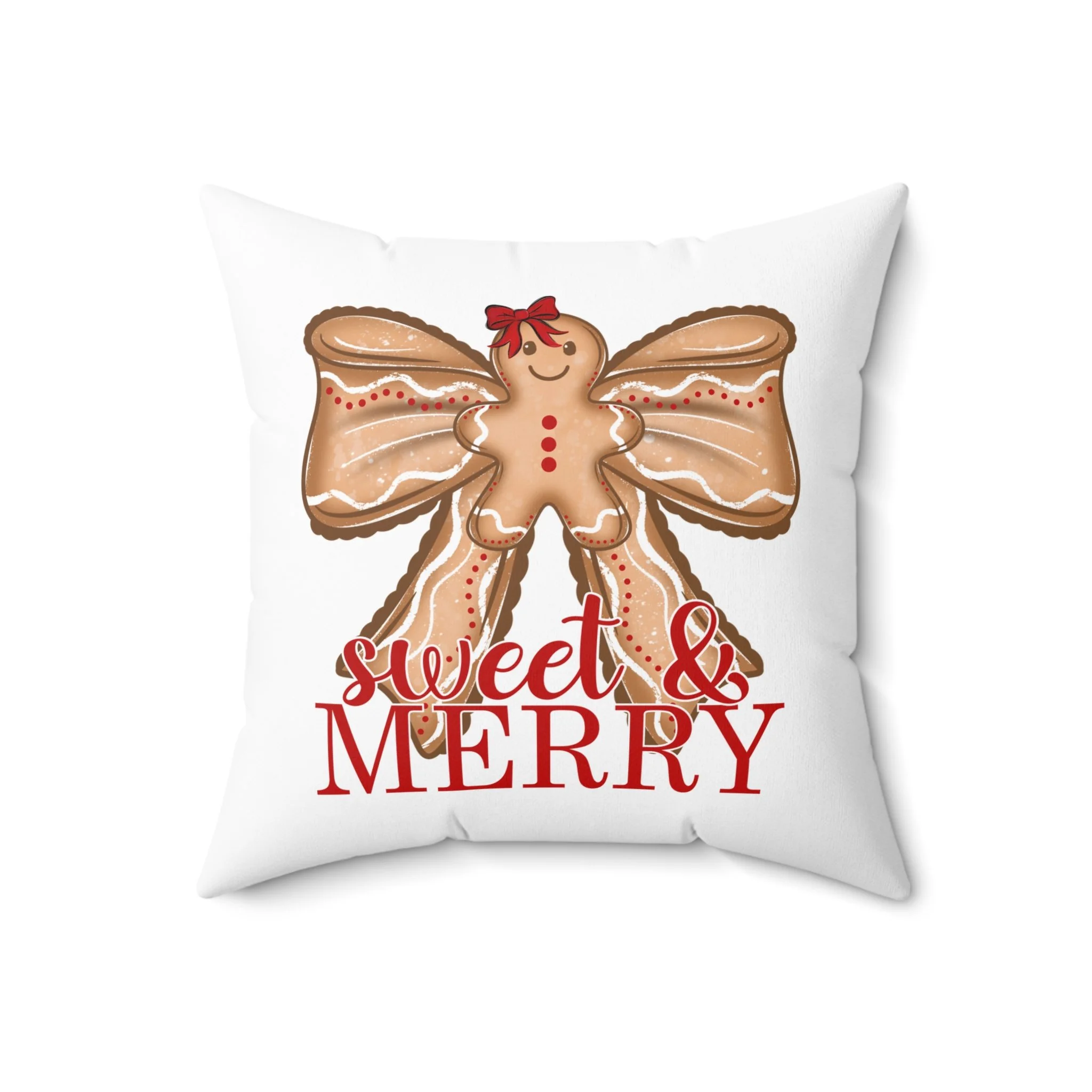 Sweet & Merry Festive Christmas Pillow, Sweet & Merry Gingerbread Decor, Holiday Home Accents, Cute Christmas Gifts, Gingerbread Cushion