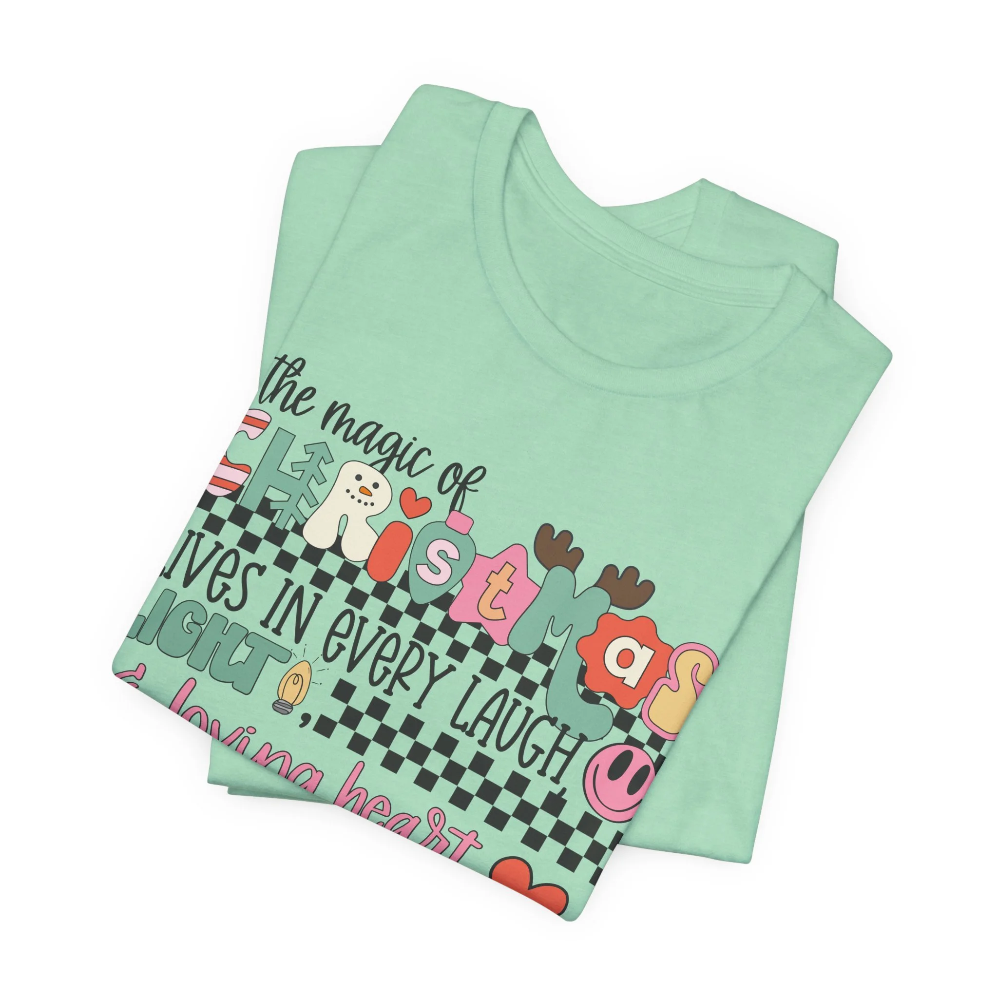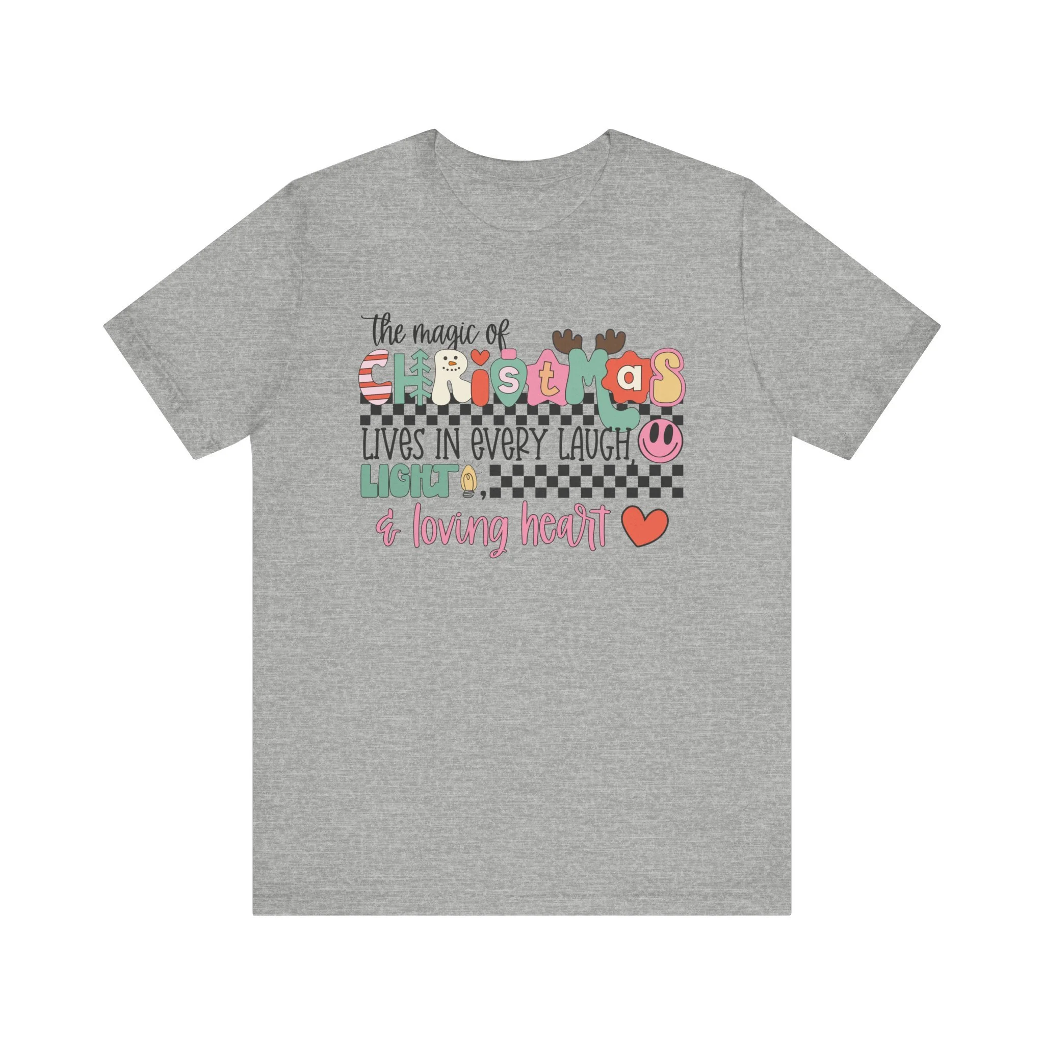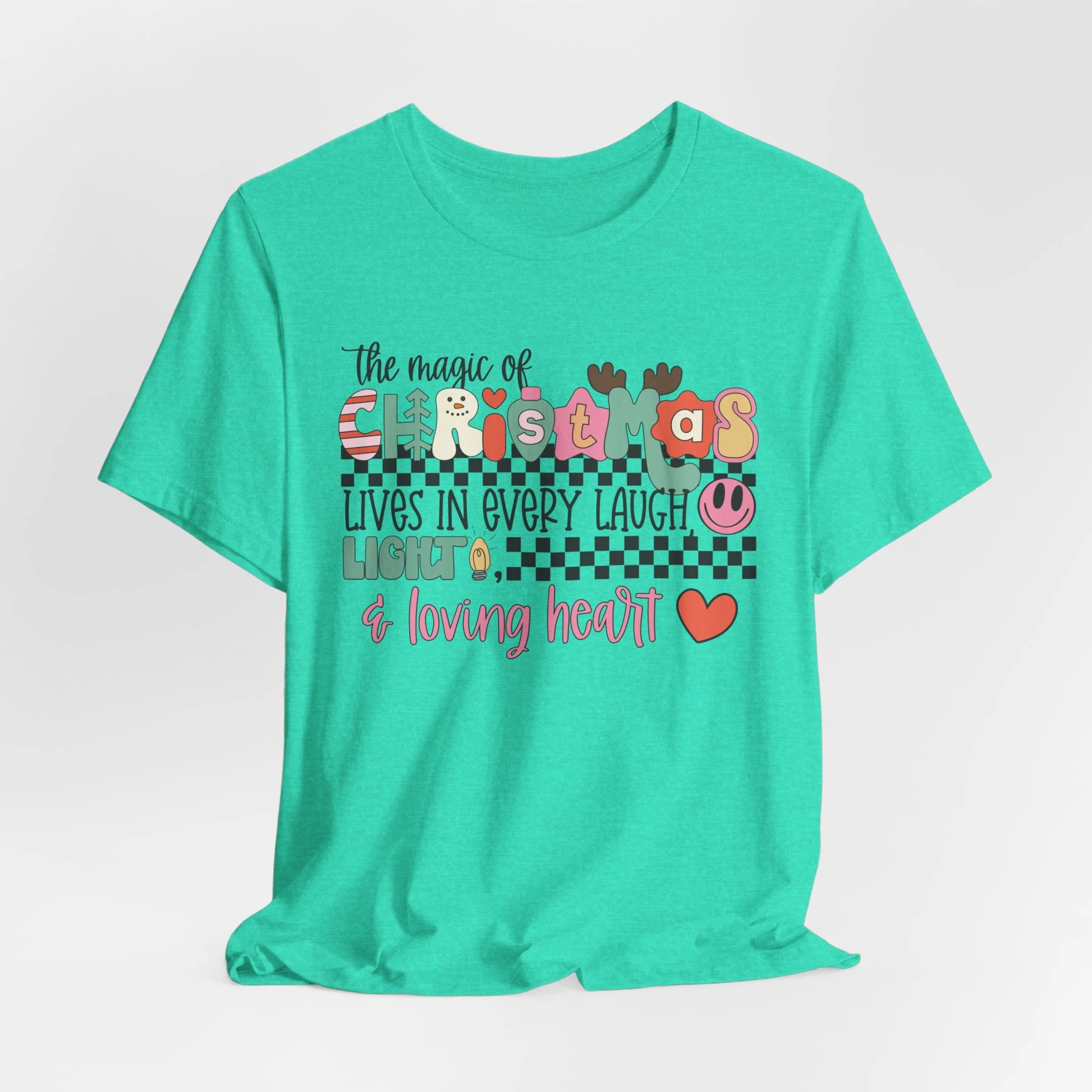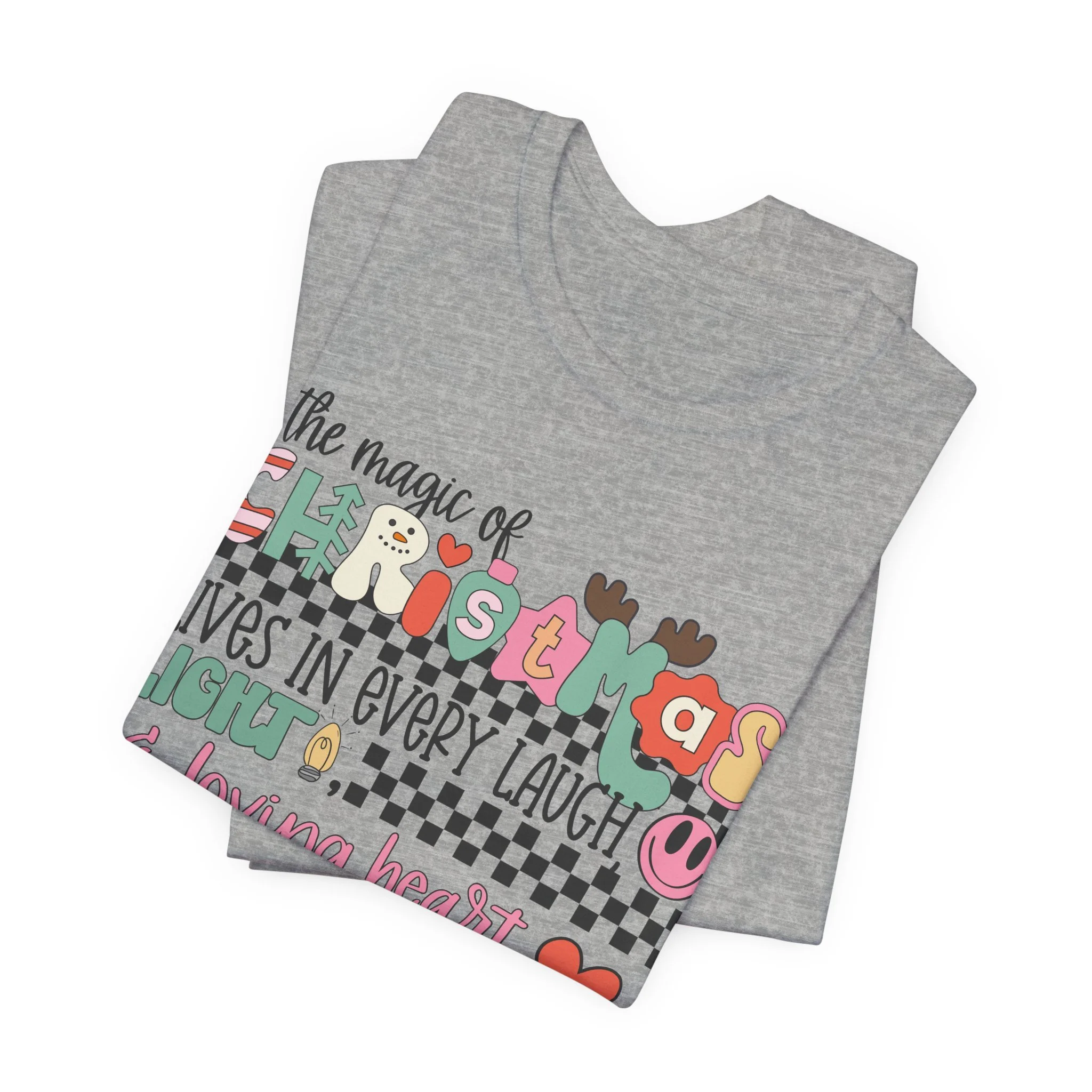 The Magic of Christmas Lives in Every Laugh, Light and Loving Heart Unisex Short Sleeved Shirt | Christmas Magic Unisex Shirt | Bella + Canvas Unisex Tee