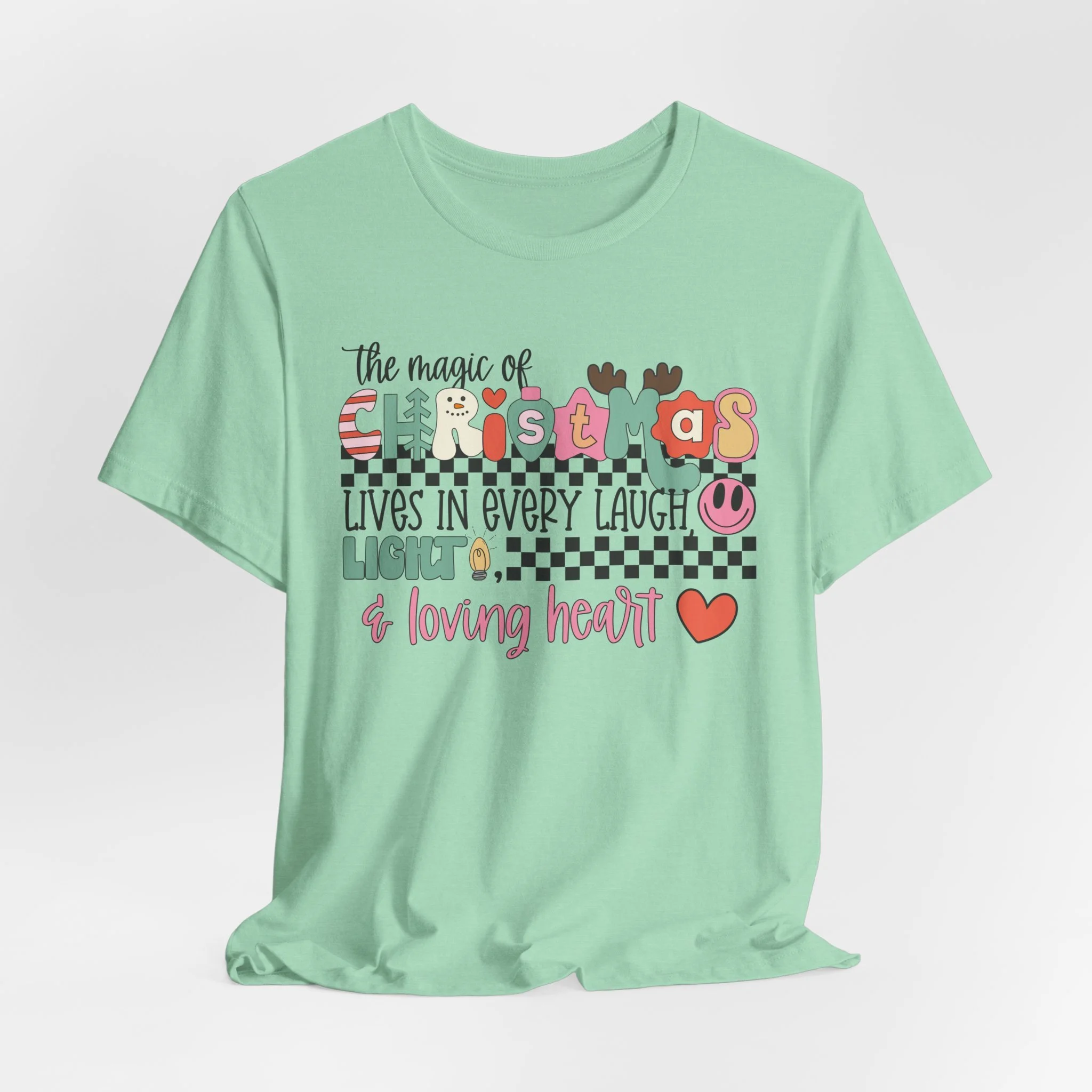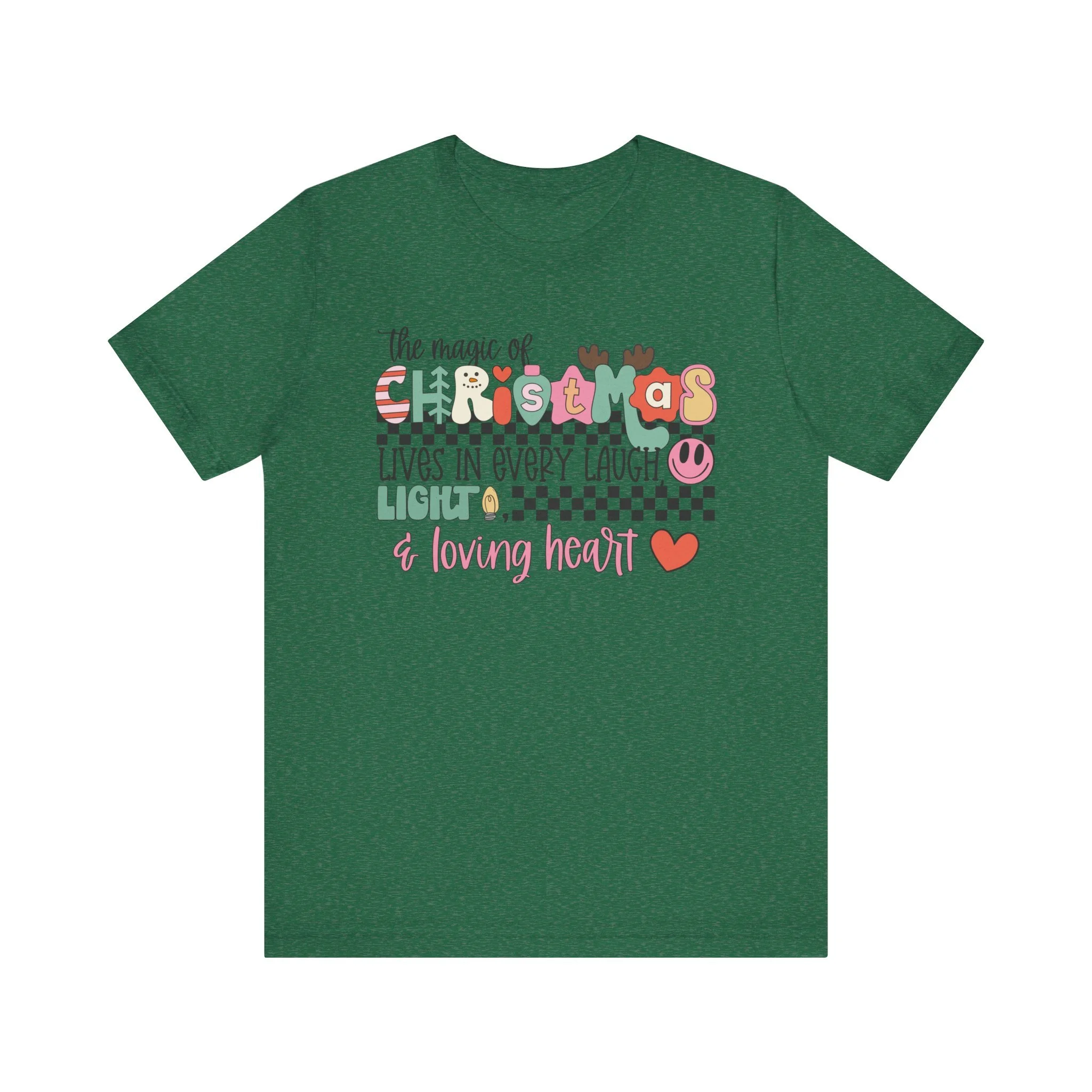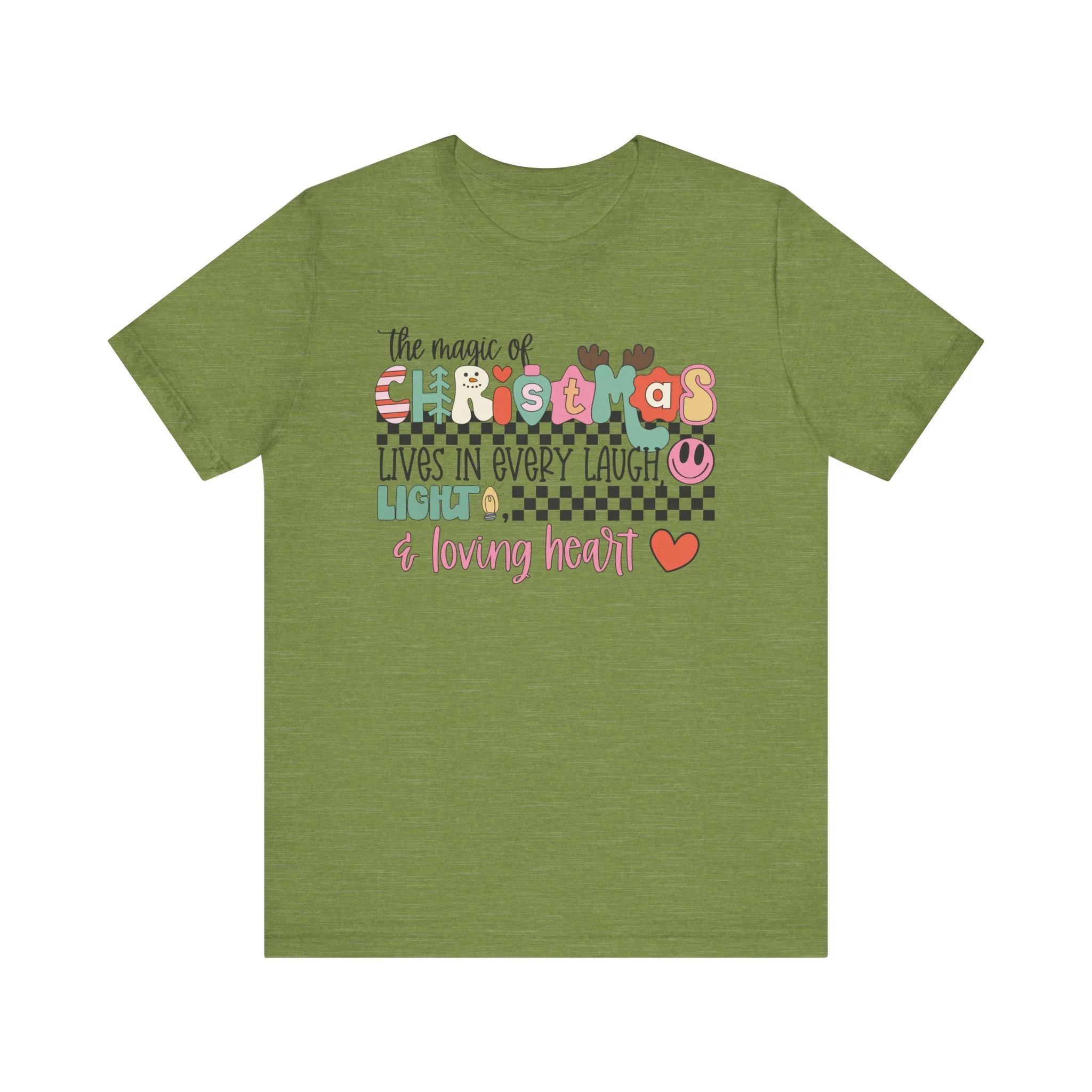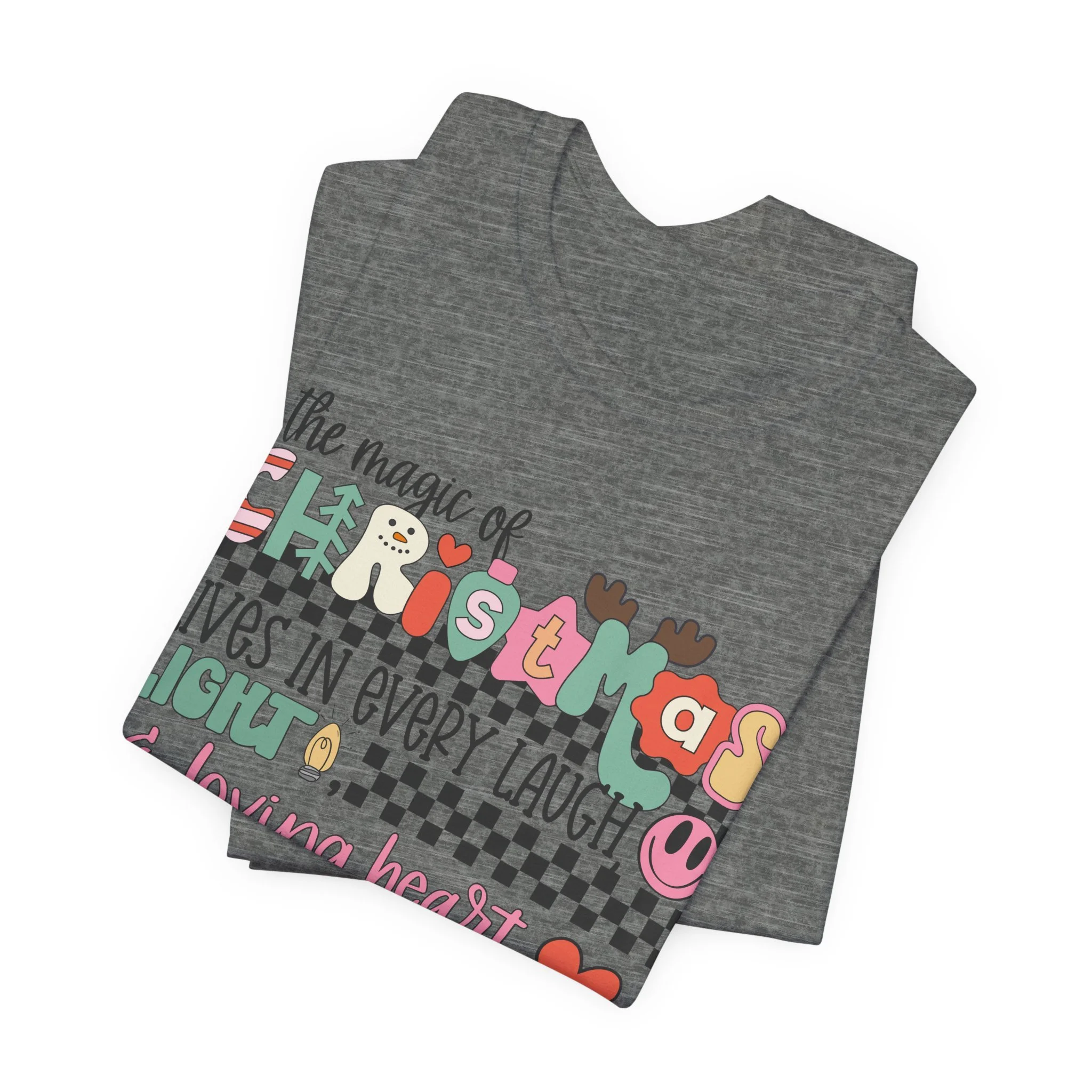 The Magic of Christmas Lives in Every Laugh, Light and Loving Heart Unisex Short Sleeved Shirt | Christmas Magic Unisex Shirt | Bella + Canvas Unisex Tee