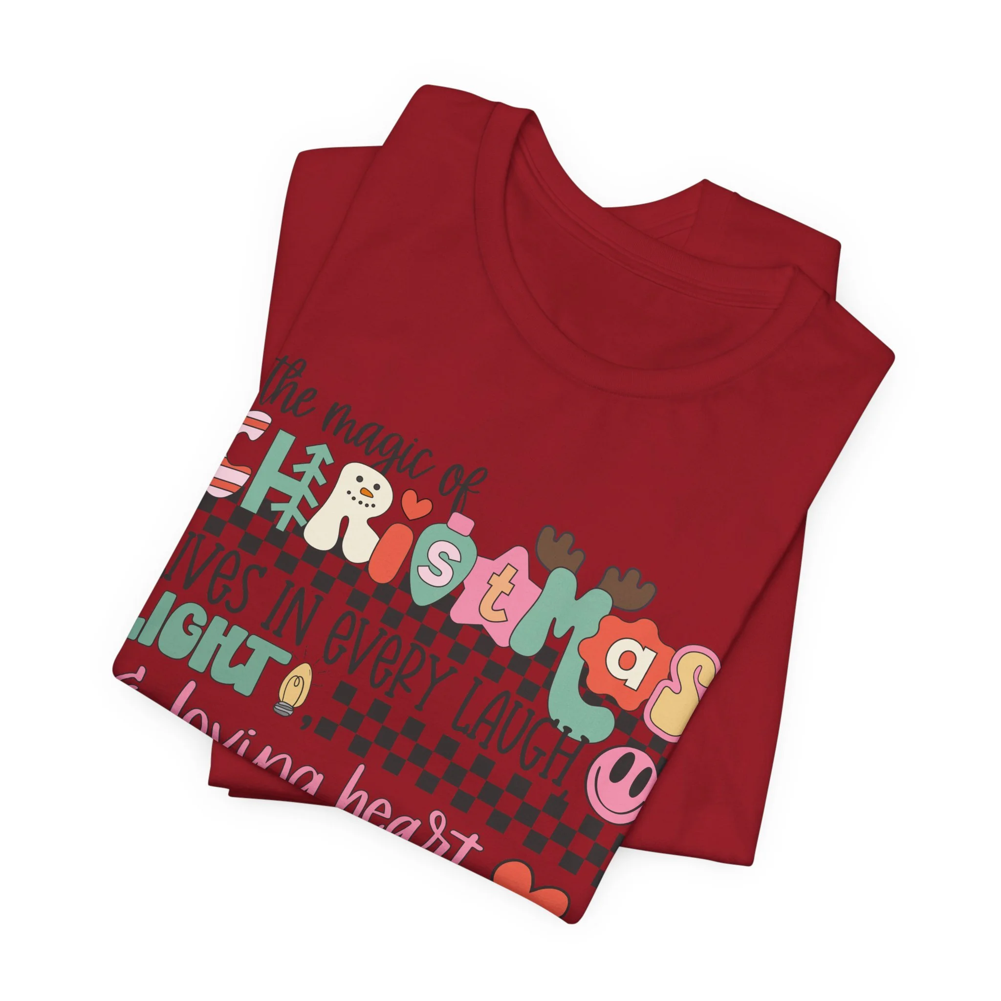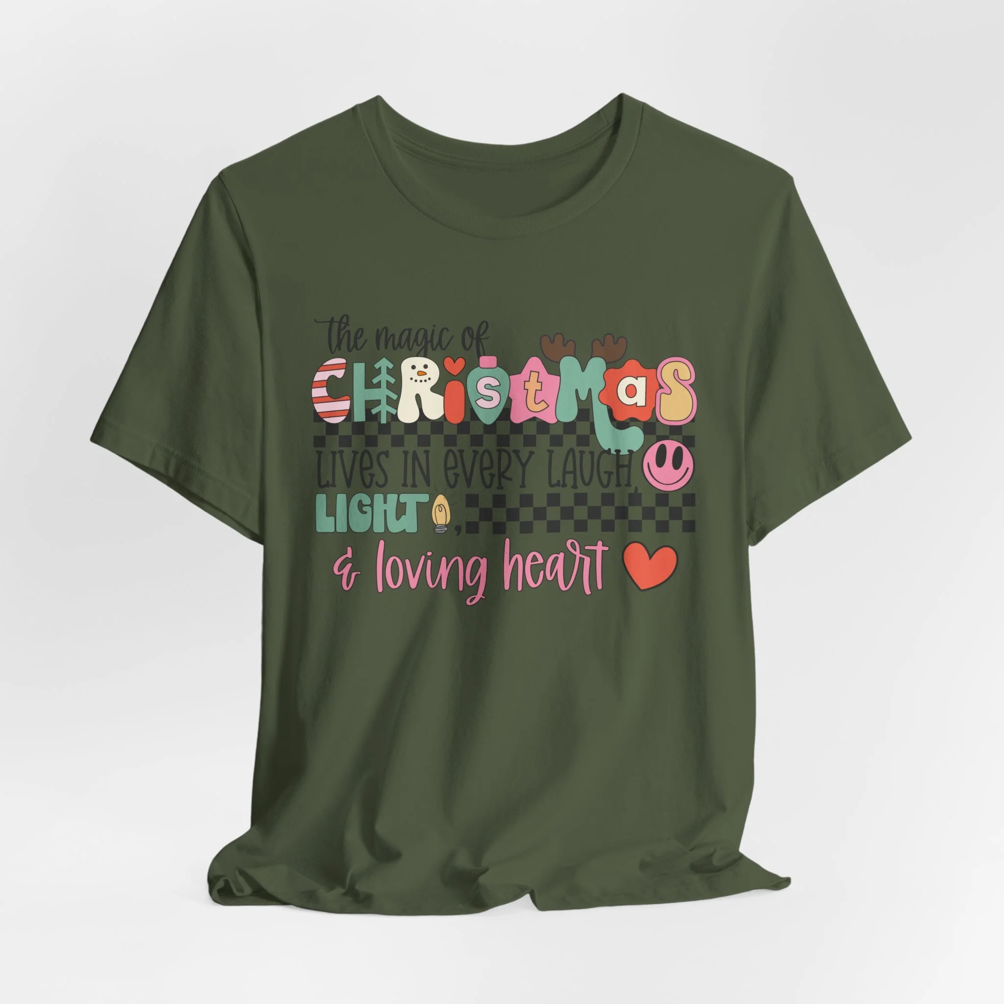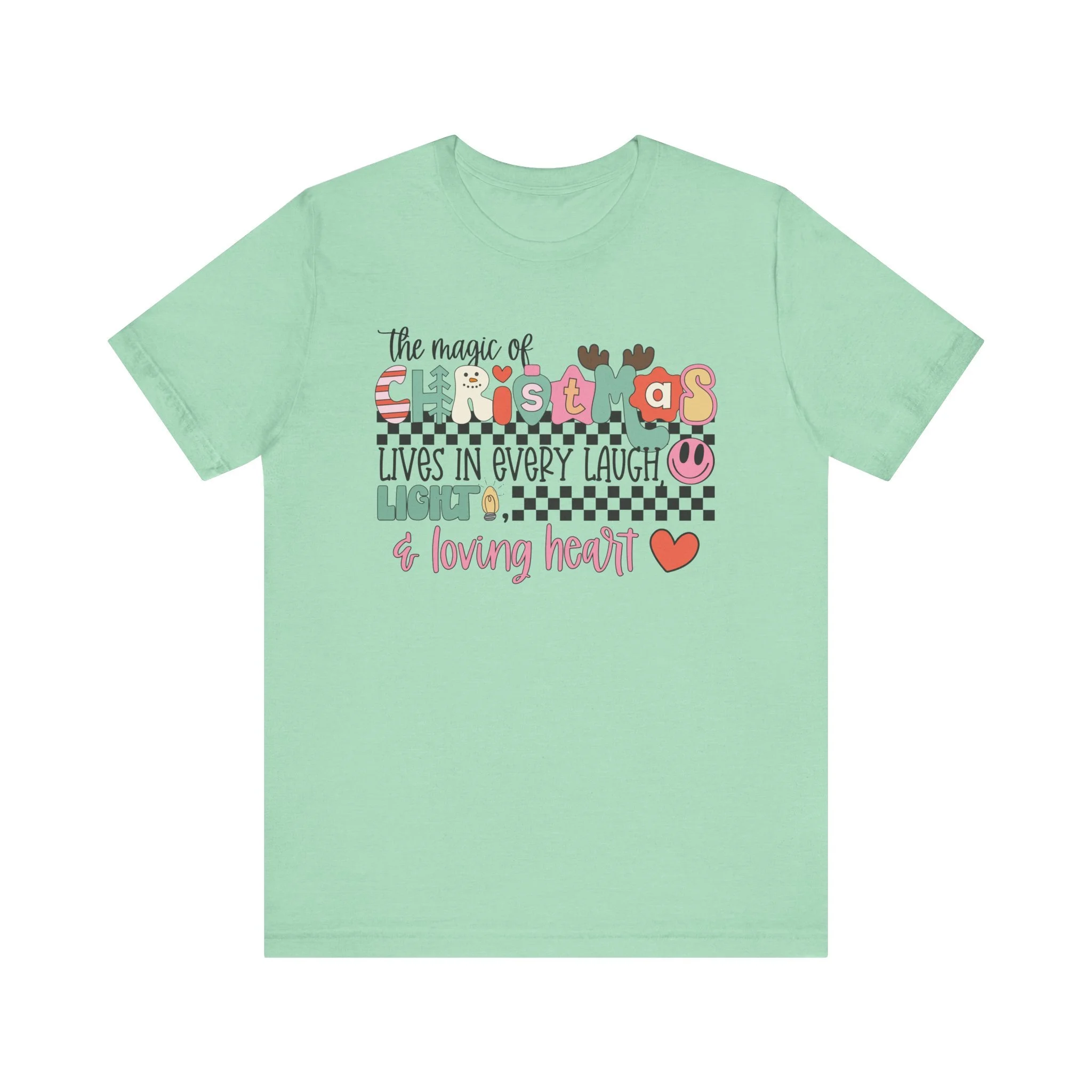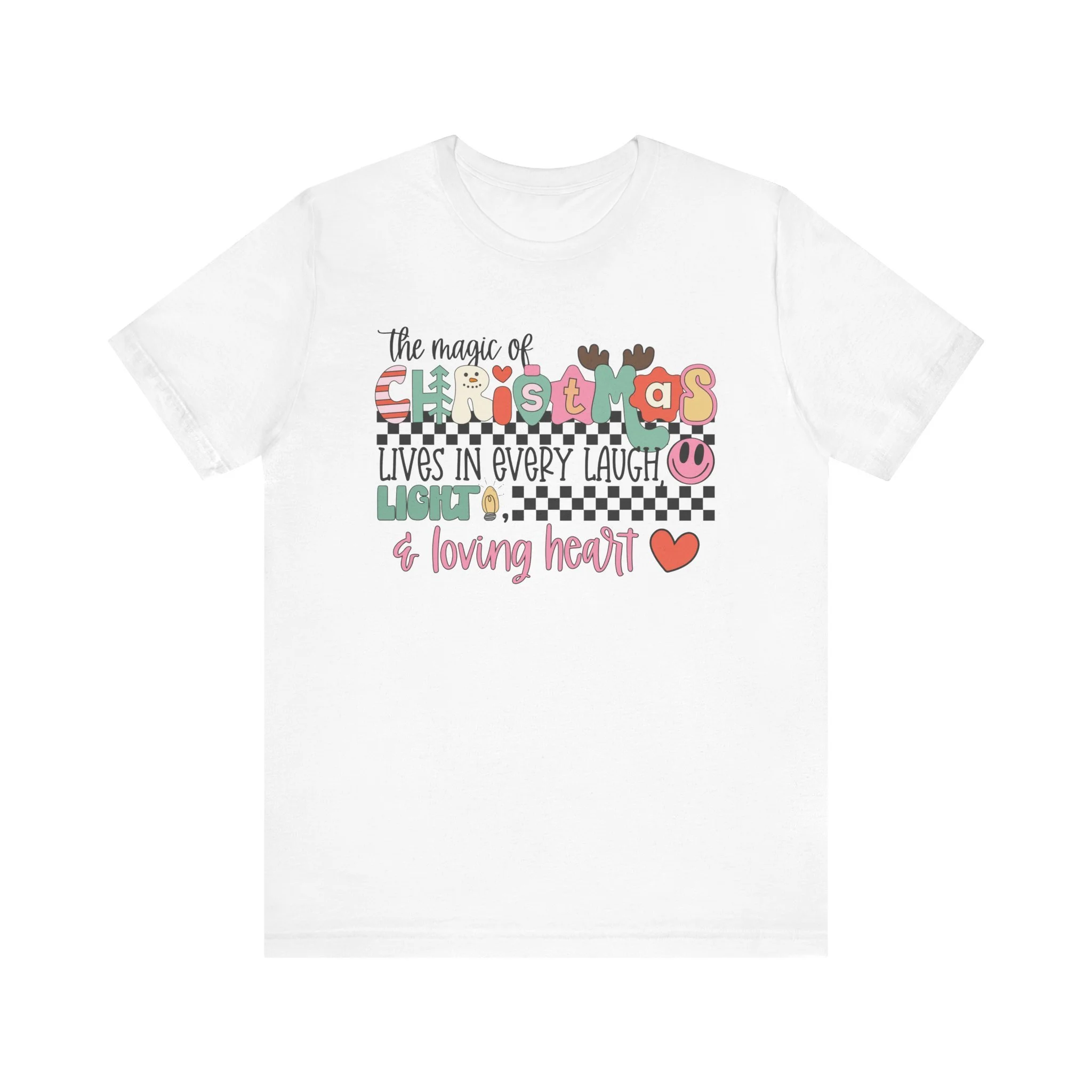 The Magic of Christmas Lives in Every Laugh, Light and Loving Heart Unisex Short Sleeved Shirt | Christmas Magic Unisex Shirt | Bella + Canvas Unisex Tee