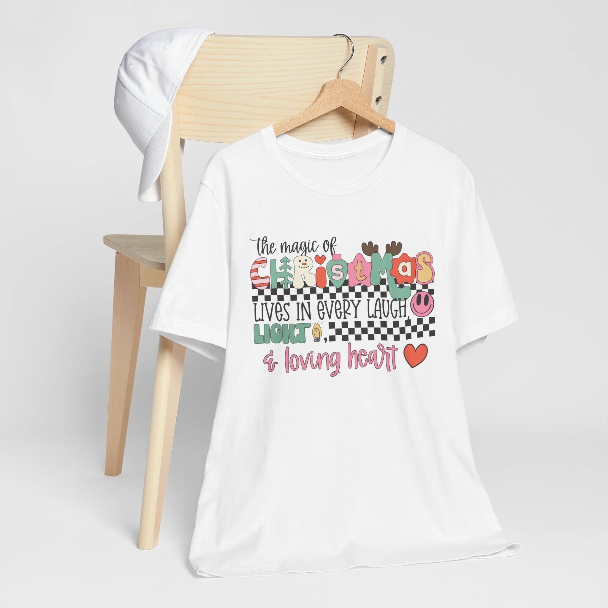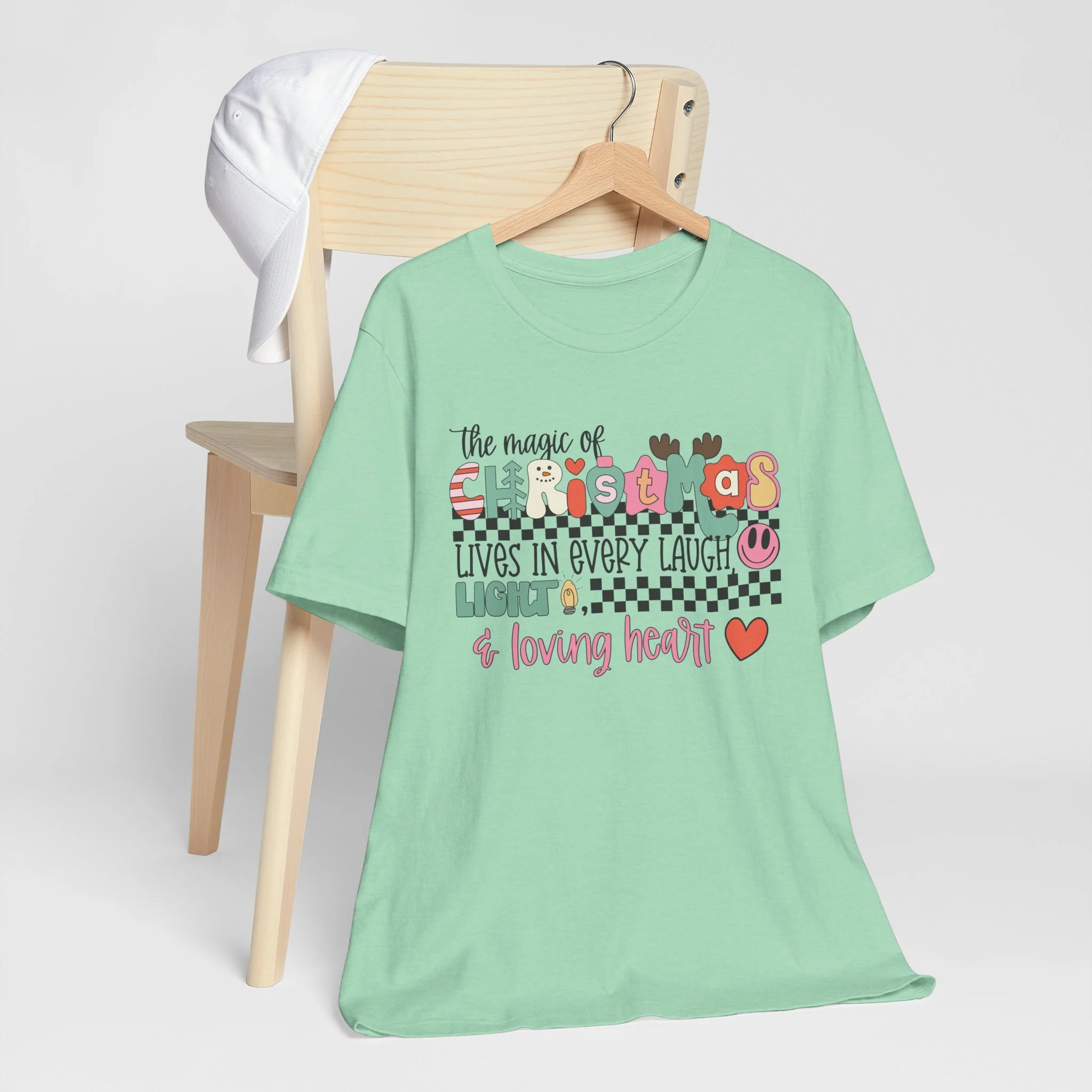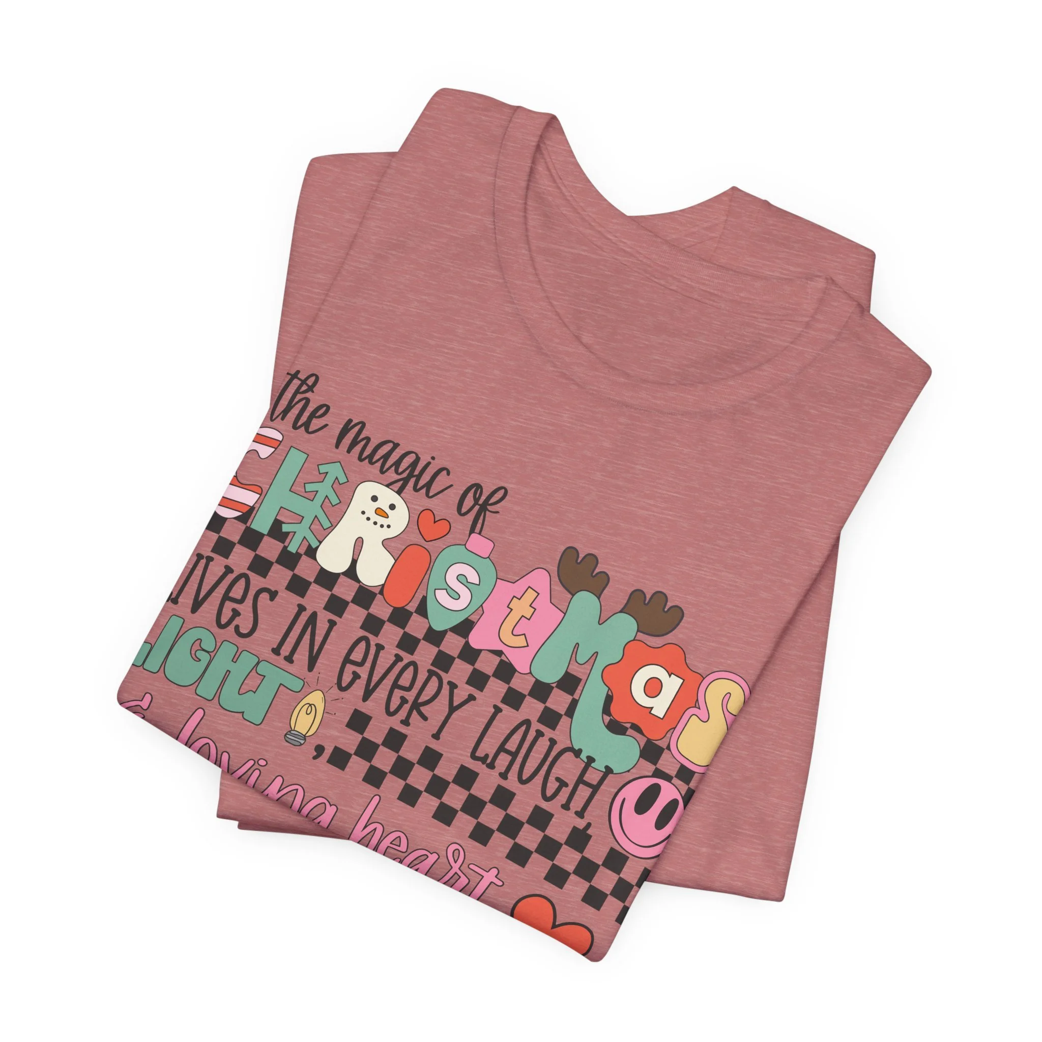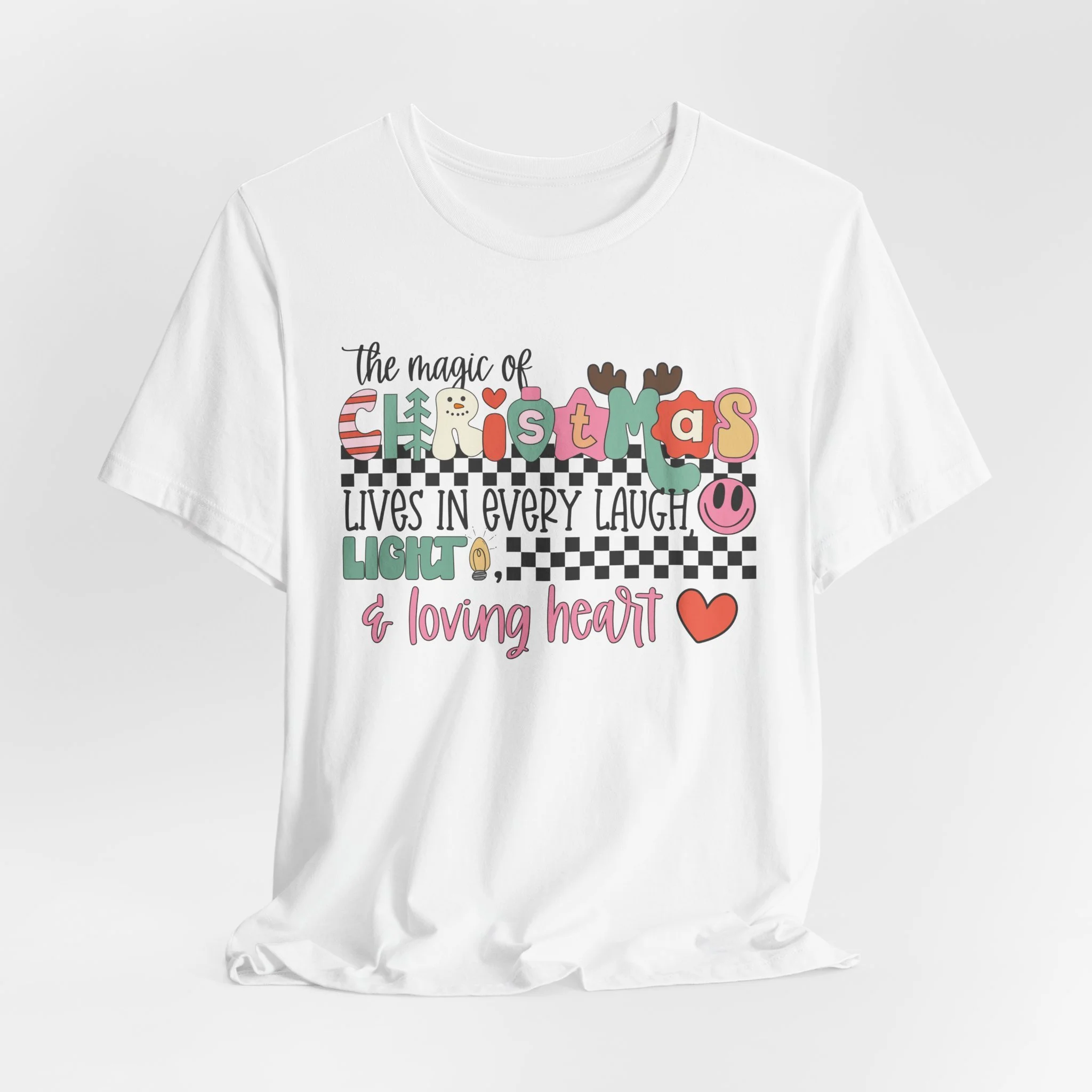 The Magic of Christmas Lives in Every Laugh, Light and Loving Heart Unisex Short Sleeved Shirt | Christmas Magic Unisex Shirt | Bella + Canvas Unisex Tee