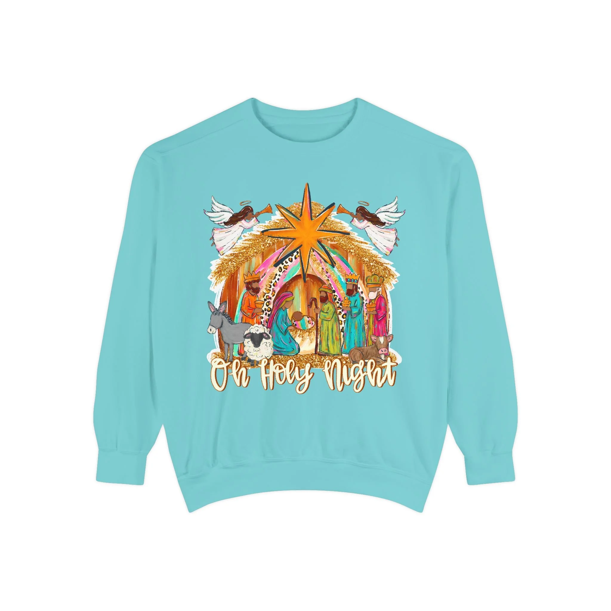 Embrace the cozy spirit of the season with this unisex garment-dyed sweatshirt. With its relaxed fit and medium-heavy fabric, it promises warmth and comfort during chilly winter nights. The lovely design featuring a nativity scene radiates joy, making it perfect for celebrating Christmas and other festive occasions. This sweatshirt is ideal for family gatherings, holiday parties, and casual outings, bringing a sense of togetherness to your festivities. It's a thoughtful gift for those who appreciate seasonal charm and soft apparel, ensuring they feel stylish and snug throughout the holidays.